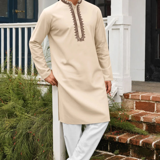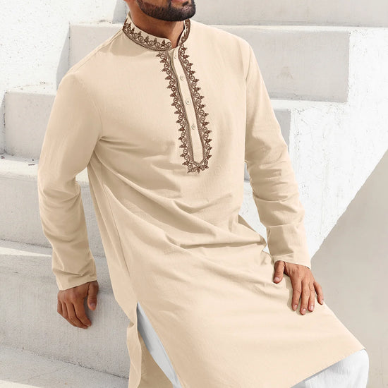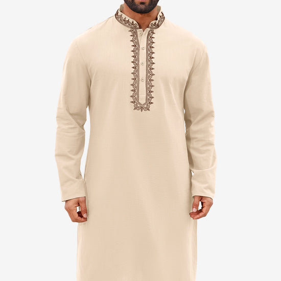 Runcati Apricot Embroidery Thobe Shirt