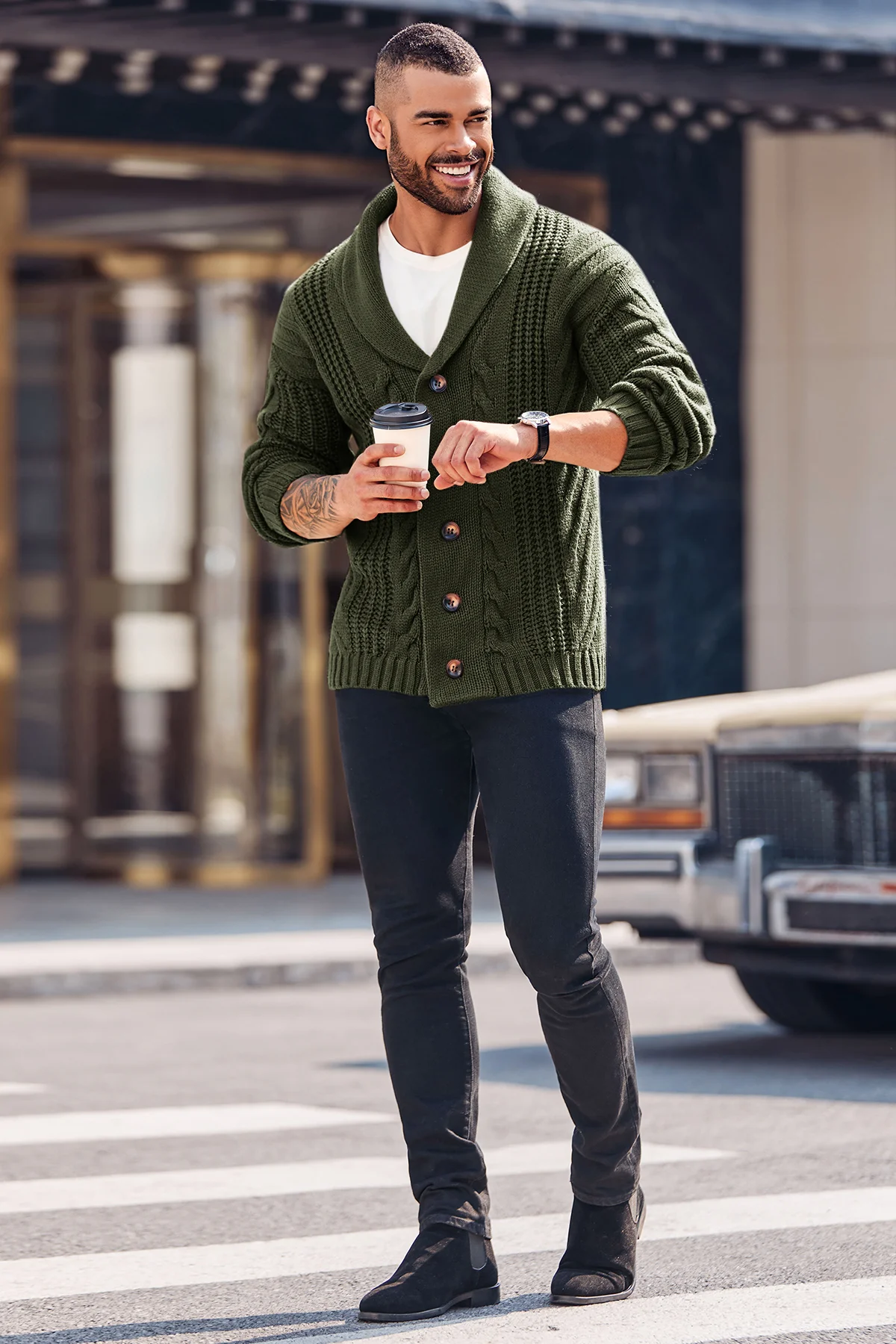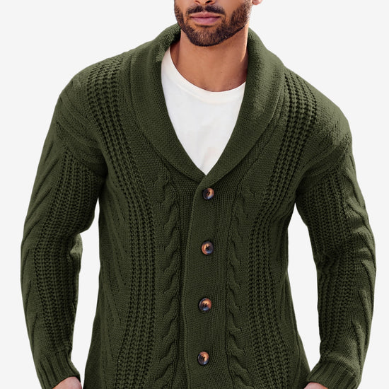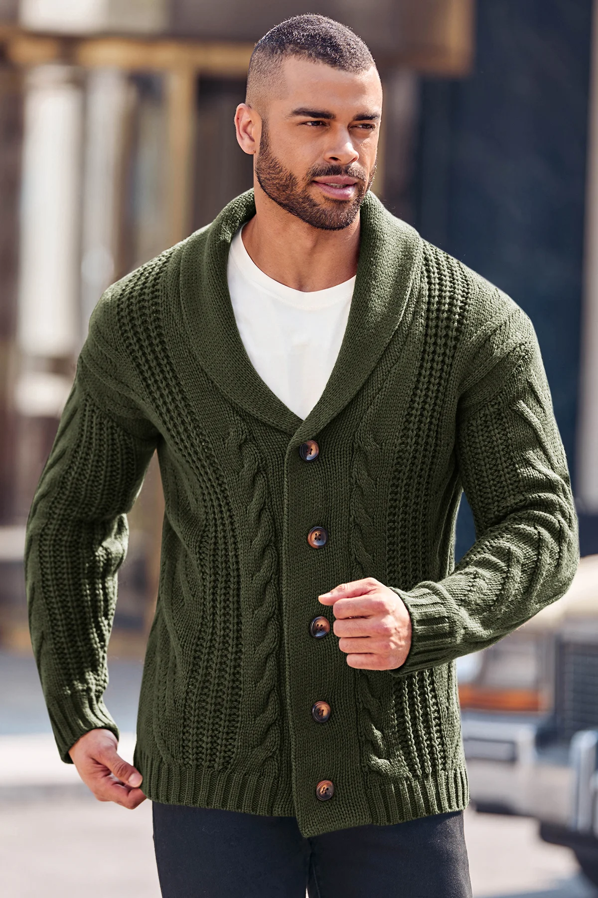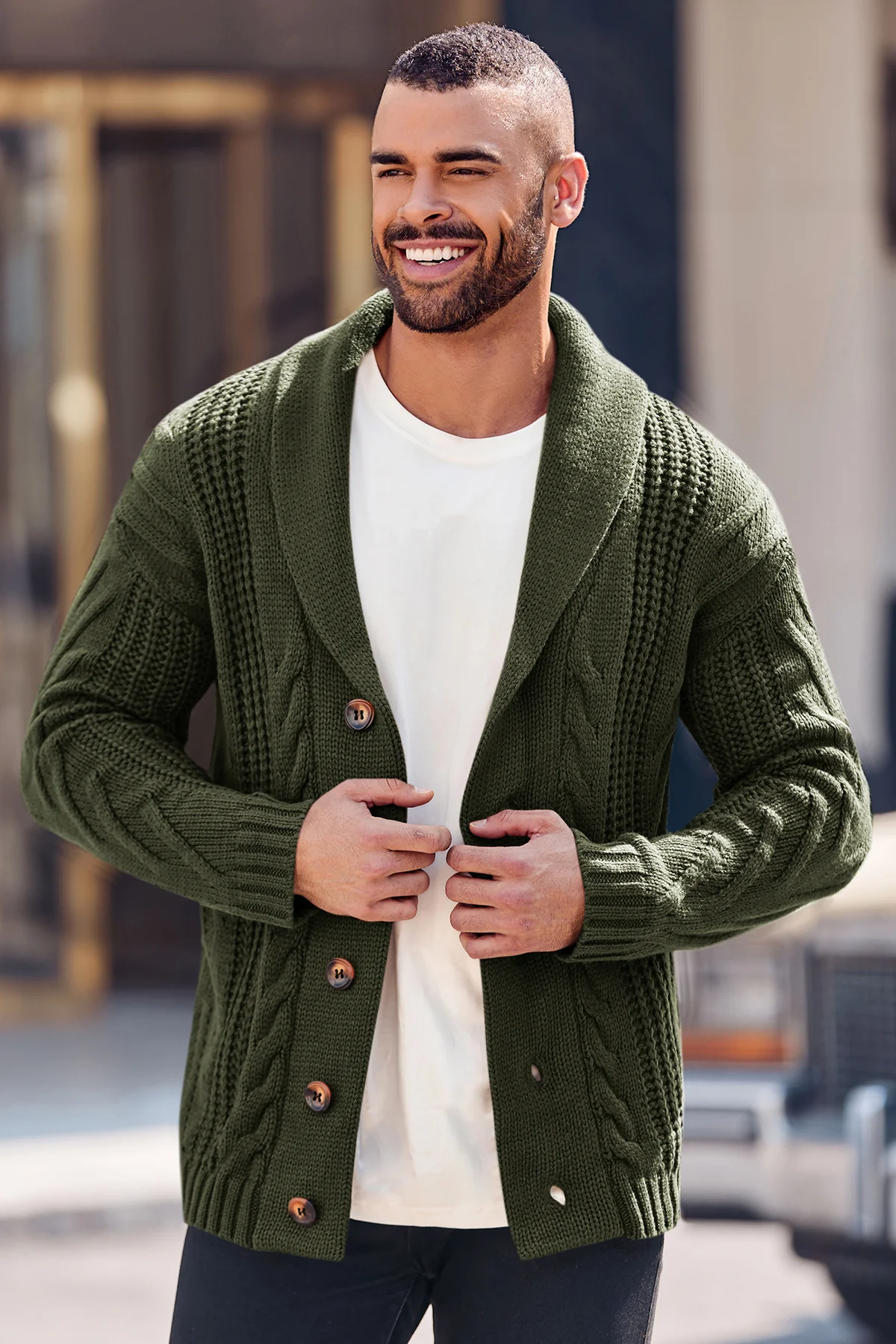 Runcati Army Green Shawl Collar Cardigan Sweater