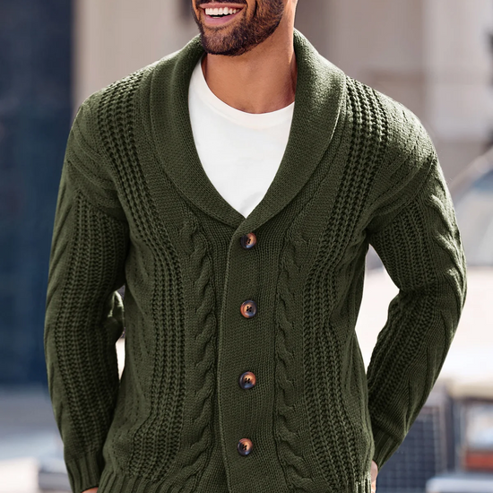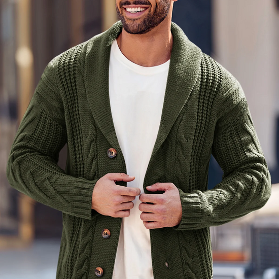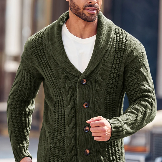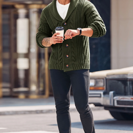 Check out our cozy cardigan made from 95% acrylic and 5% spandex! This high-quality knit is comfy and warm, designed with a button closure, shawl collar, and unique cable knit pattern. Perfect for any occasion—whether it’s a casual day out, Sunday brunch, or a party. It layers nicely over shirts and pairs well with jeans. Plus, it’s easy to care for: machine wash in a laundry bag or hand wash in cold water. Don't forget to check the size chart before you buy!