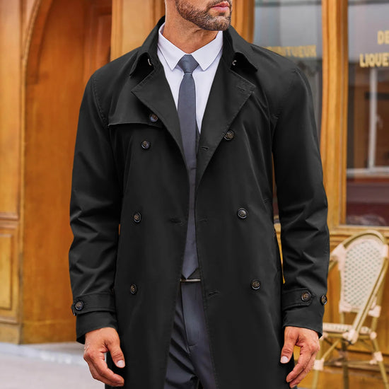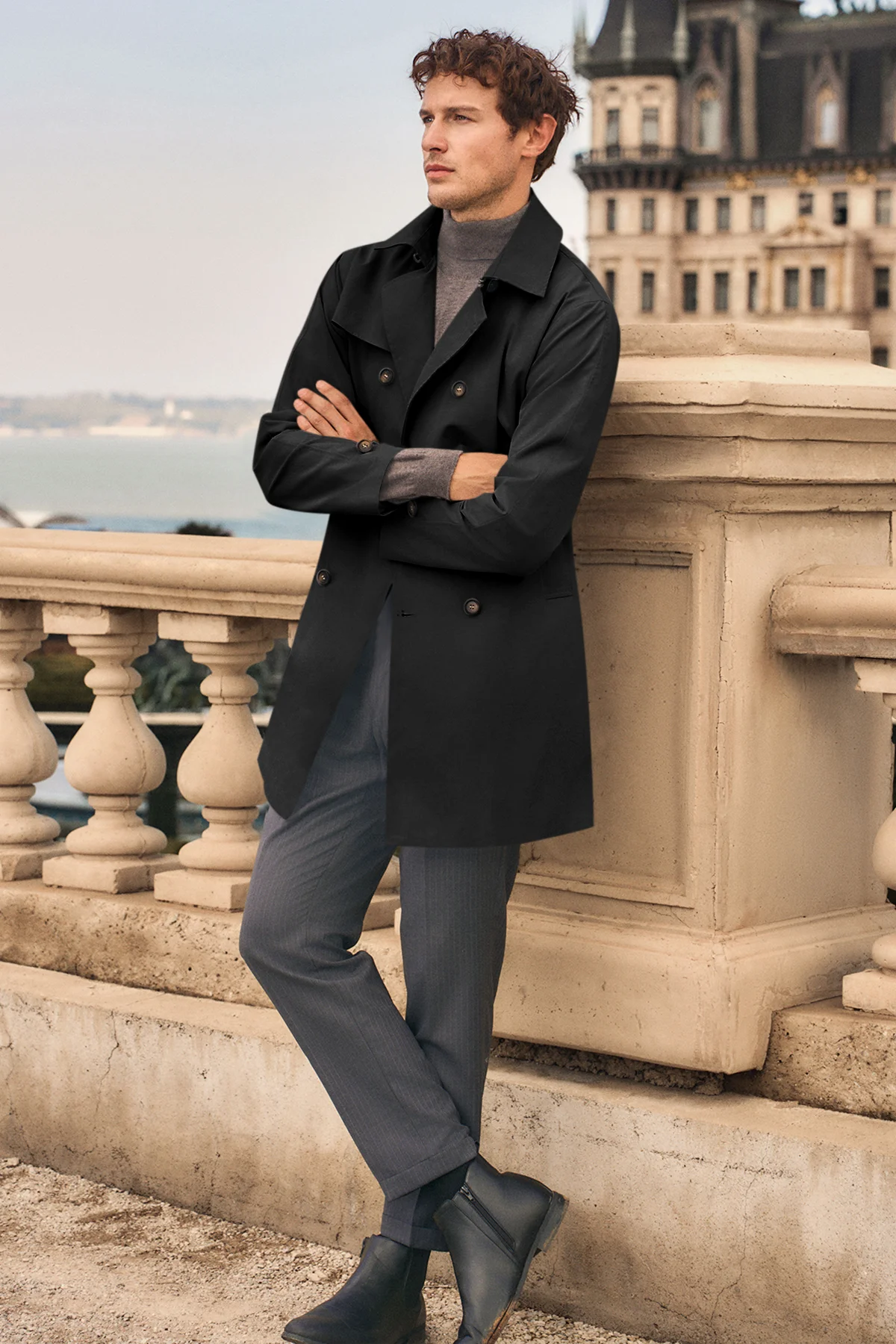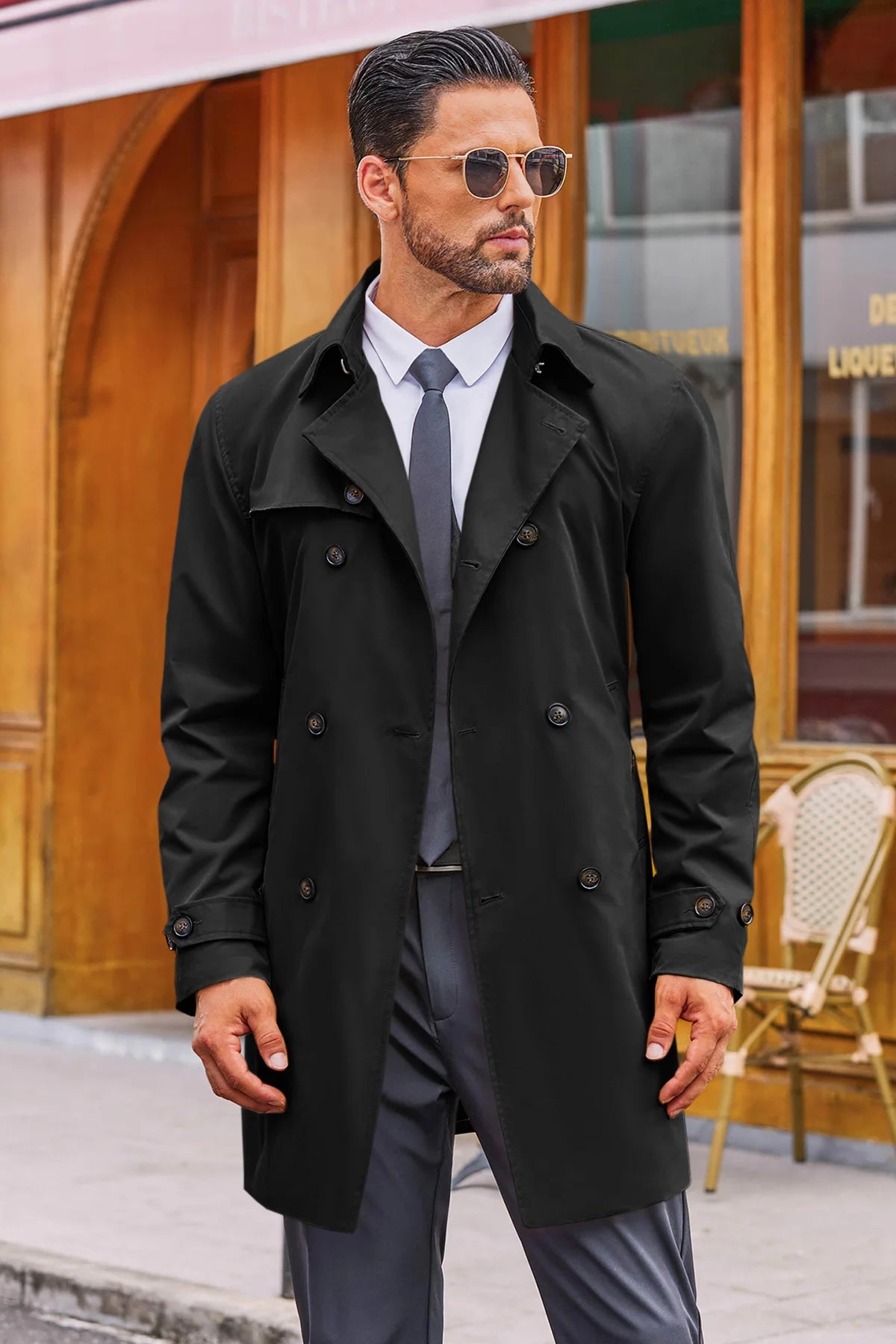 This sleek double-breasted trench coat is a versatile must-have! Made from lightweight, breathable polyester, it features a slim fit, lapel collar, and comes with a waist belt for a modern look. Perfect for work or weekends, it easily dresses up or down. Just toss it in cold wash and you're good to go
