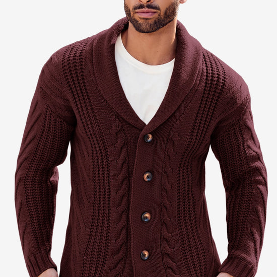 Runcati Burgundy Shawl Collar Cardigan Sweater