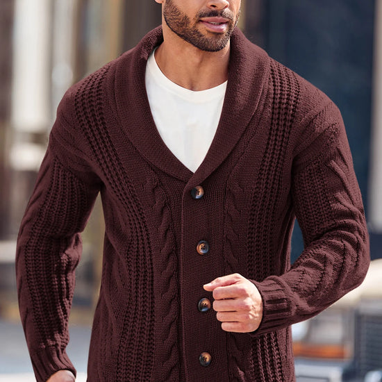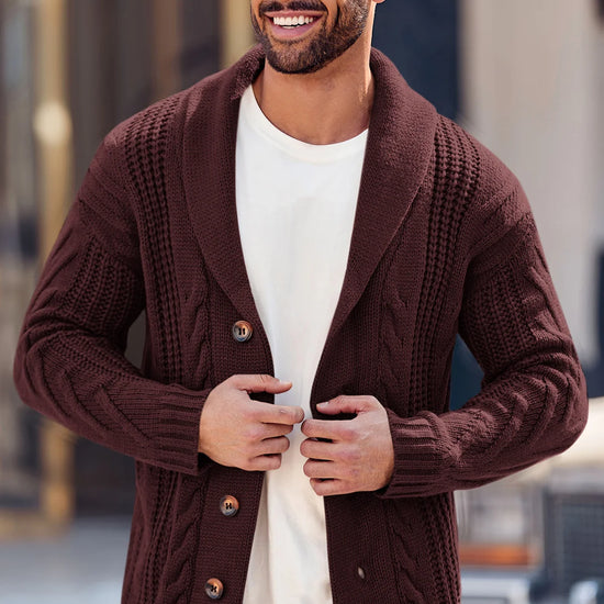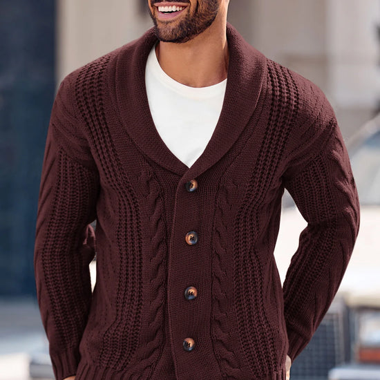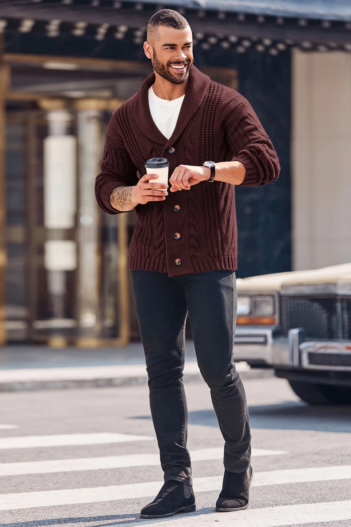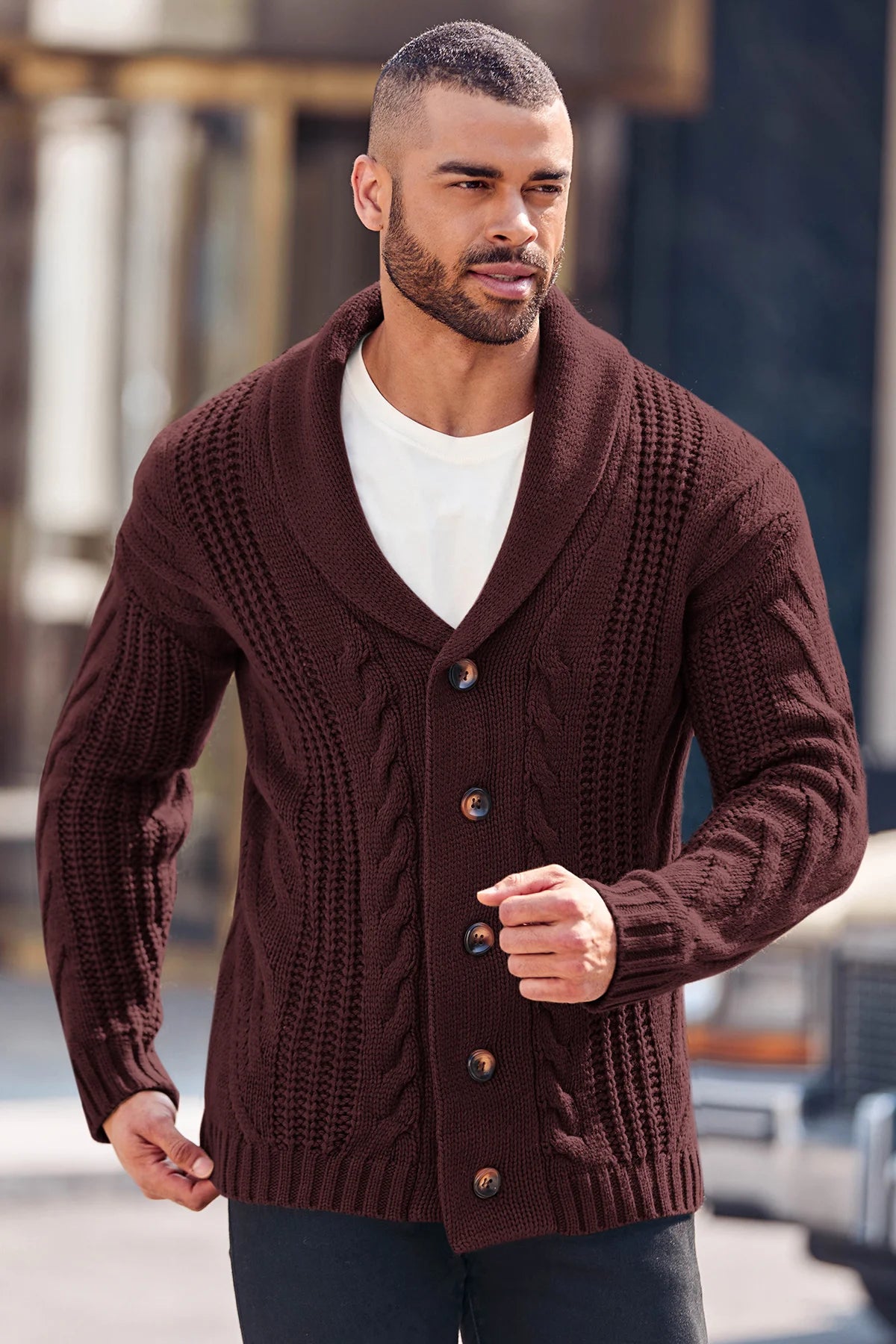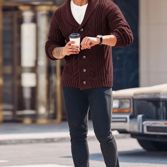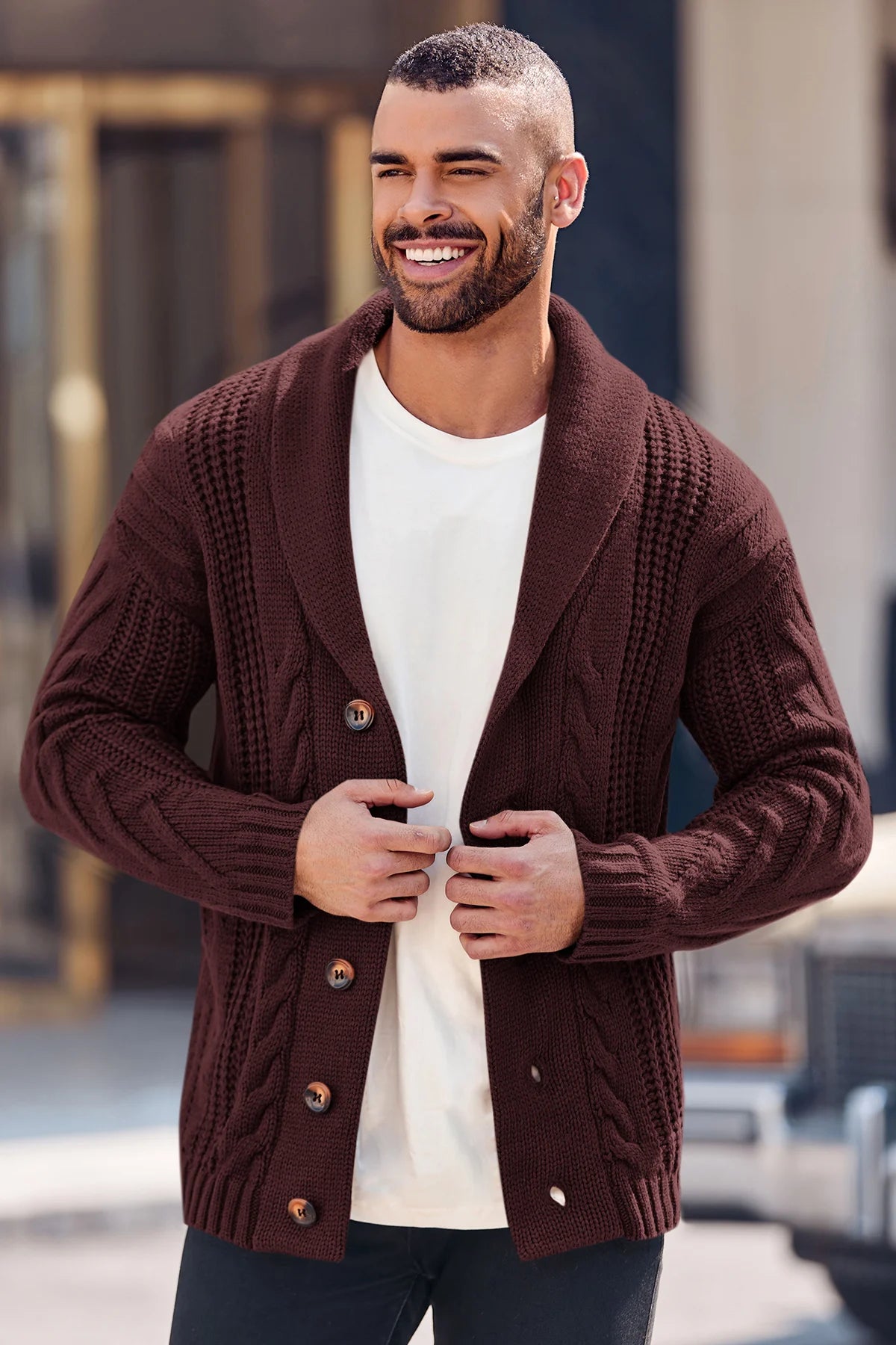 Check out our cozy cardigan made from 95% acrylic and 5% spandex! This high-quality knit is comfy and warm, designed with a button closure, shawl collar, and unique cable knit pattern. Perfect for any occasion—whether it’s a casual day out, Sunday brunch, or a party. It layers nicely over shirts and pairs well with jeans. Plus, it’s easy to care for: machine wash in a laundry bag or hand wash in cold water. Don't forget to check the size chart before you buy!