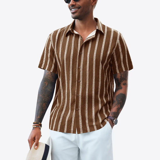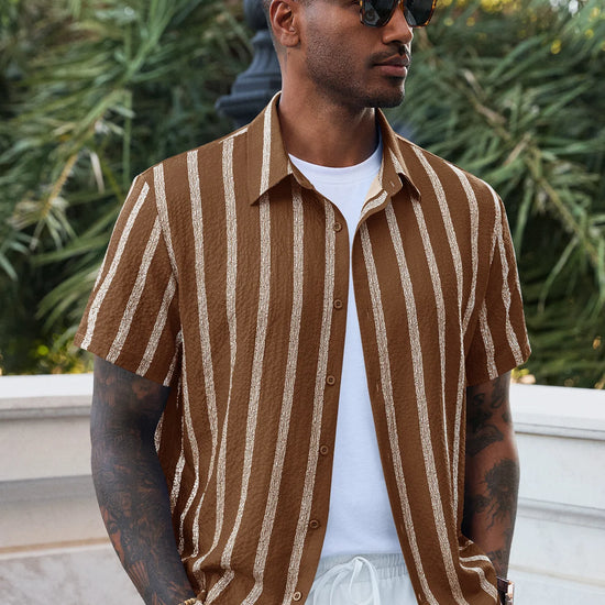 Runcati Mens Coffee Button Down Striped Shirts