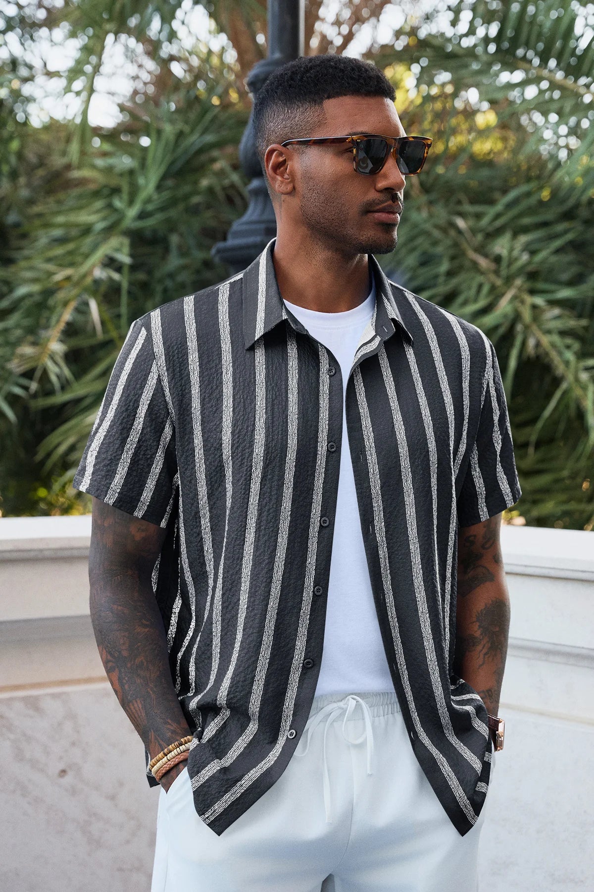 Runcati Mens Dark Grey Button Down Striped Shirts