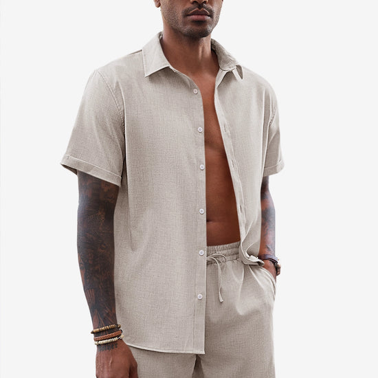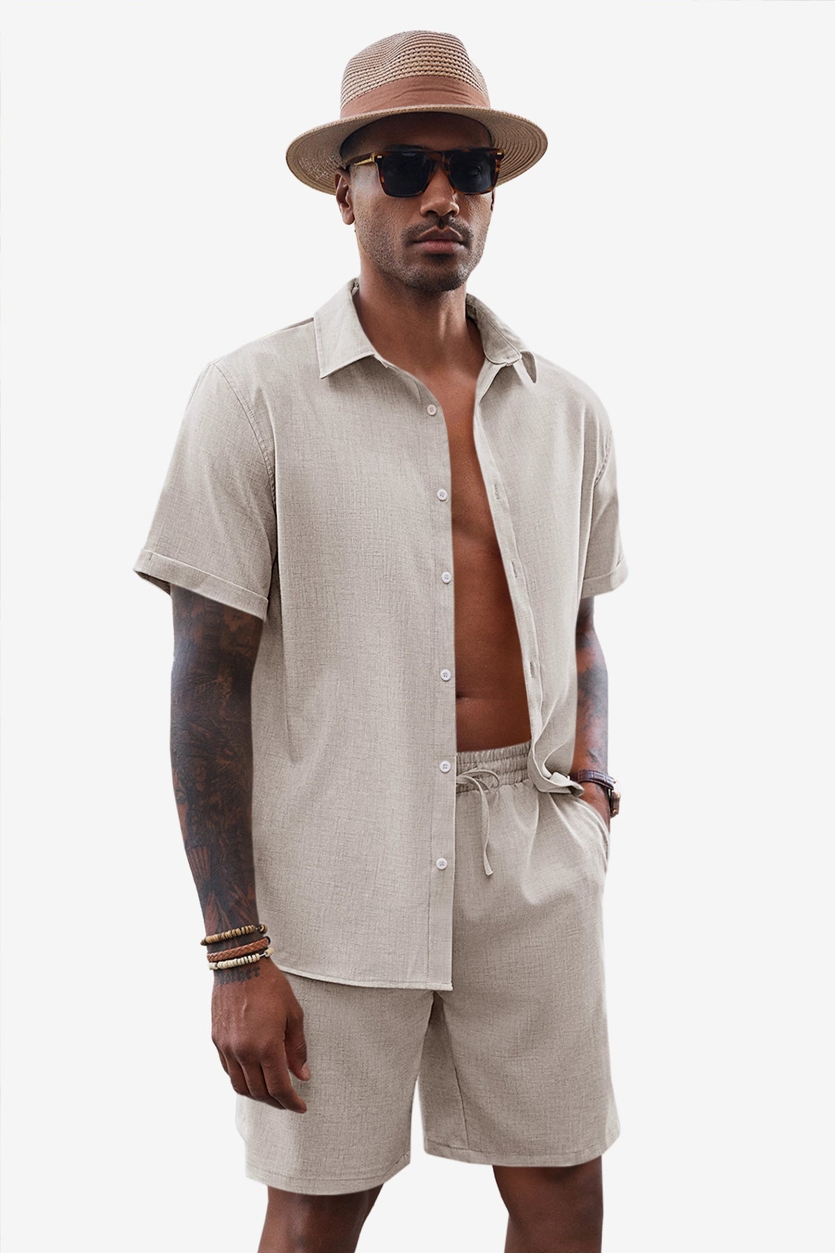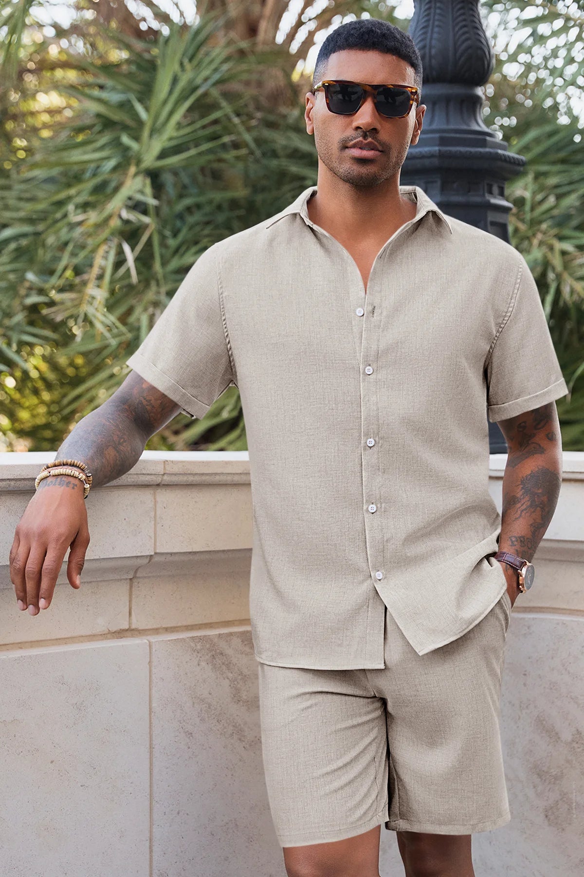 Runcati Mens Apricot Linen Short Sleeve 2 Piece Sets