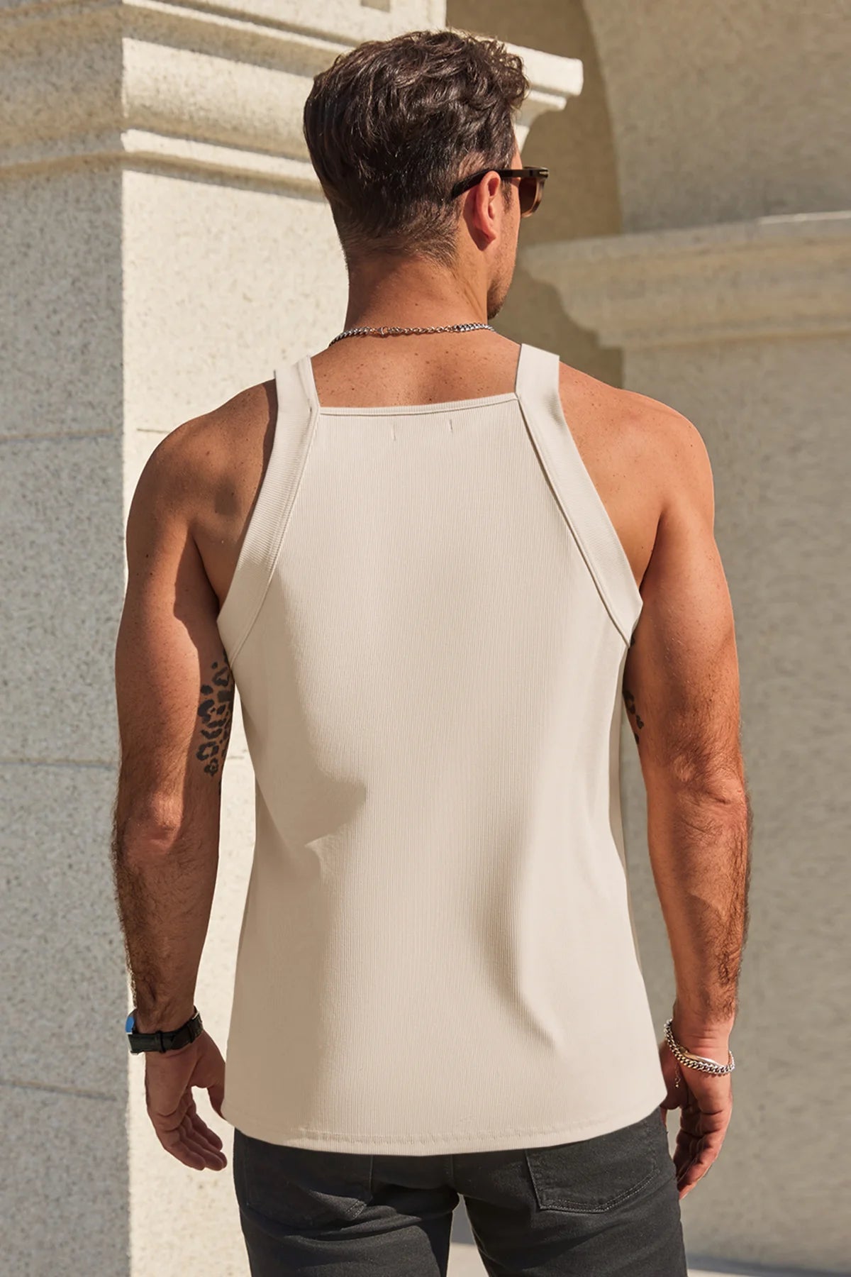 Elevate your physique with the Runcati Men’s Ribbed Knit Tank Top. Designed for the confident man, this slim-fit muscle shirt features a unique square neck and a sophisticated ribbed texture. Whether you're hitting the gym or the beach, its breathable, high-stretch fabric ensures you move with ease while maintaining a sharp, modern edge.