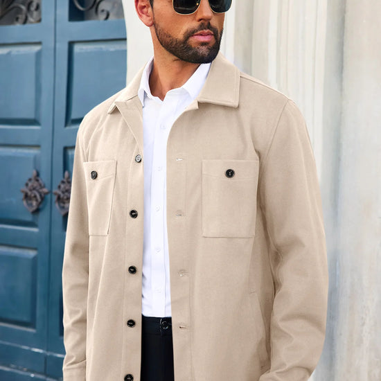 Check out this casual work shirt jacket! It's got a spread collar and long sleeves for extra warmth in cooler weather. With button closure and handy chest and side pockets, it's perfect for keeping your essentials close. Made from a soft, wool-like fabric, it’s thick and cozy without pilling or shrinking. Dress it up or down with shirts, tees, or pants. Ideal for work, dates, or weekends. Easy to care for—just hand or machine wash! Available in various colors to match your style.
