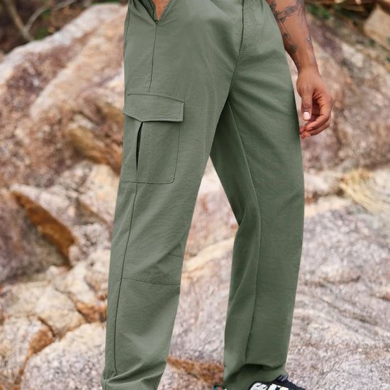 Experience ultimate comfort and freedom with these Cargo Tactical Pants. Crafted from lightweight, breathable, and flexible fabric, they feature an elastic drawstring waist for a perfect loose fit. With five functional pockets, including two flap cargo pockets, and durable stitching, they are built to last. Ideal for hiking, work, travel, or daily wear. Machine washable for easy care.