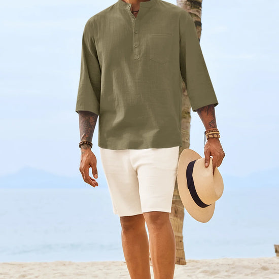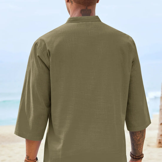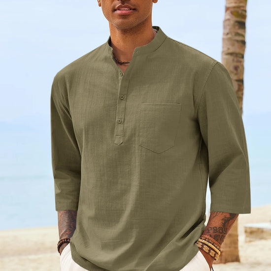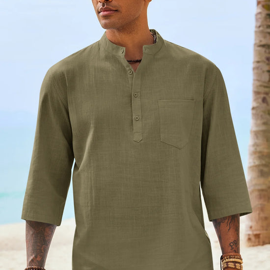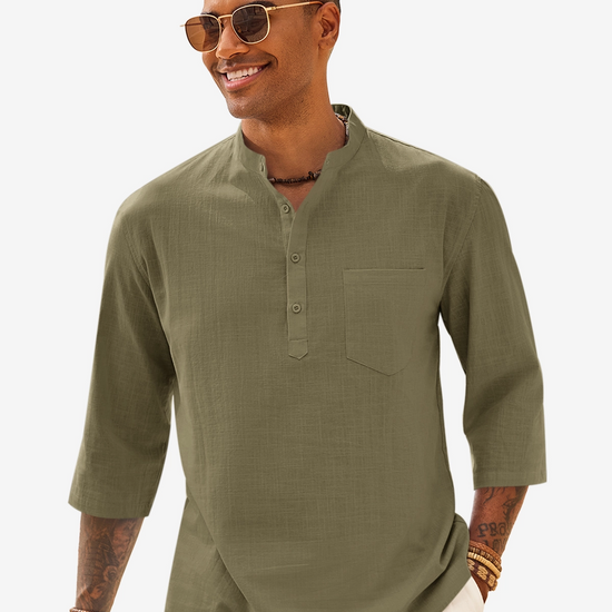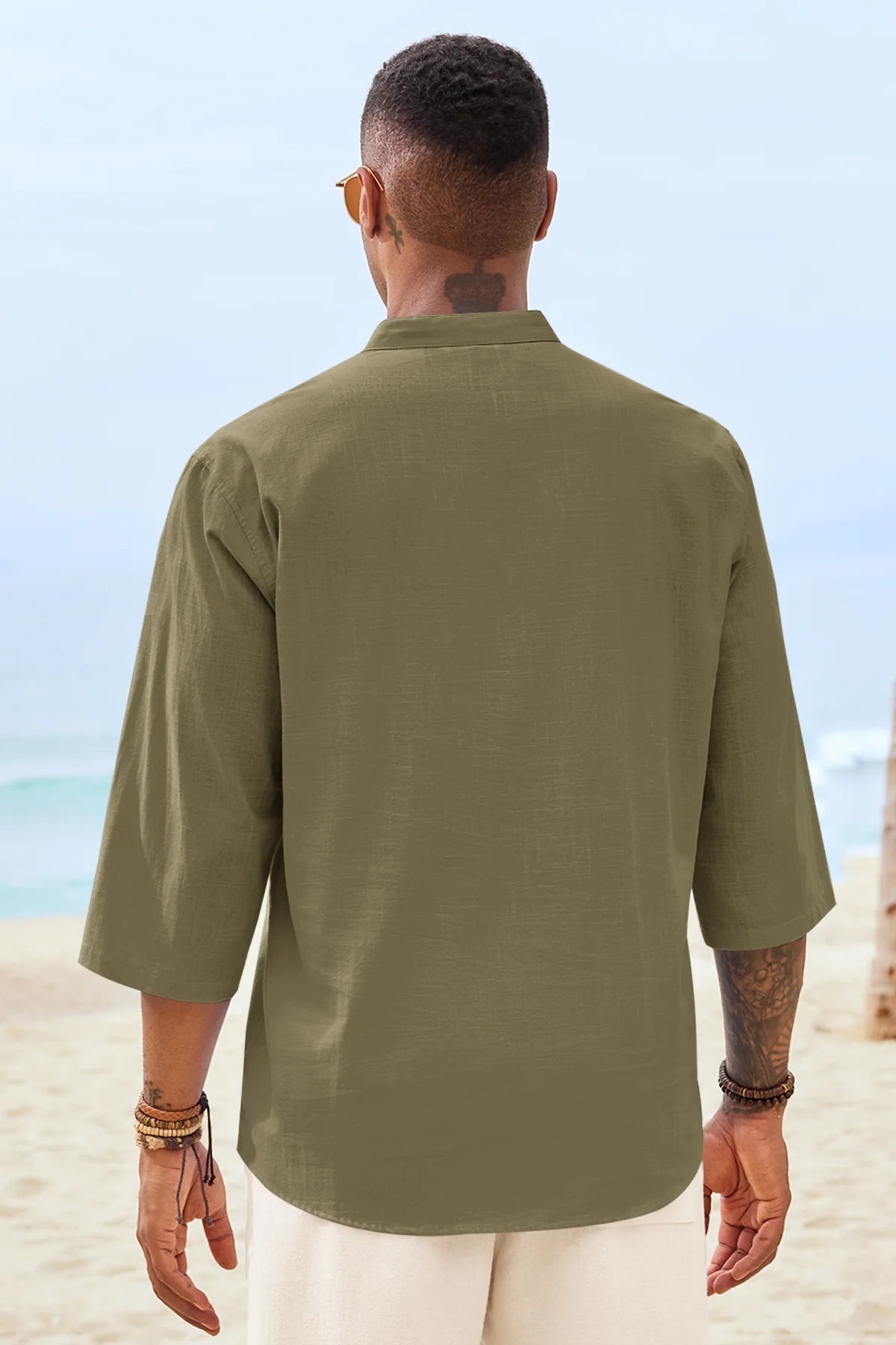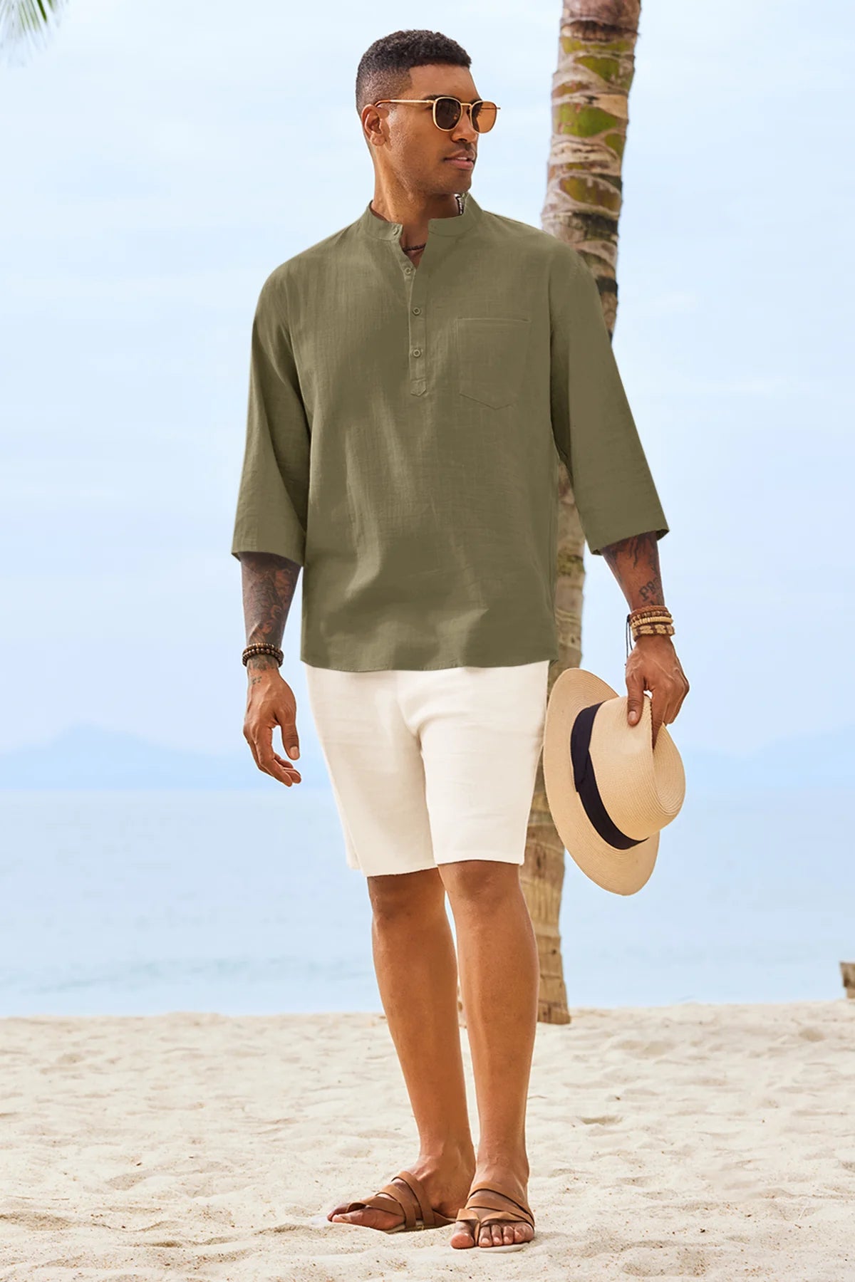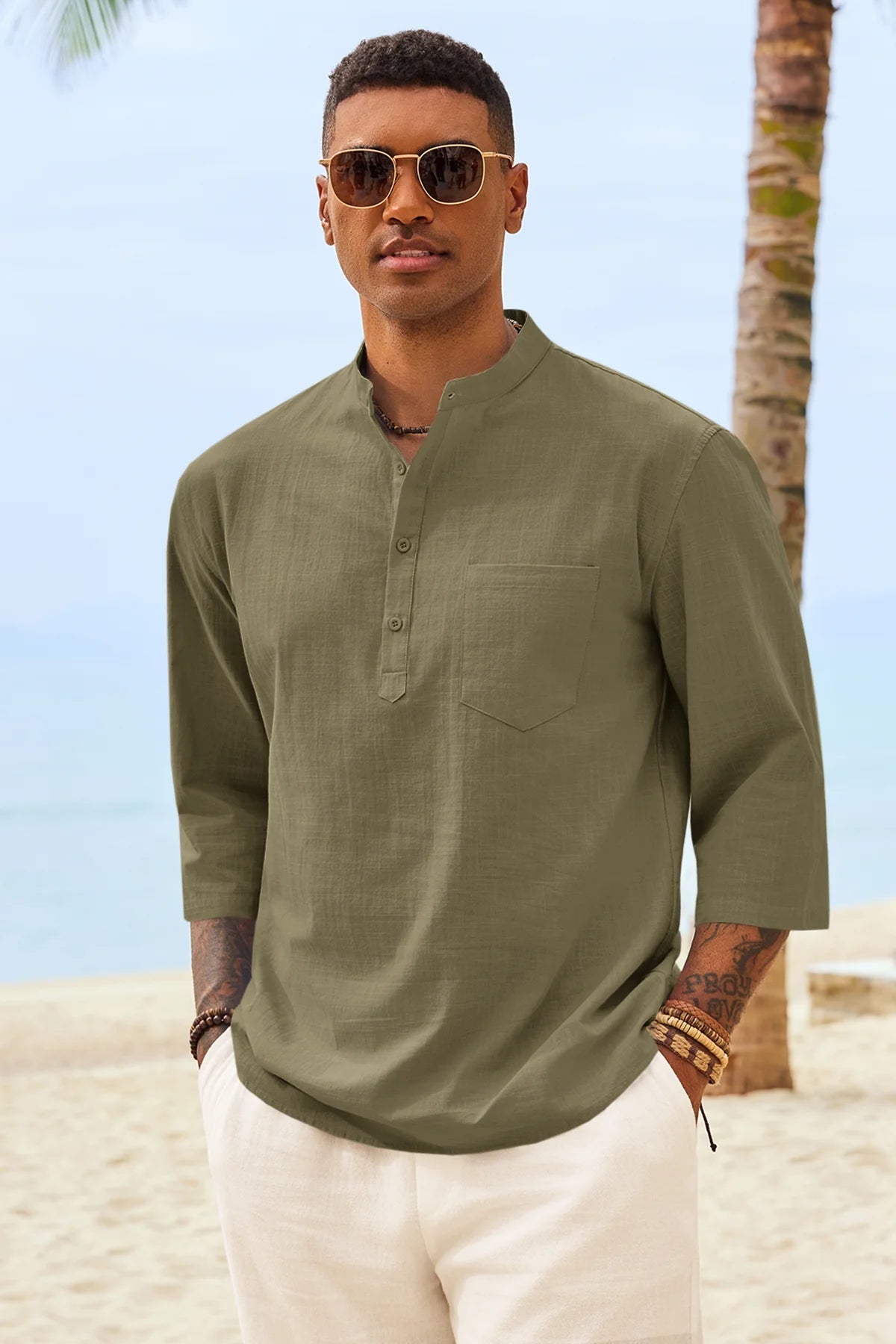 Upgrade your casual collection with Runcati Men’s 3/4 Sleeve Henley Shirt—crafted from 100% cotton with a linen texture for summer comfort and timeless style. Featuring a band collar, button-down closure, and chest pocket, this regular-fit shirt blends hippie charm with versatility. Lightweight and breathable, it keeps you cool on beach outings while offering a polished look for daily wear, dates, or office settings.