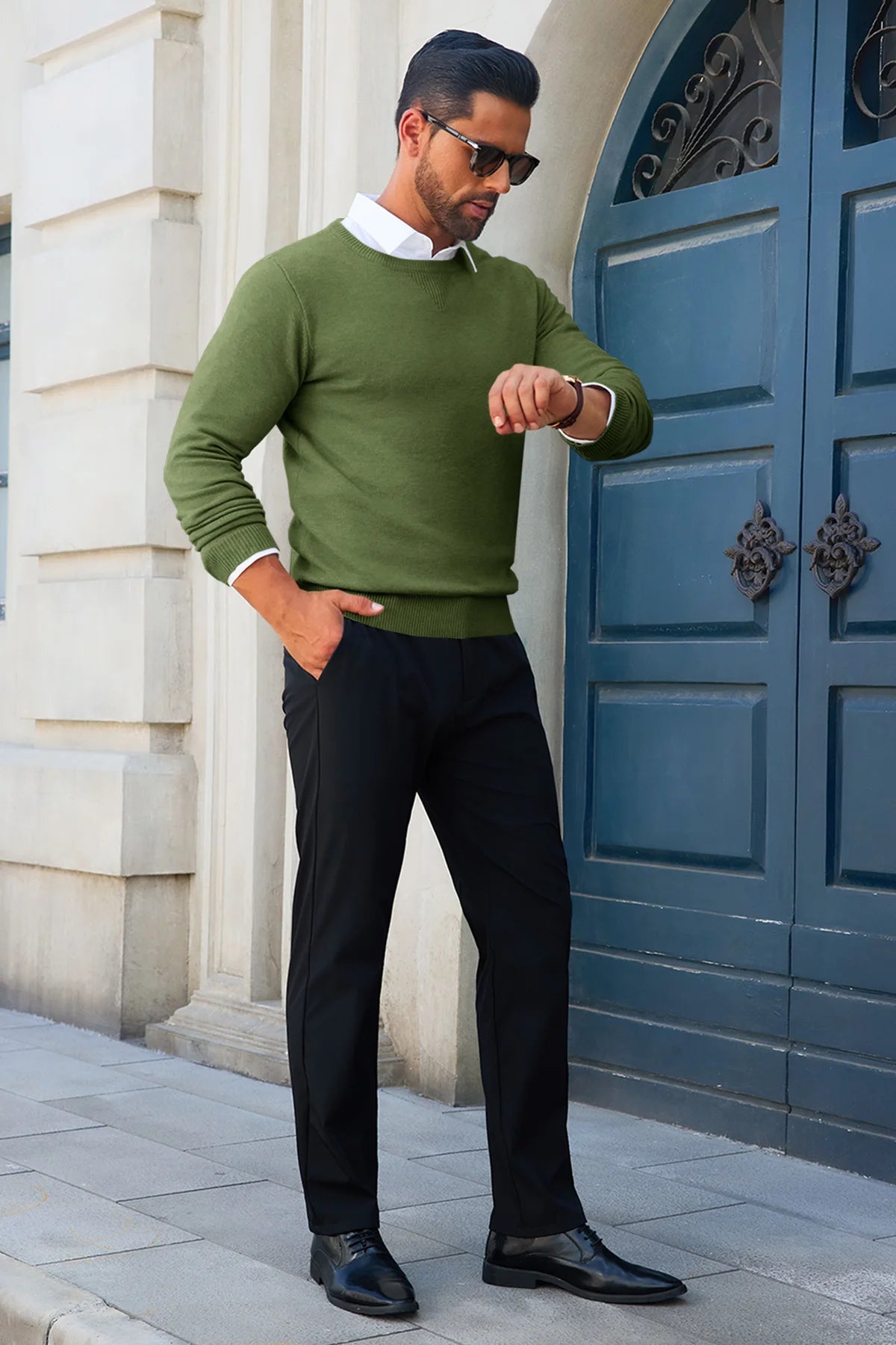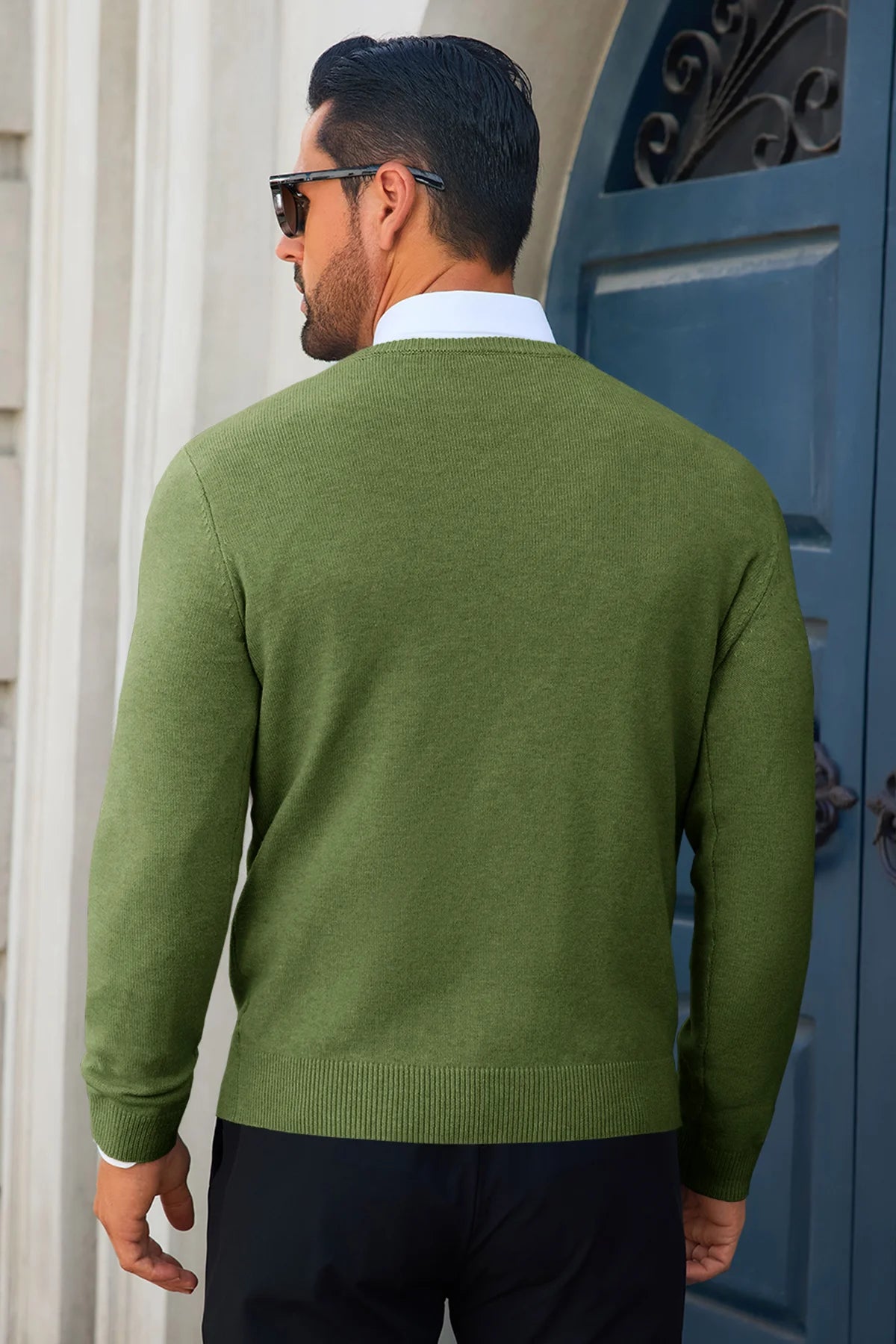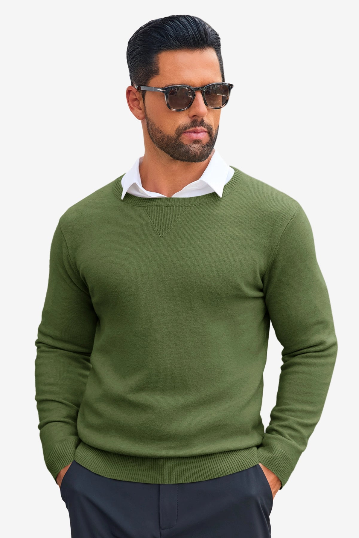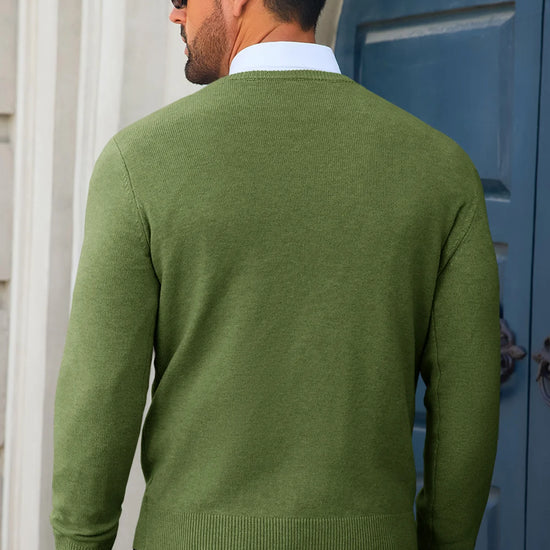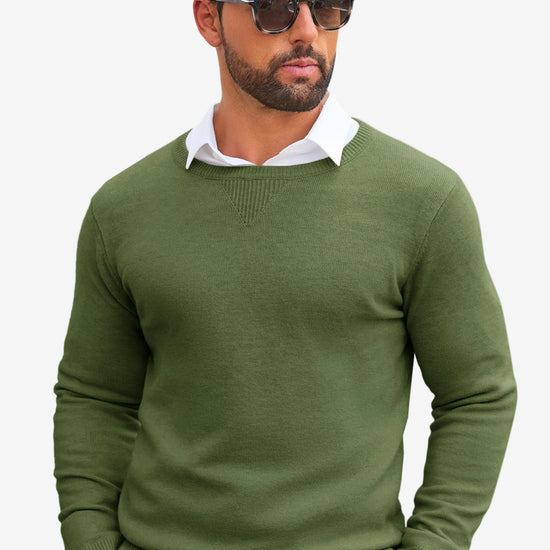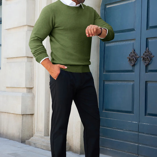 Experience the perfect blend of comfort and sophistication with our Runcati Mens Army Green Crewneck Sweaters. Meticulously crafted from a super-soft, high-quality knit fabric, this crewneck sweater is designed to be your go-to piece for seamlessly transitioning from the office to a weekend outing. Its slim-fit silhouette and timeless design offer a polished look without sacrificing an ounce of comfort.