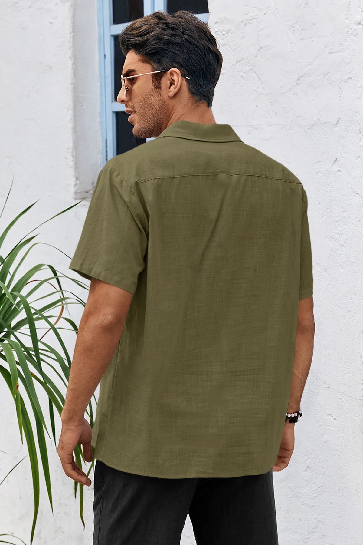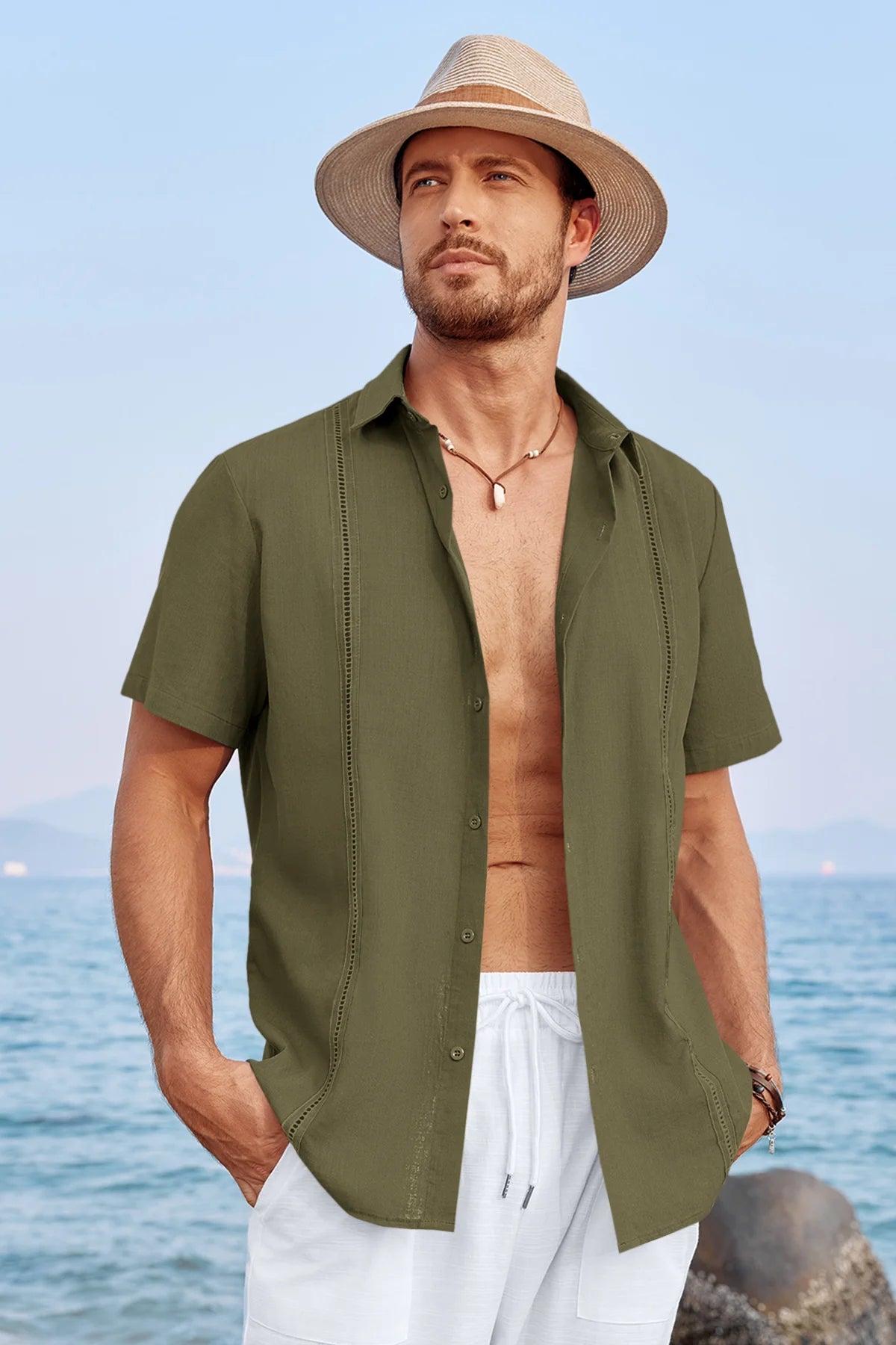 Runcati Mens Army Green Cuban Guayabera Shirts
