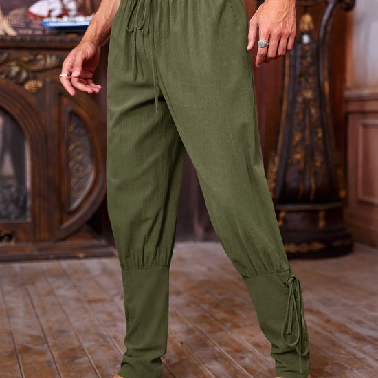 Step back in time or level up your street style with these Runcati Men's Medieval Ankle Pants. Designed with an authentic Renaissance silhouette, these drop-crotch trousers feature adjustable lace-up cuffs and a flexible drawstring waist. Whether you are crafting a Viking costume or seeking a unique bohemian look, these versatile pants deliver both character and comfort.