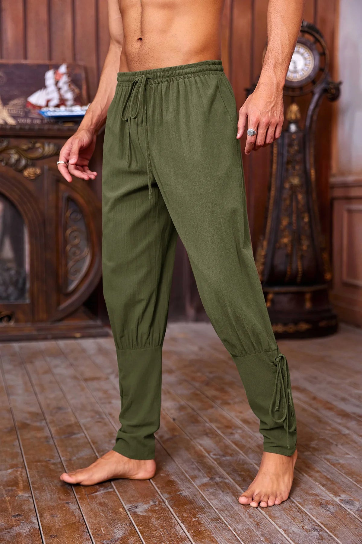Runcati Mens Army Green Medieval Ankle Pants