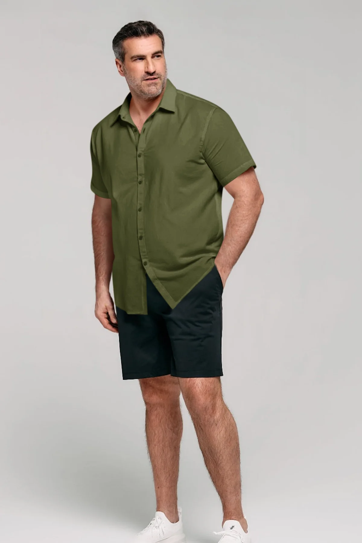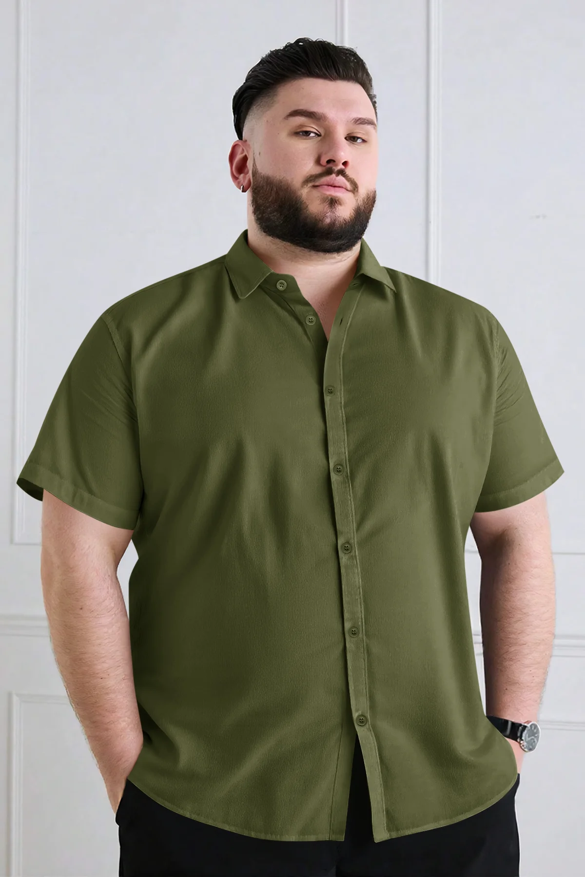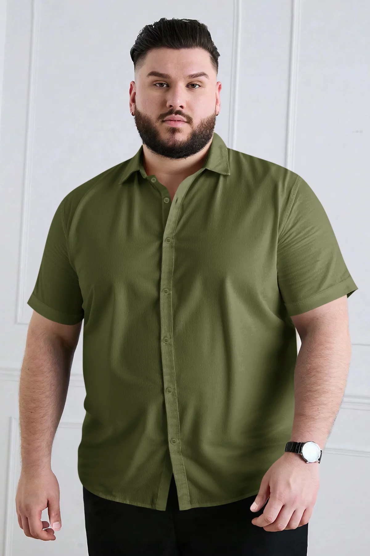Runcati Mens Army Green Plus Size Shirts