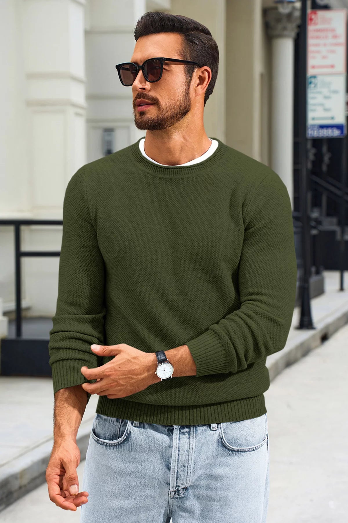 Check out our Men’s Crewneck Sweater, designed to blend casual and elegant styles effortlessly! With a classic crew neck and rolled collar, it keeps you warm with ribbed cuffs and hem. Made from high-quality textured knit, it's thick, soft, and pill-resistant. Perfect for layering or on its own, this versatile piece is ideal for any occasion—from casual outings to business meetings. Just remember to wash it carefully to keep it looking great!