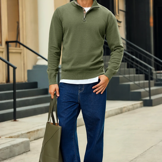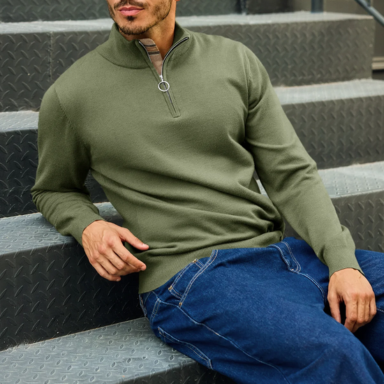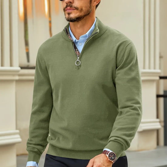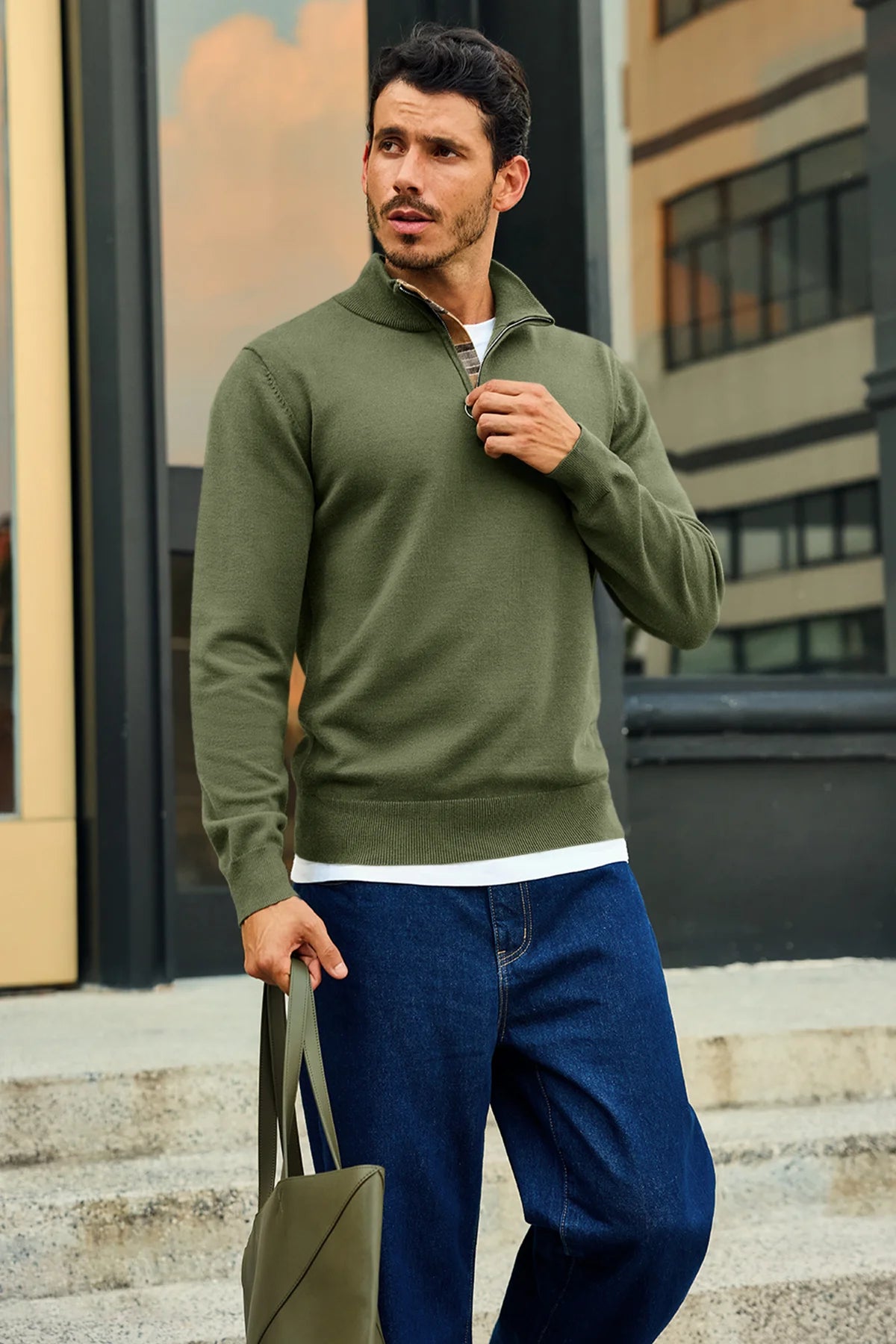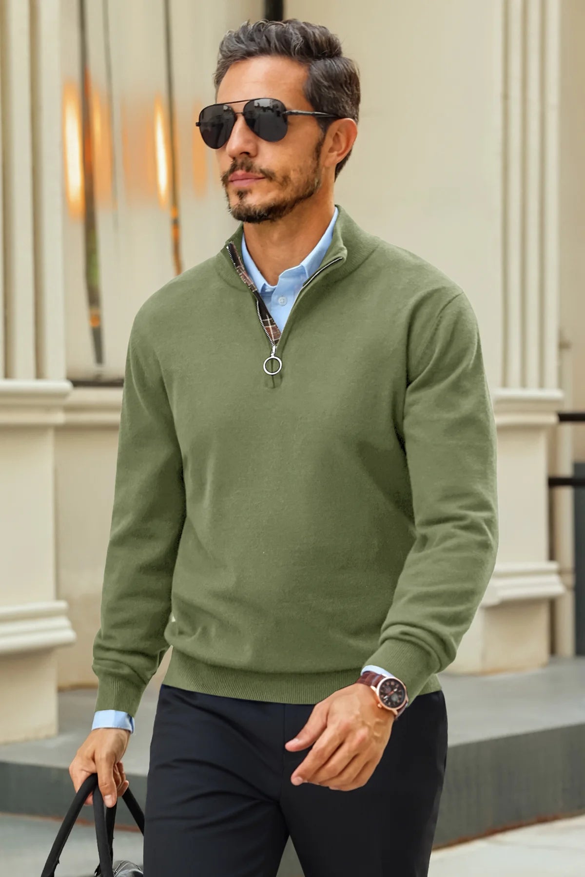 Runcati Mens Army Green Quarter-Zip Pullovers Sweaters