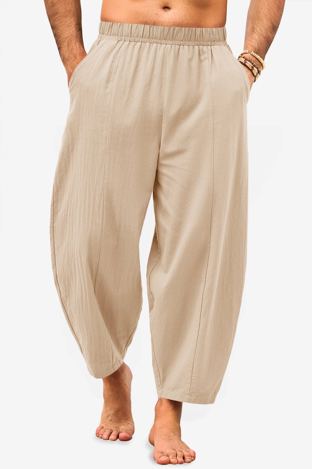 These casual pants feature a elastic waist and button zipper closure for adjustable comfort and a loose fit that enhances mobility. Made from lightweight, breathable 100% cotton fabric, they're super soft against your skin, keeping you fresh all day. Perfect for casual outings or lounging at home, just pair them with a t-shirt or tank. Great for daily wear, yoga, or beach days. Machine washable for easy care!