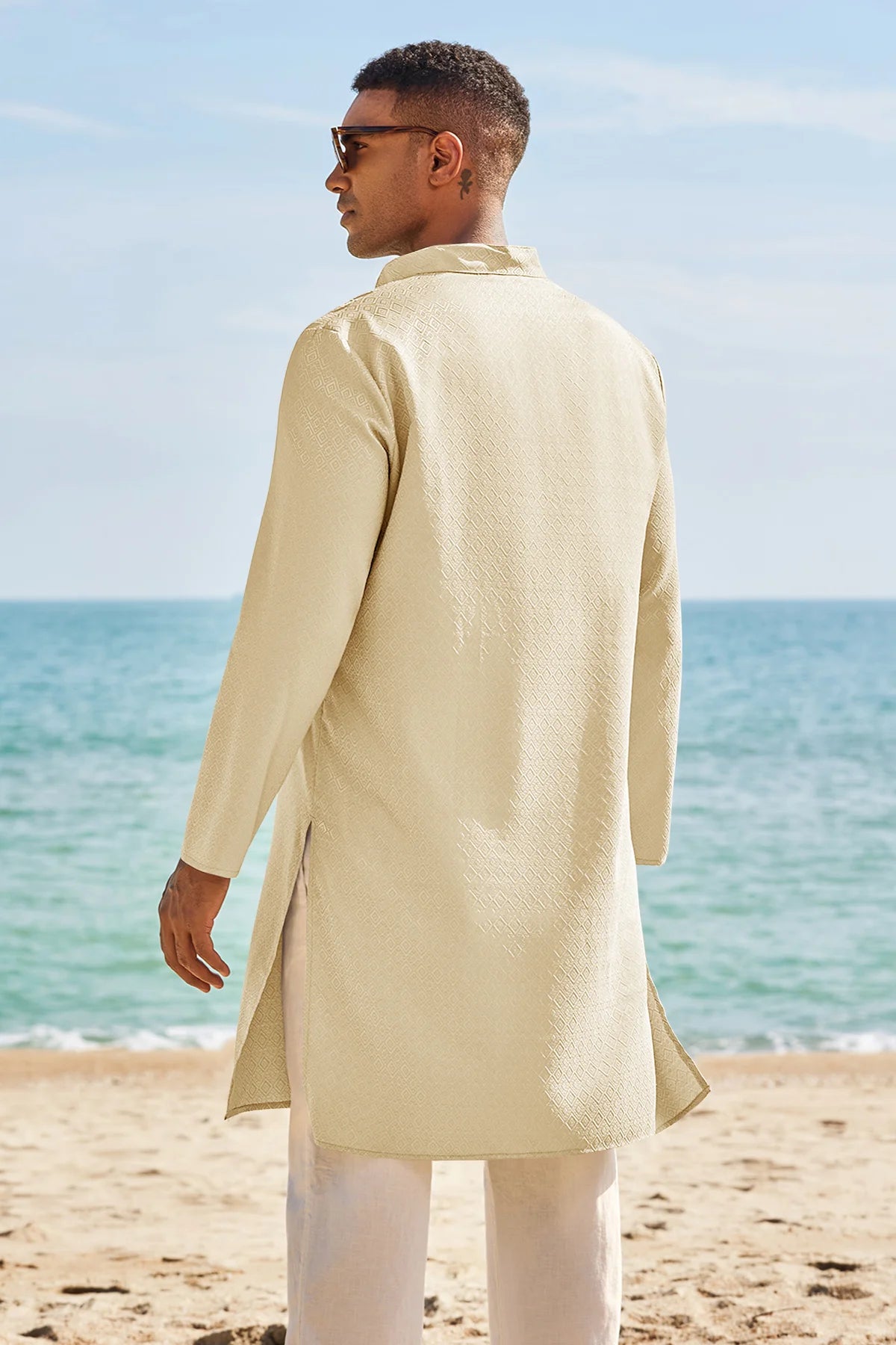 Runcati Mens Beige Kaftan Robe