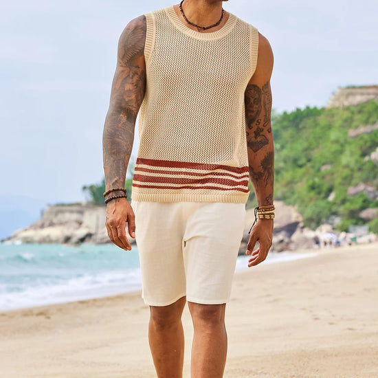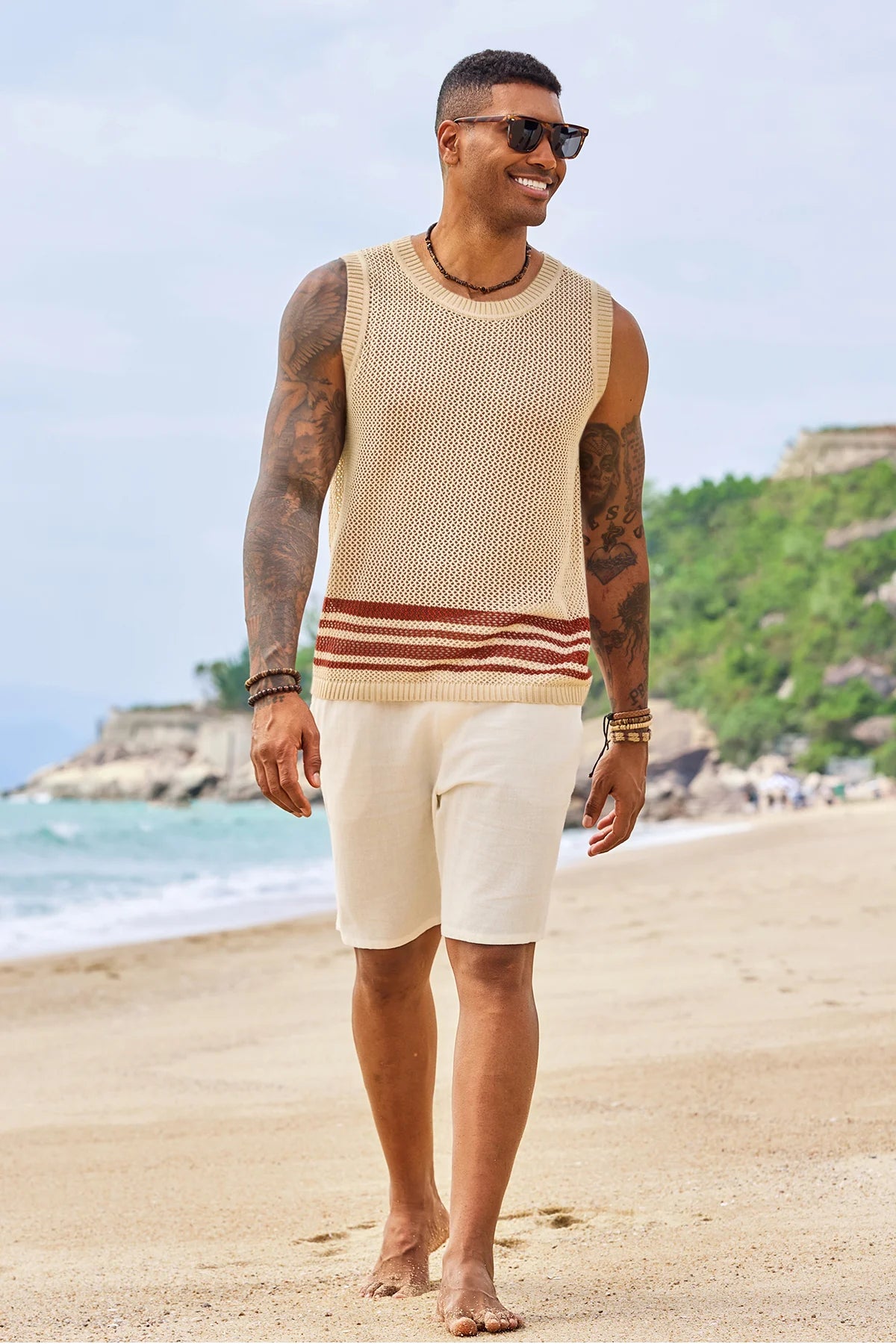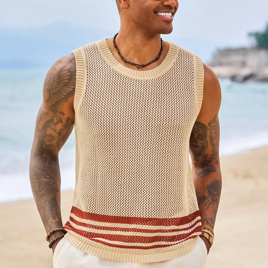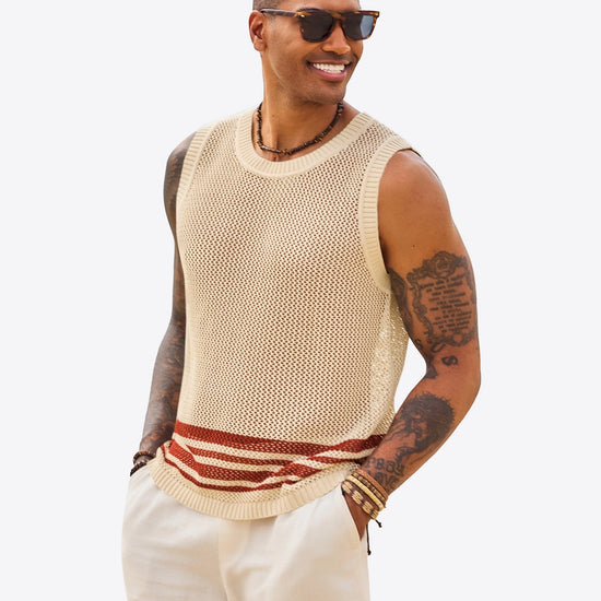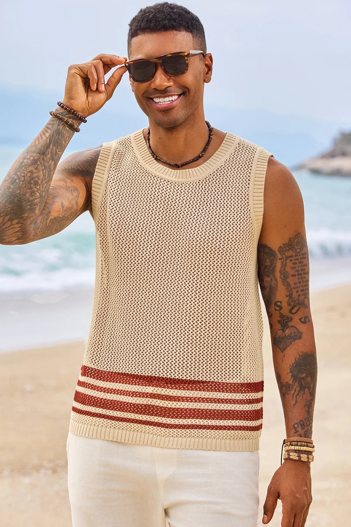 Elevate your summer style with Runcati Men’s Crochet See-Through Tank Tops—crafted for beach days and streetwear vibes. This sleeveless crew neck top features a hollow knit design to showcase muscle lines, color-blocked hem for trendy flair, and breathable fabric for all-day coolness. Perfect for beach parties, casual outings, or hip-hop looks, it pairs effortlessly with shorts or jeans for a laid-back hippie aesthetic.