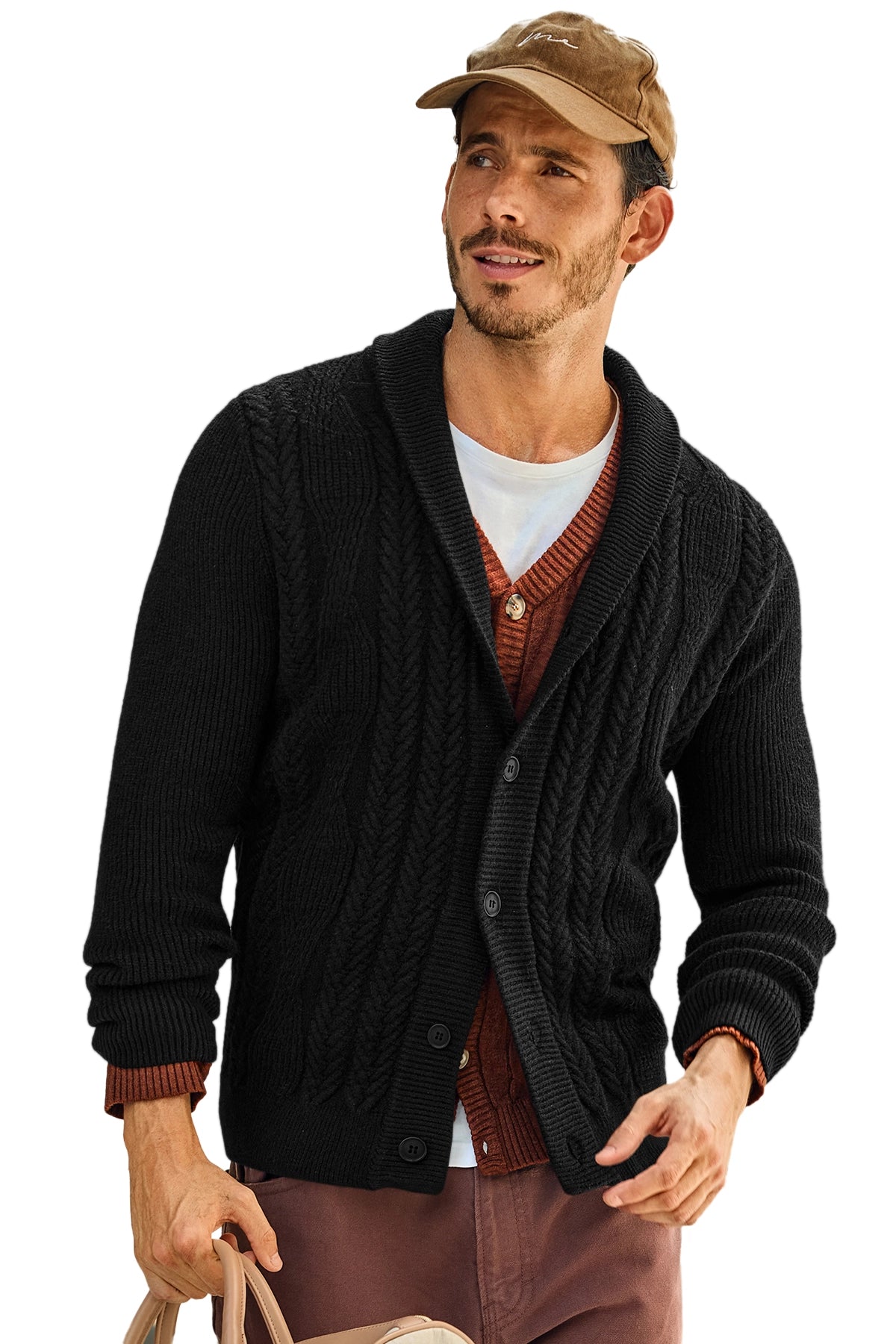Runcati Mens Black Button Down Shawl Collar Cardigan Sweaters
