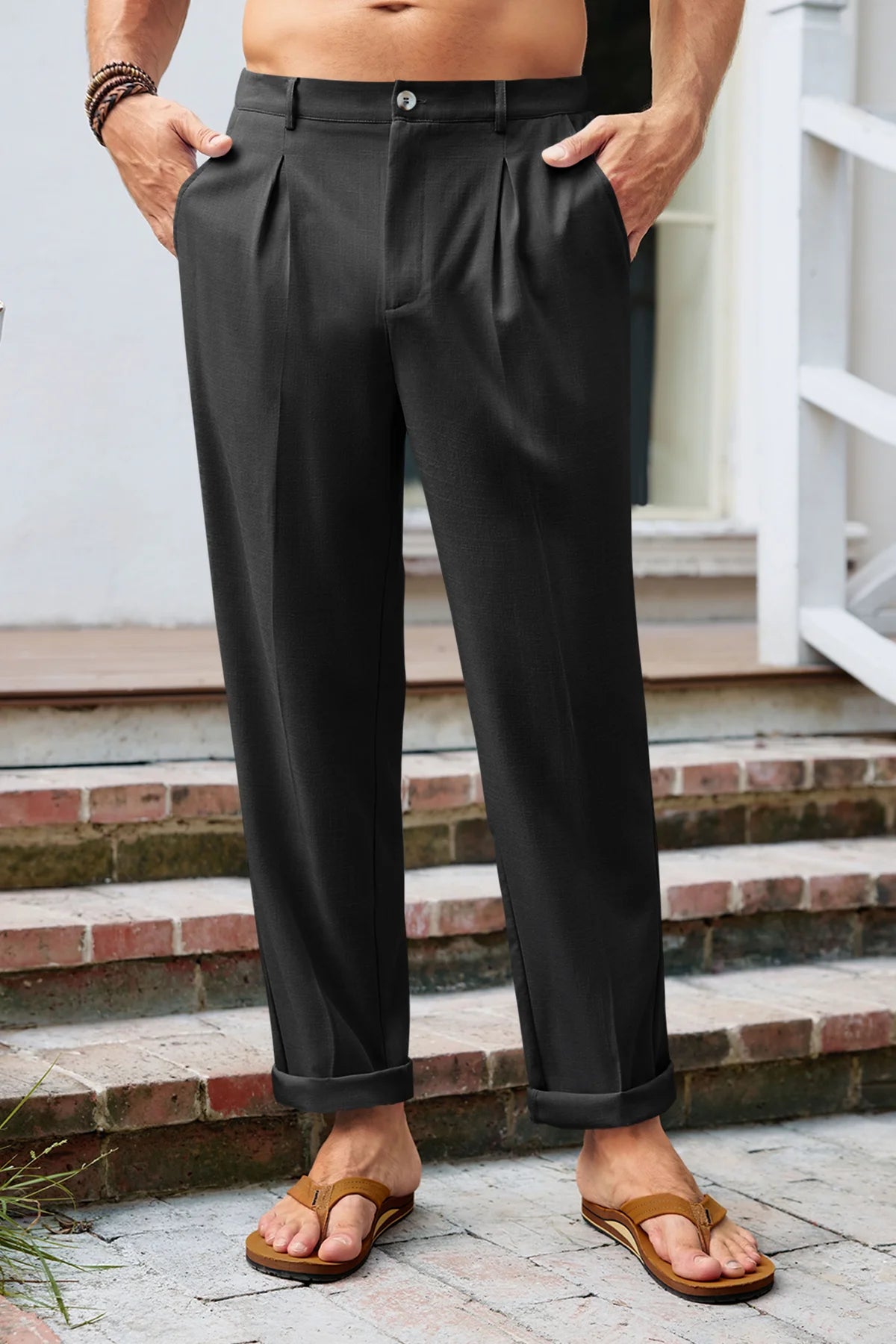 Check out these men's casual pants designed for total comfort! Made from soft, breathable faux linen, they feature an elastic back waist, a button closure, and a relaxed straight-leg fit with pleats. Perfect with a tee or Hawaiian shirt, they’re ideal for daily wear, beach days, or just lounging. Easy to care for and great as a gift!