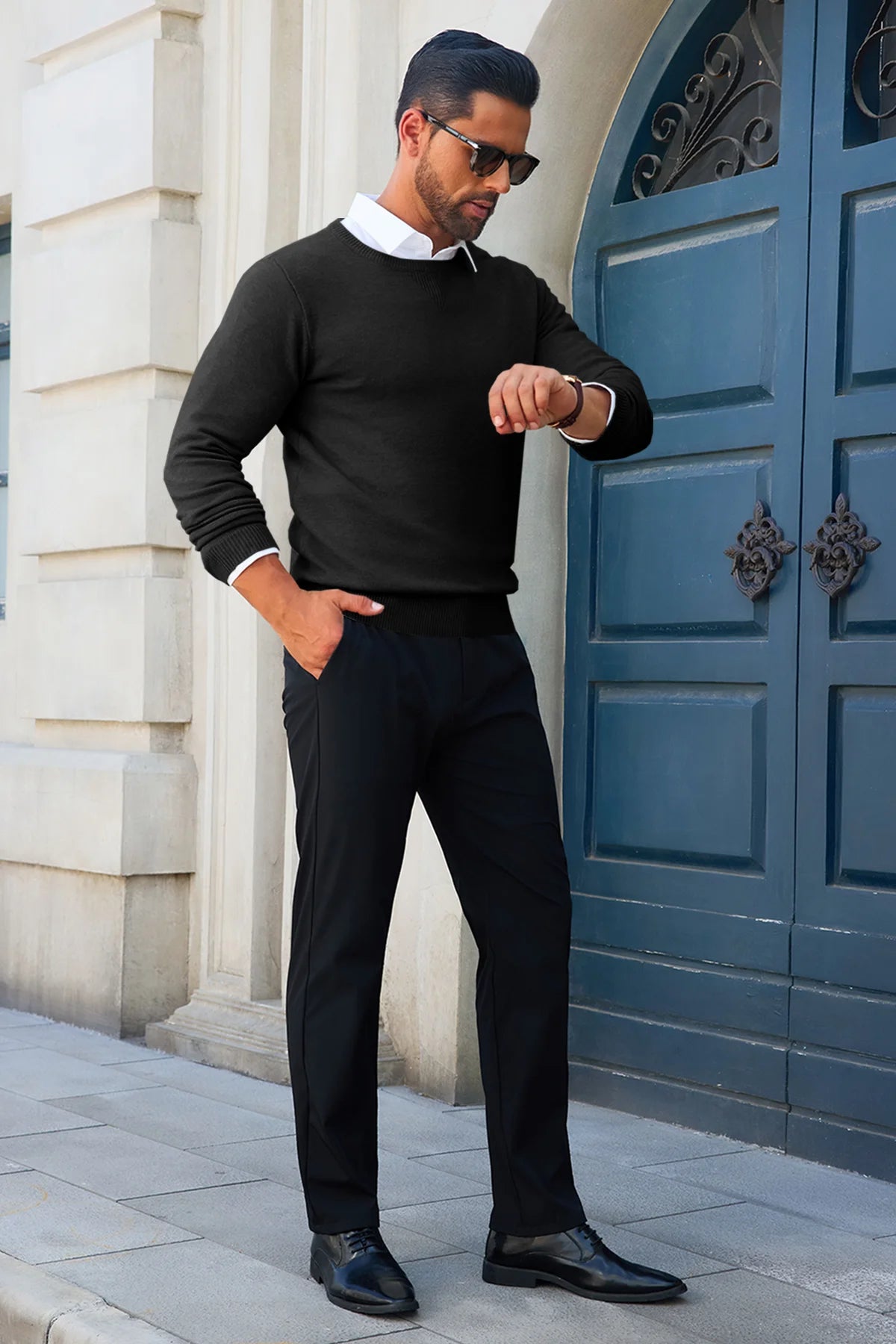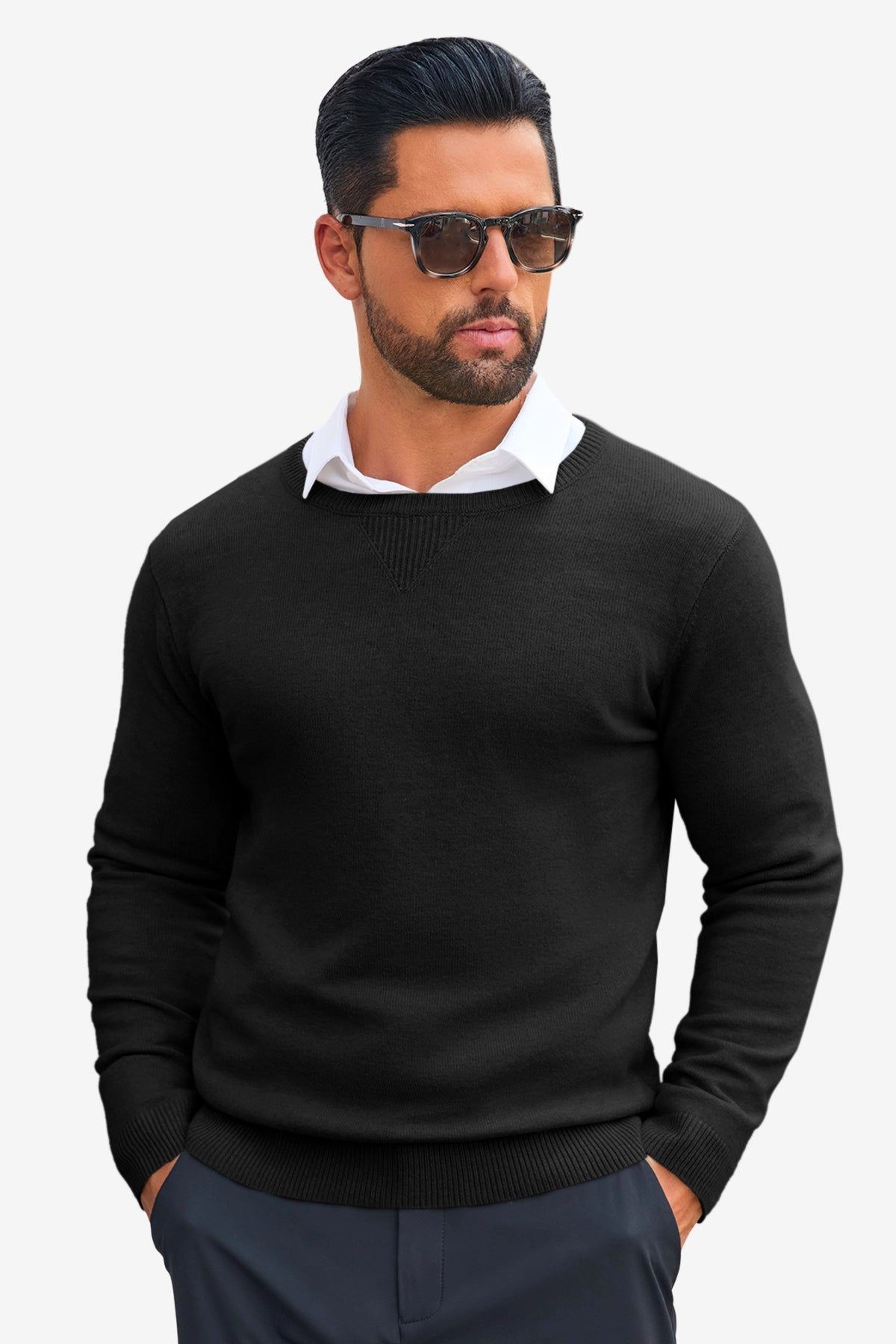 Experience the perfect blend of comfort and sophistication with our Runcati Mens Black Crewneck Sweaters. Meticulously crafted from a super-soft, high-quality knit fabric, this crewneck sweater is designed to be your go-to piece for seamlessly transitioning from the office to a weekend outing. Its slim-fit silhouette and timeless design offer a polished look without sacrificing an ounce of comfort.