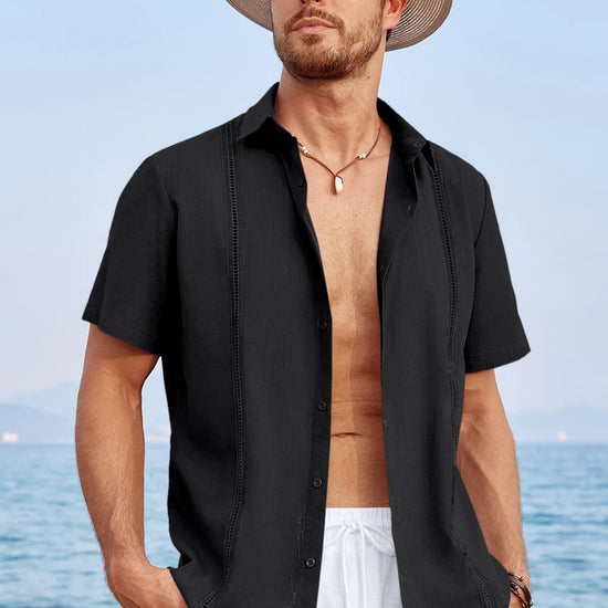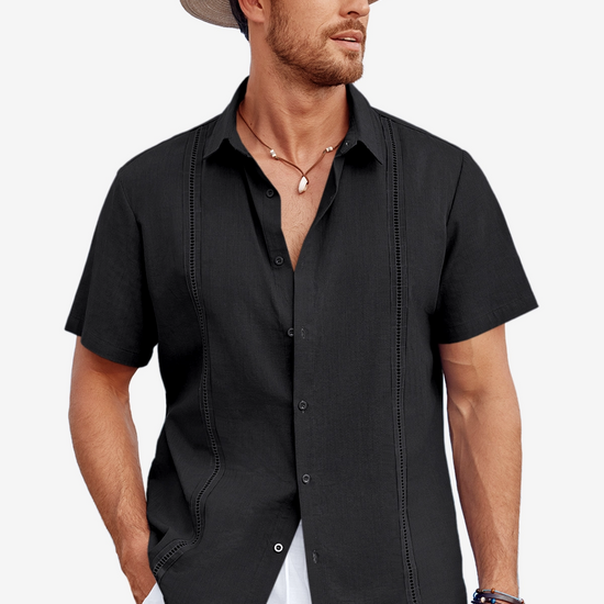 Authentic Cuban Guayabera design with short sleeves, turn-down collar, and button closure for classic appeal.