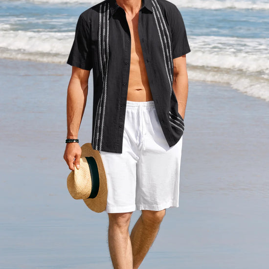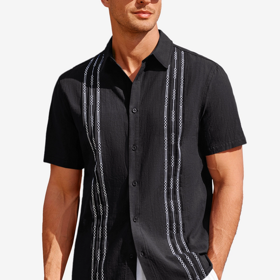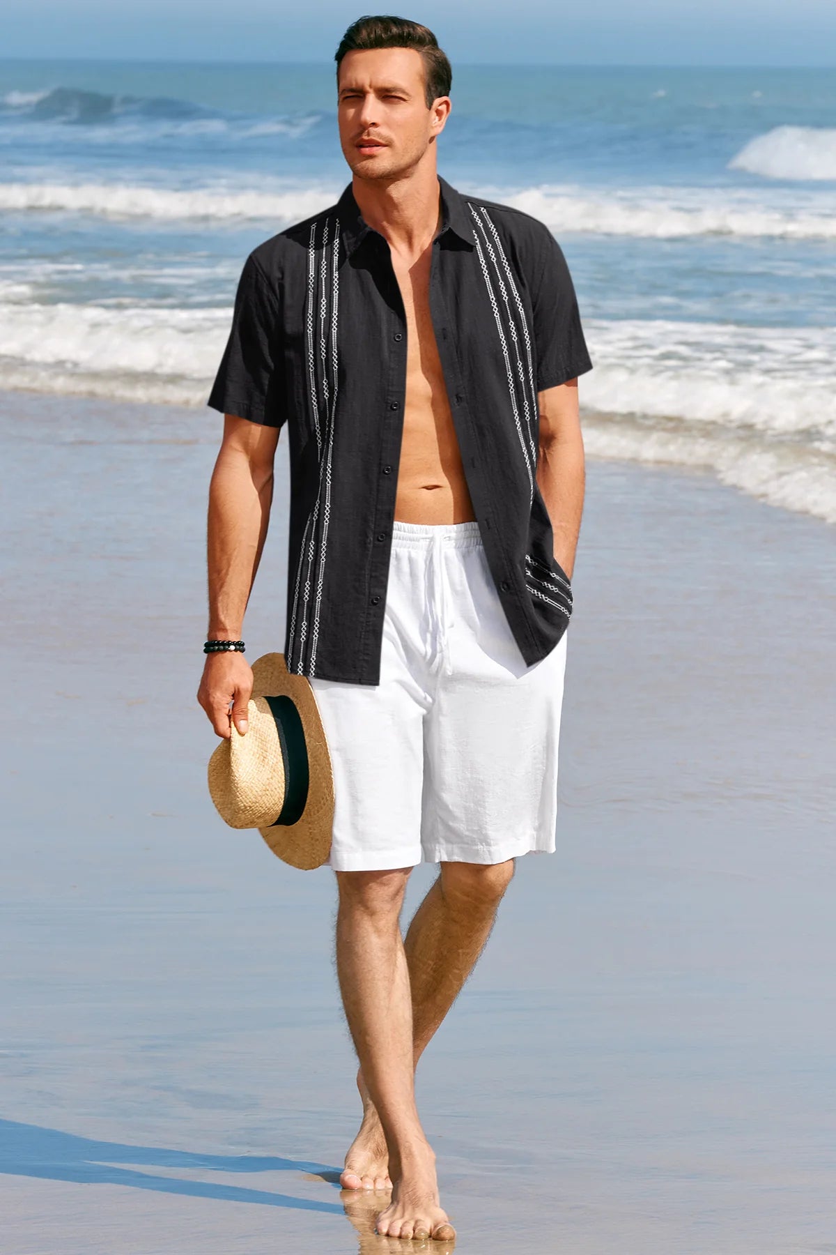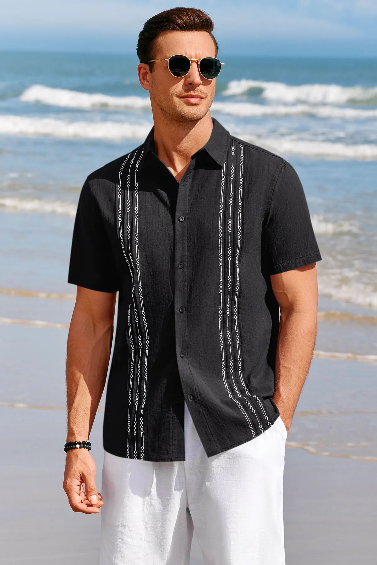 Introducing the Easy Fit Mexican Guayabera shirt – a perfect blend of style and comfort! Made from light linen cotton, it’s designed for a relaxed fit with a classic short sleeve, button-down, v-neck, and spread collar. Featuring elegant embroidery on the sides, it’s great for weddings or casual beach outings. Available in vibrant colors like Black, White, Sky Blue, and more, this shirt is a must-have for any wardrobe!
