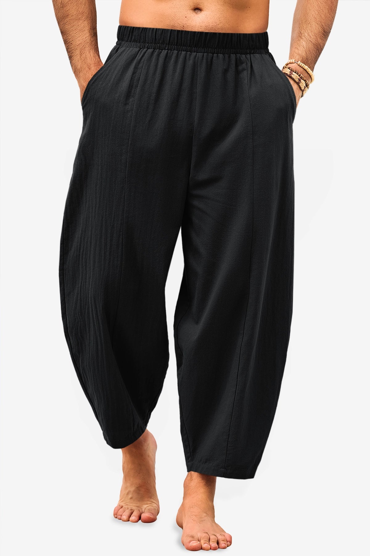 These casual pants feature a elastic waist and button zipper closure for adjustable comfort and a loose fit that enhances mobility. Made from lightweight, breathable 100% cotton fabric, they're super soft against your skin, keeping you fresh all day. Perfect for casual outings or lounging at home, just pair them with a t-shirt or tank. Great for daily wear, yoga, or beach days. Machine washable for easy care!