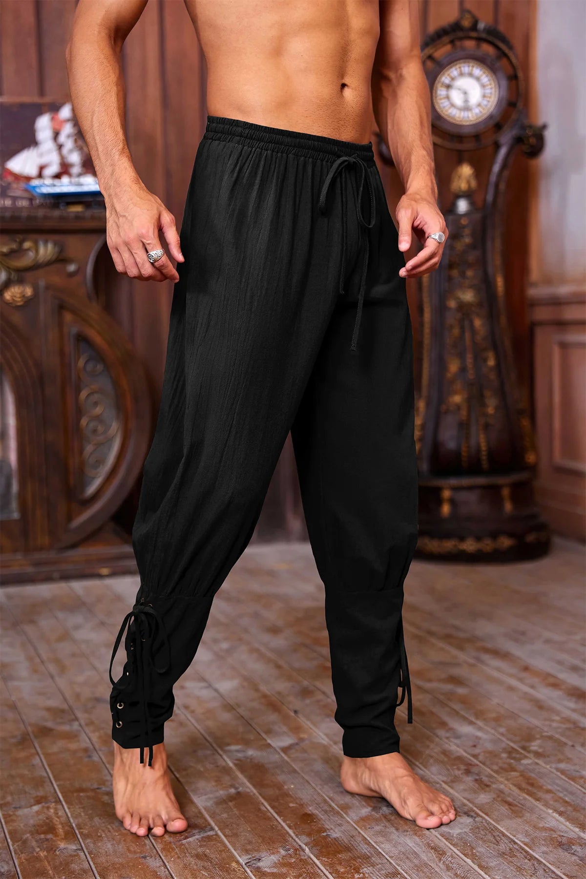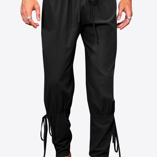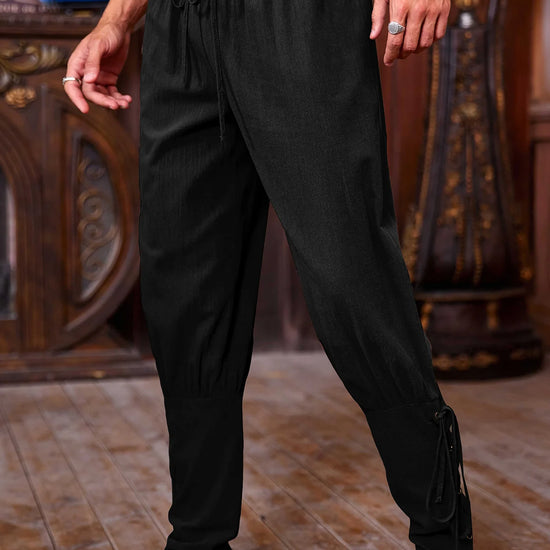 Step back in time or level up your street style with these Runcati Men's Medieval Ankle Pants. Designed with an authentic Renaissance silhouette, these drop-crotch trousers feature adjustable lace-up cuffs and a flexible drawstring waist. Whether you are crafting a Viking costume or seeking a unique bohemian look, these versatile pants deliver both character and comfort.