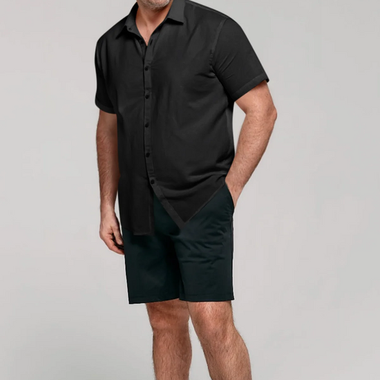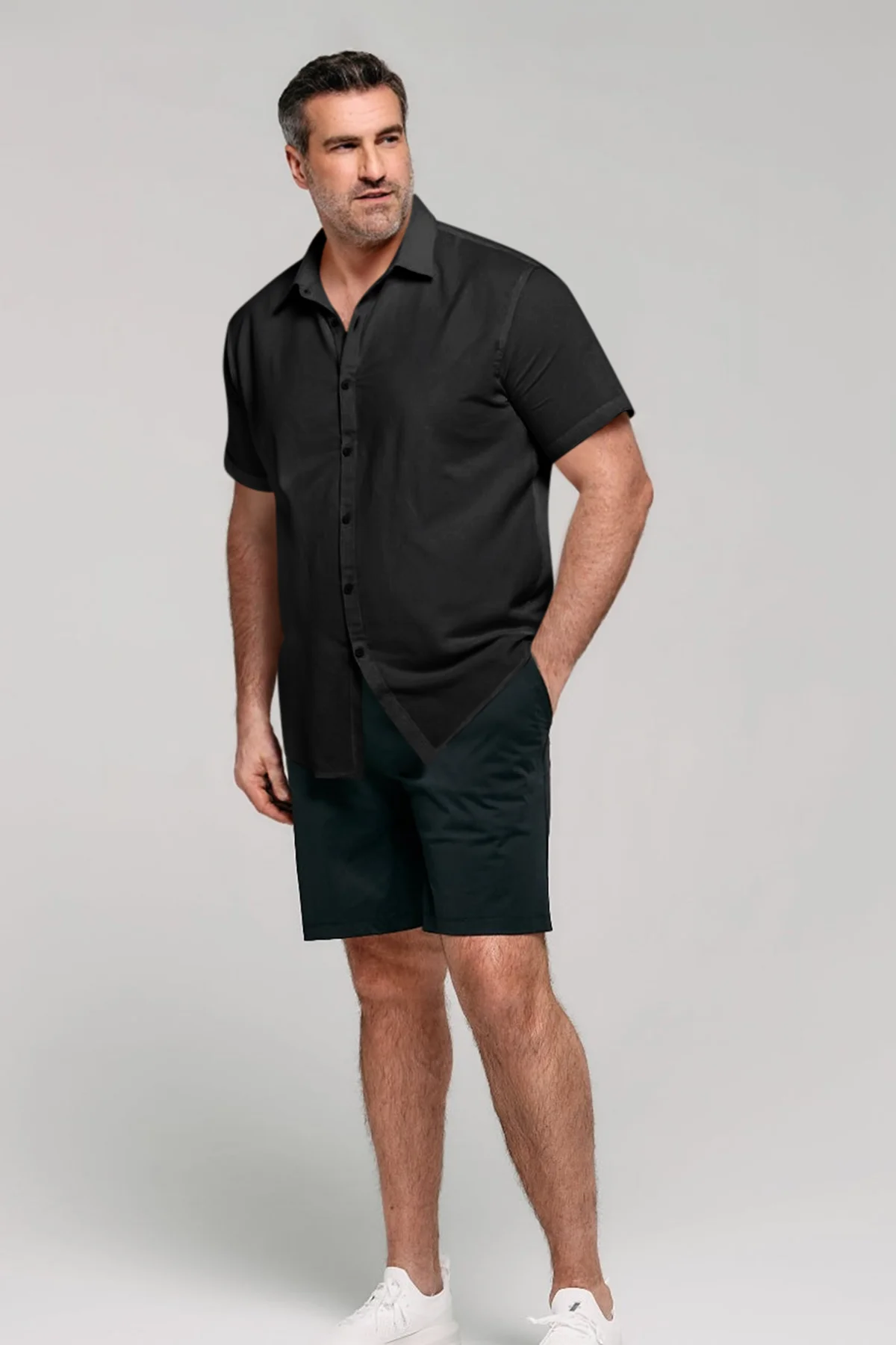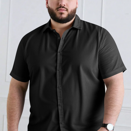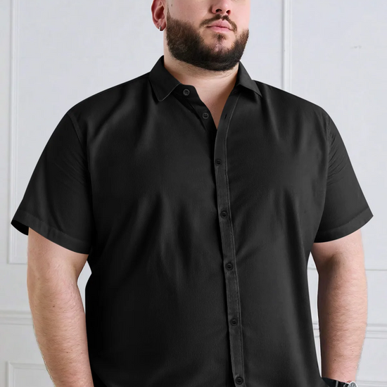 Introducing the men's big & tall short sleeve button-down shirt – a perfect mix of style and comfort! Crafted from high-quality tech fabric, it's designed for sizes XL-5XL with a tailored fit: contouring smoothly around arms, shoulders and chest while leaving extra room in the midsection. Featuring a classic spread collar and sweat-wicking function, it keeps you cool and sharp, ideal for active days or sunny outings. Available in versatile styles, it’s a wardrobe essential for big and tall men!