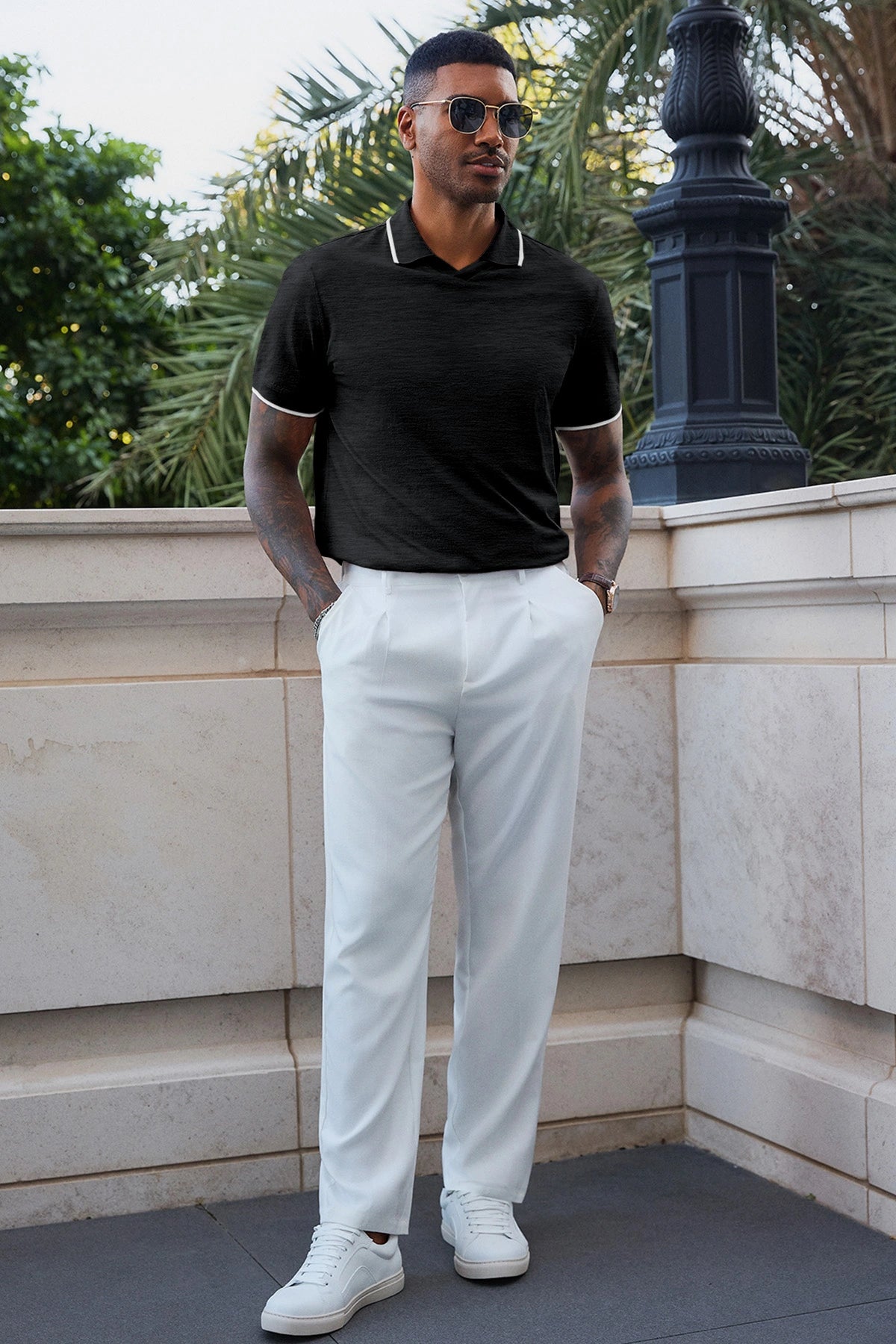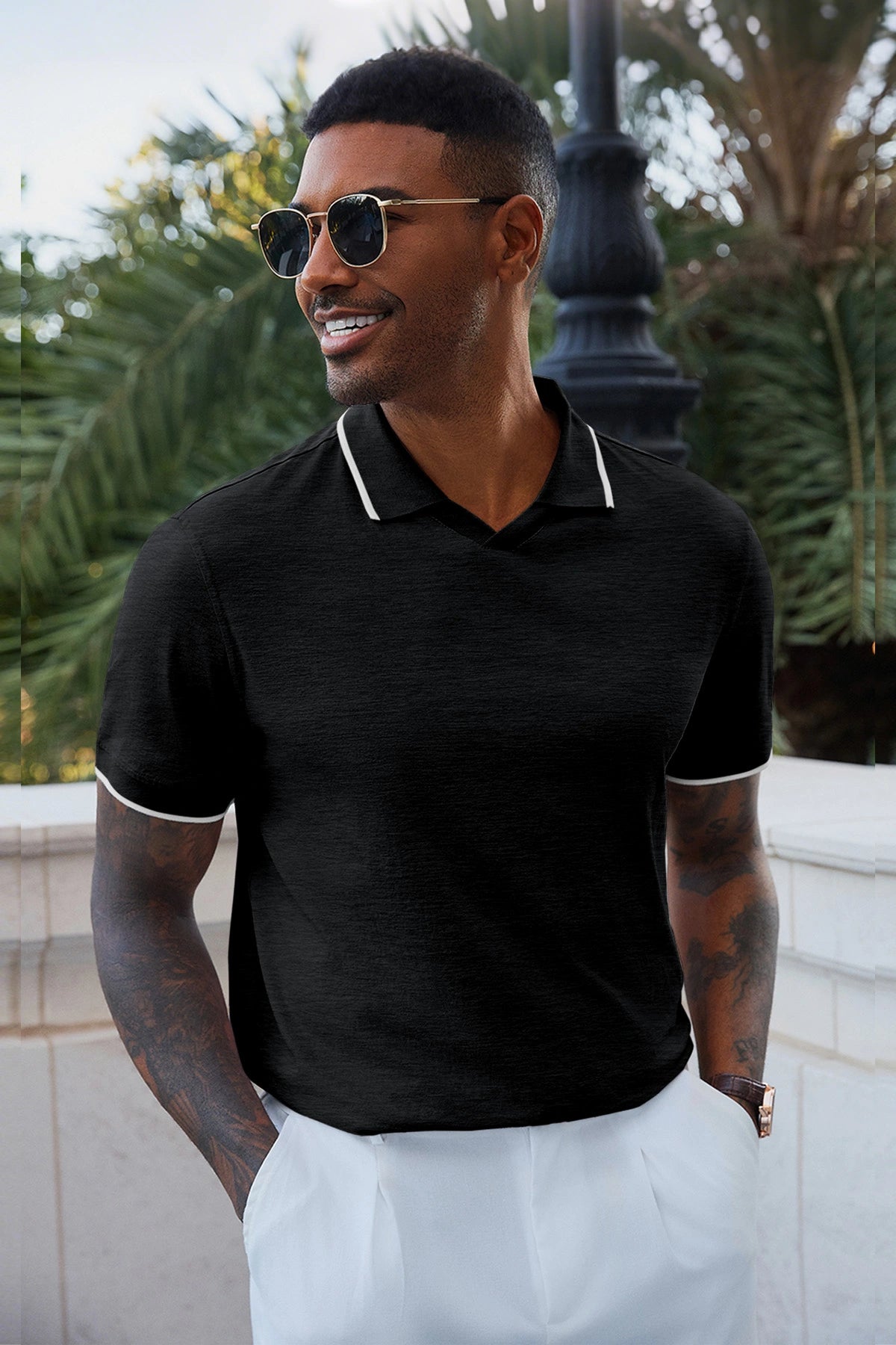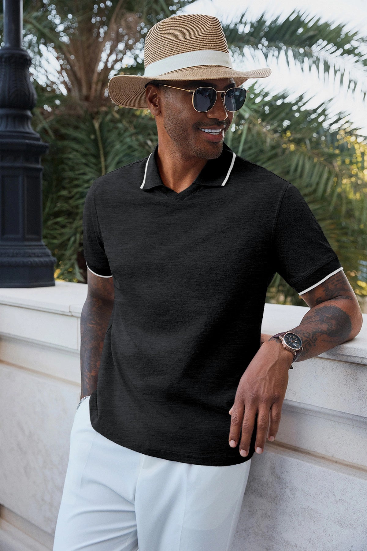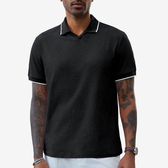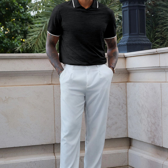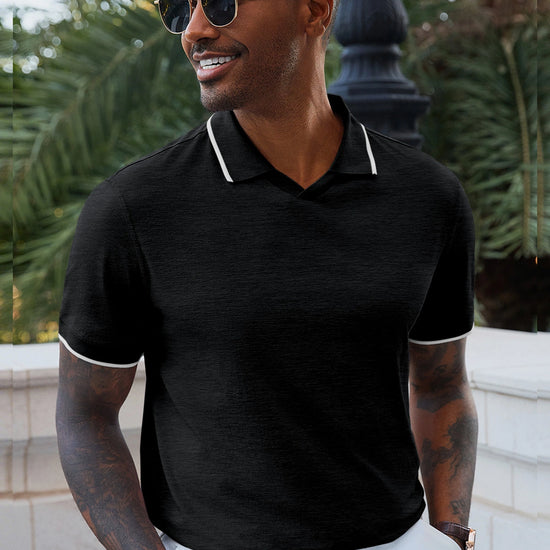 Elevate your wardrobe with Runcati Men’s Vintage V-Neck Polo Shirts—crafted for old-money charm and all-day comfort. Made from 100% polyester, this short-sleeve knit golf shirt features a button-free lapel, contrast color splicing, and ribbed detailing for a retro-modern vibe. Lightweight, stretchy, and wrinkle-resistant, it’s perfect for office days, golf outings, dates, or casual vacations, blending versatility with timeless style.