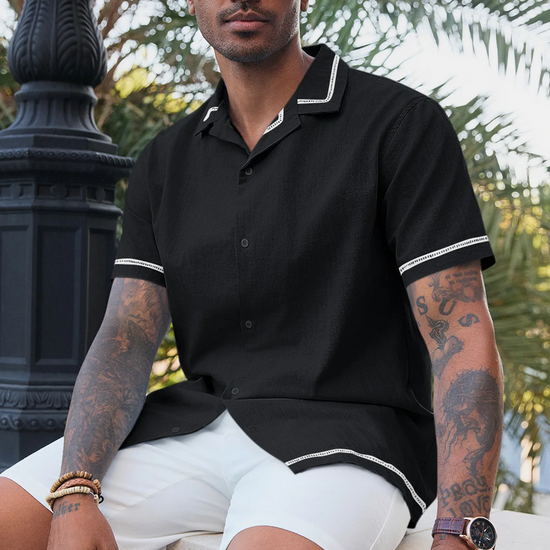 Classic Cuban collar and short sleeves tailored for hot weather, delivering a laid-back vacation aesthetic.