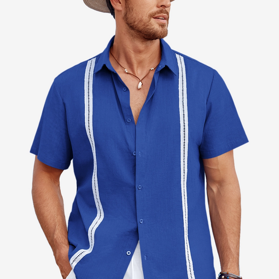 Authentic Cuban Guayabera design with short sleeves, turn-down collar, and button closure for classic appeal.