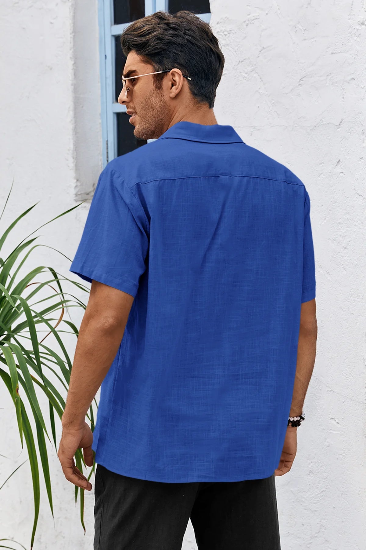 Elevate your summer style with Runcati Men’s Cuban Guayabera Shirts—crafted from a breathable 70% cotton, 30% linen blend for beach-ready comfort. Featuring classic turn-down collars, button closures, embroidered details, and vertical pleats, this regular-fit short sleeve shirt delivers timeless vacation flair, perfect for weddings, cruises, beach days, or casual office wear.
