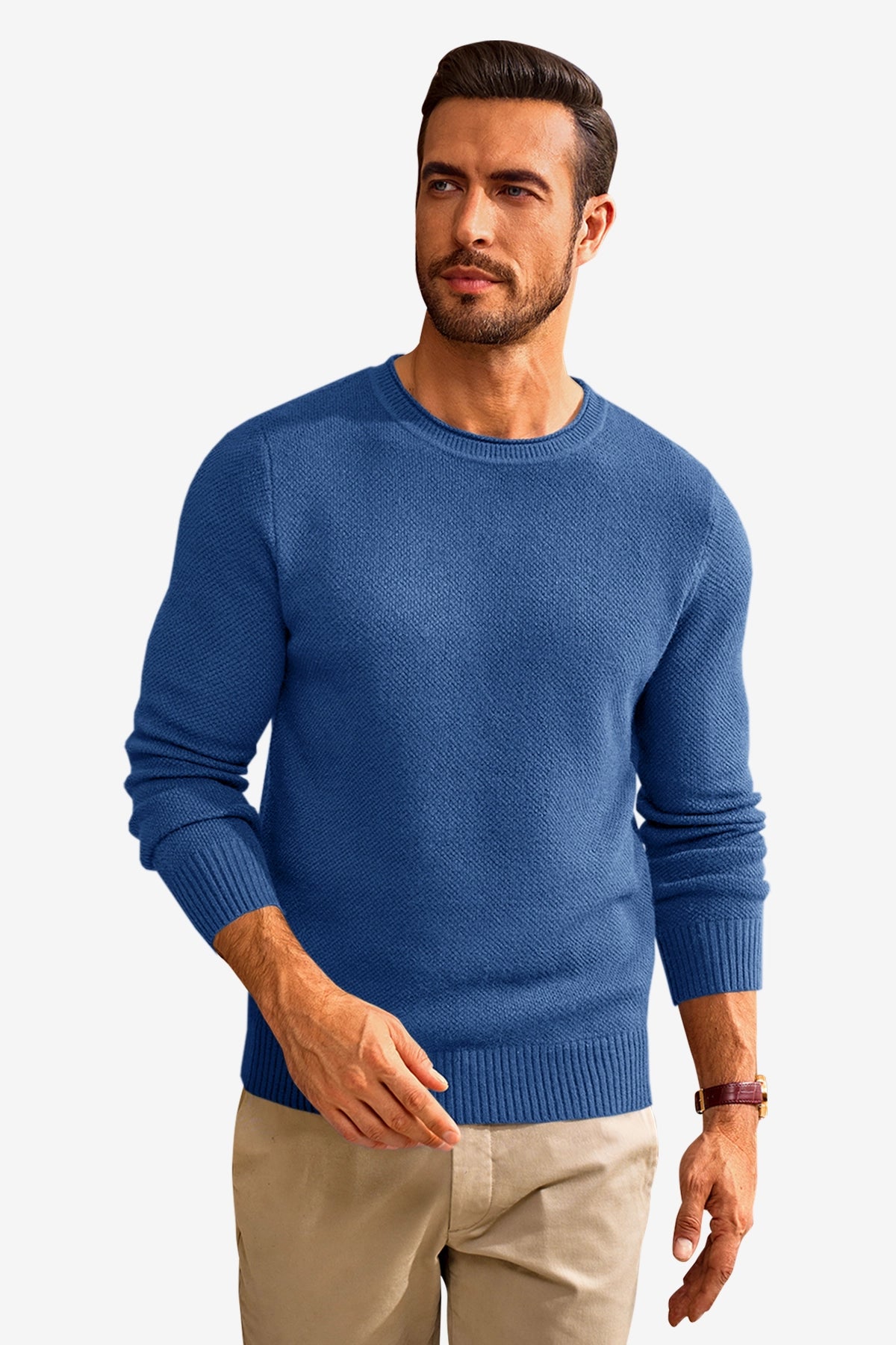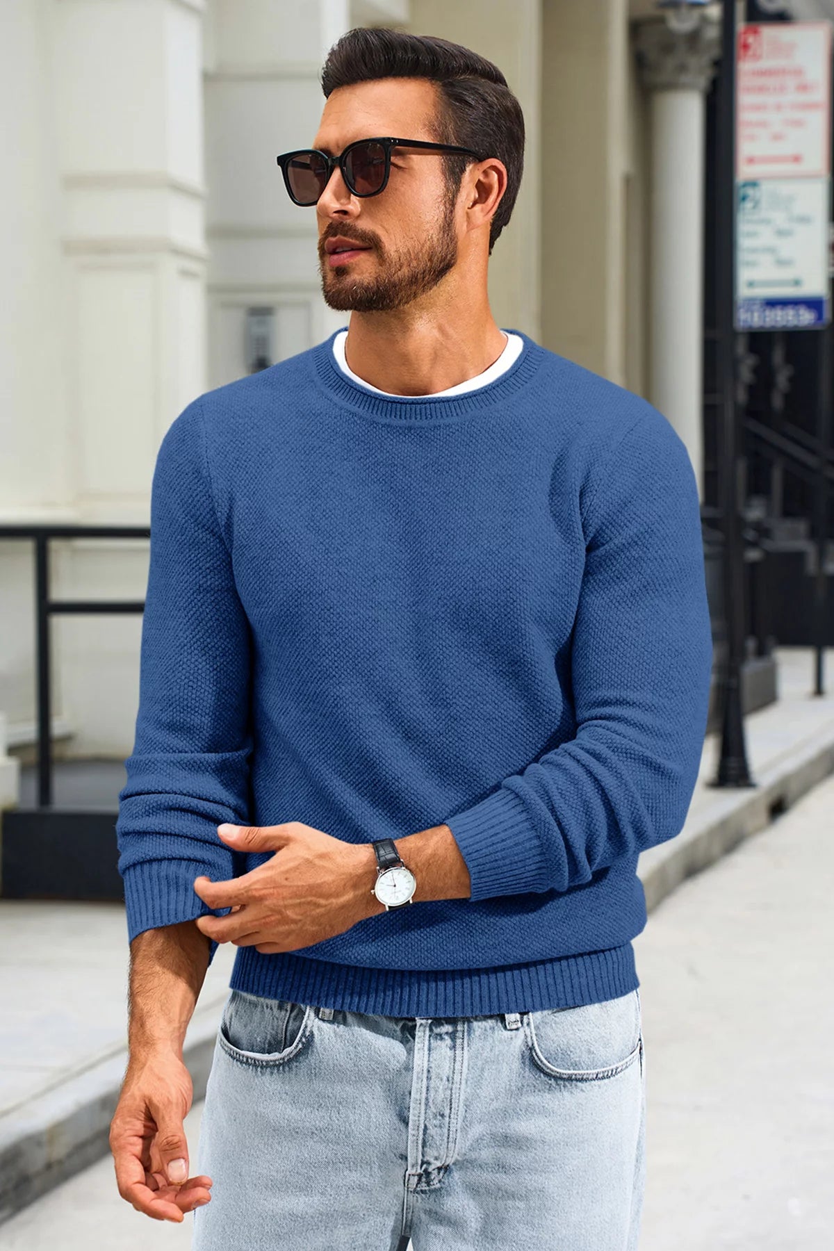 Check out our Men’s Crewneck Sweater, designed to blend casual and elegant styles effortlessly! With a classic crew neck and rolled collar, it keeps you warm with ribbed cuffs and hem. Made from high-quality textured knit, it's thick, soft, and pill-resistant. Perfect for layering or on its own, this versatile piece is ideal for any occasion—from casual outings to business meetings. Just remember to wash it carefully to keep it looking great!