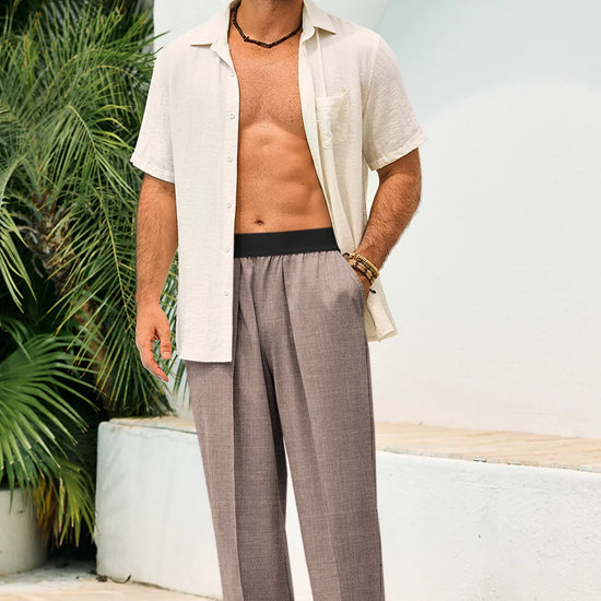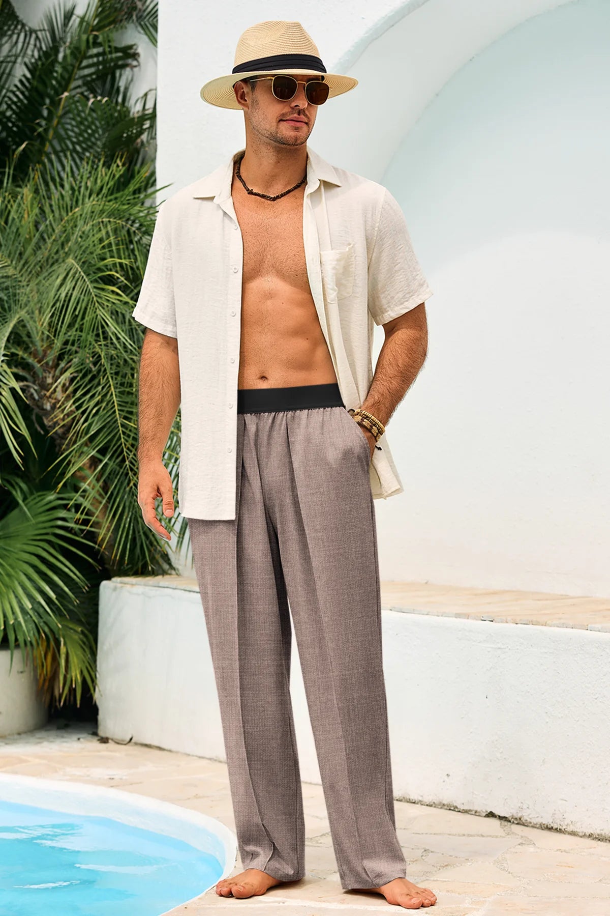 Master the art of effortless summer style with the Runcati Men's Linen Pants. Featuring a classic straight-leg cut and sophisticated pleated front, these trousers offer a sharp silhouette without sacrificing comfort. The breathable linen-blend fabric and adjustable elastic waistband make them the perfect choice for beach weddings, tropical travel, or relaxed weekend lounging.
