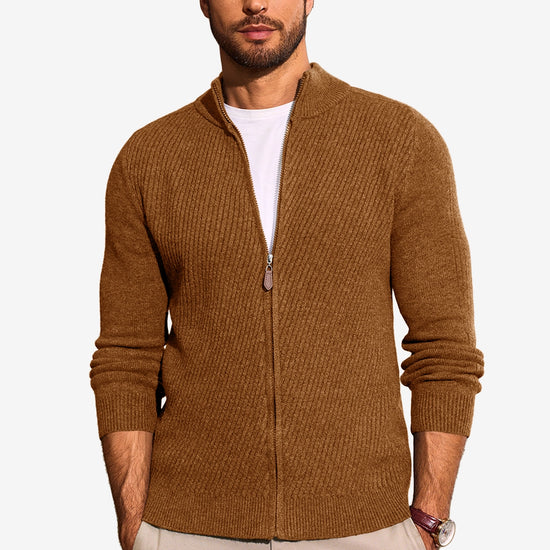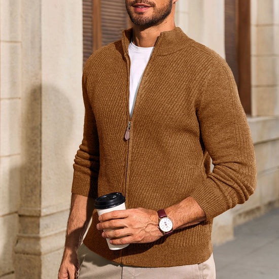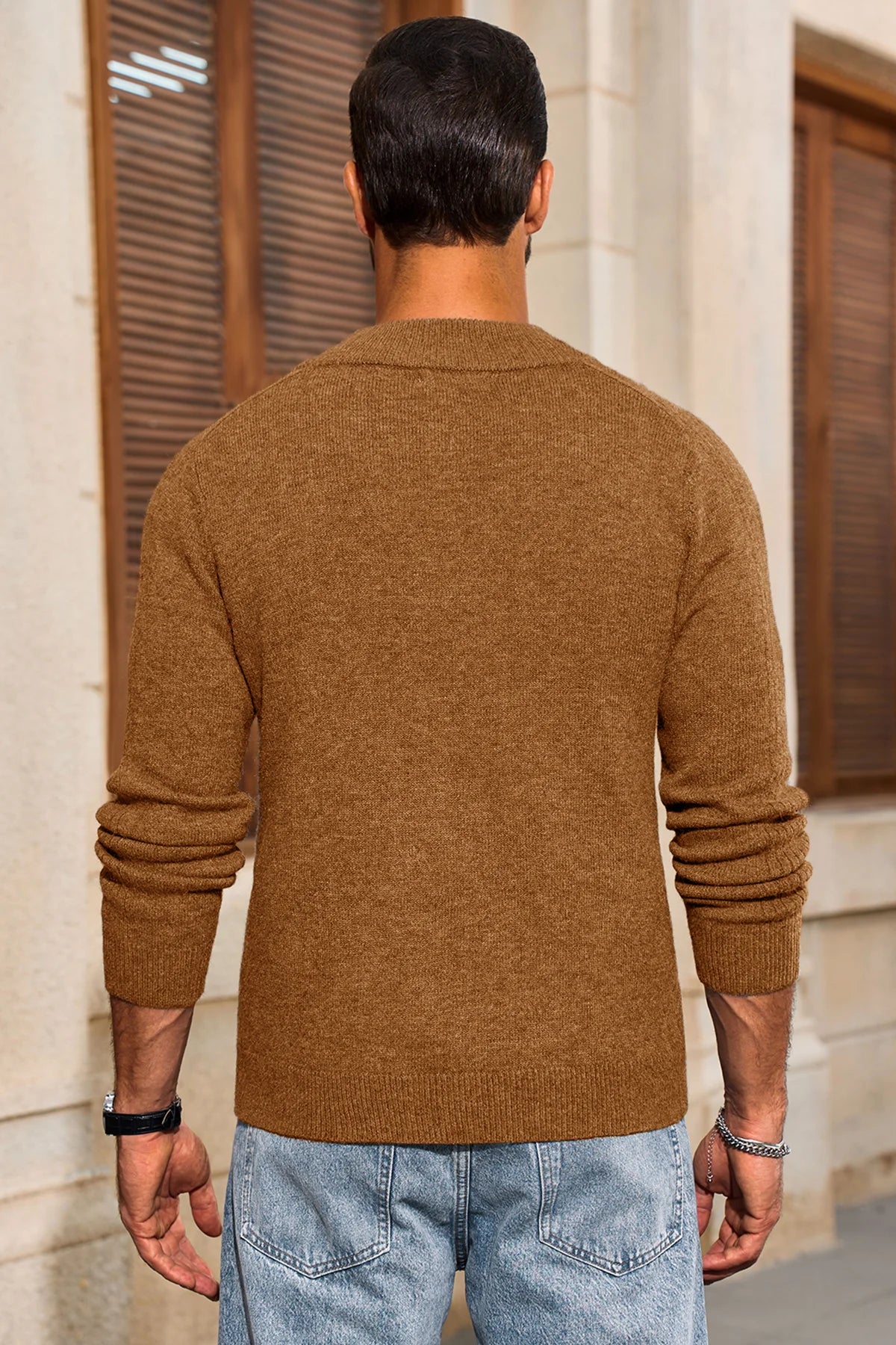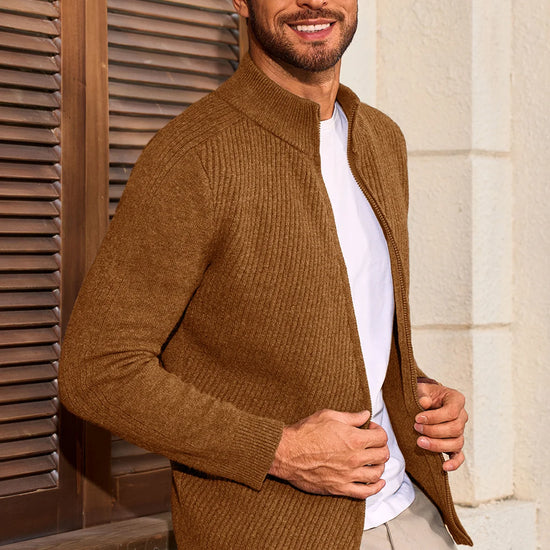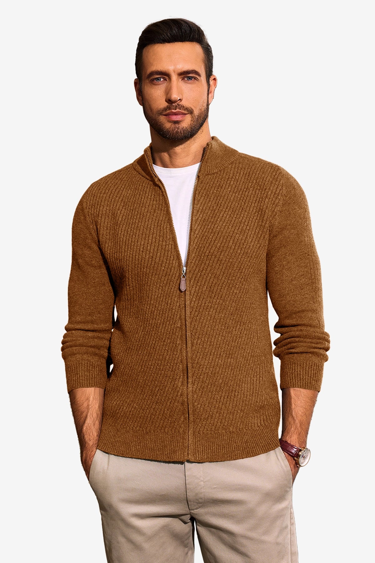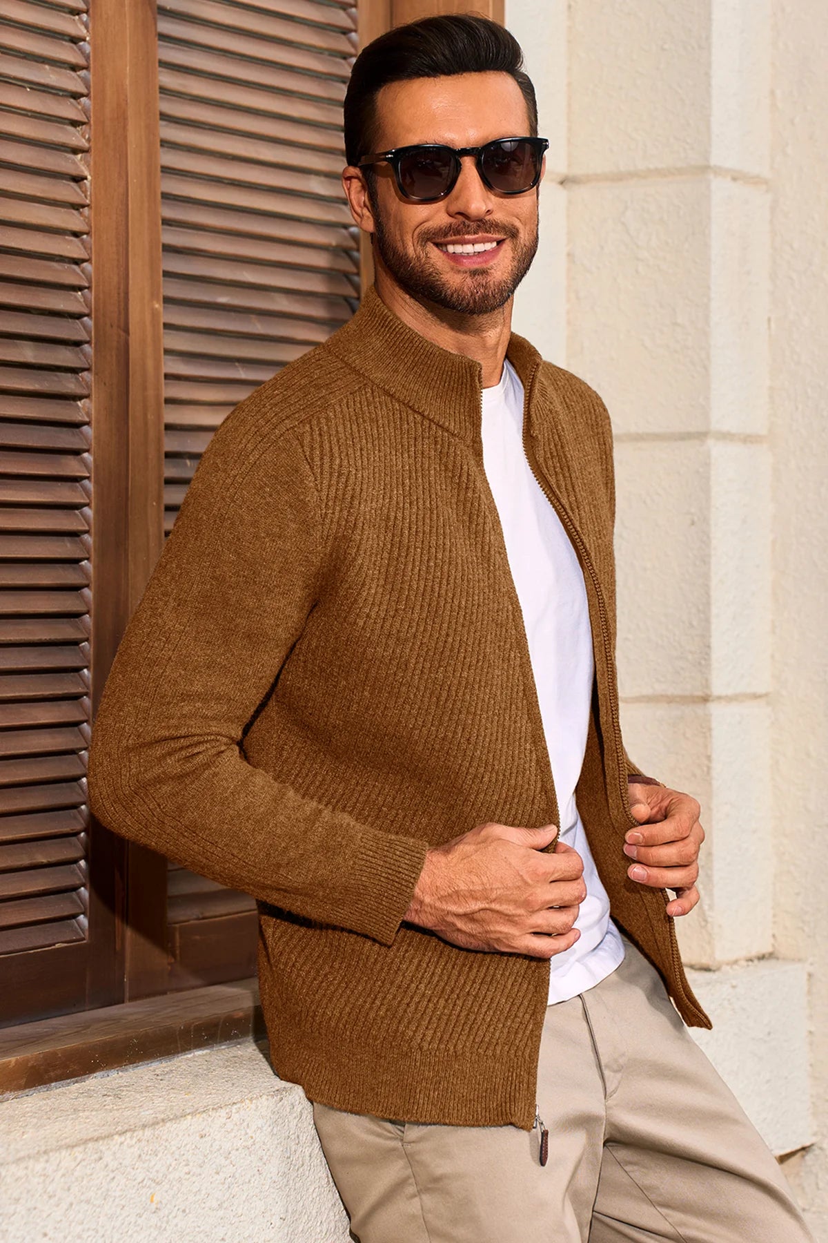 Runcati Mens Brown Full Zip Cardigan Sweater are designed for unparalleled versatility. Crafted from a premium, soft-touch knit fabric, it seamlessly bridges the gap between casual comfort and smart sophistication. The lightweight, elastic fabric provides freedom of movement and just the right amount of warmth, making it your perfect companion for the cool days of fall, spring, and even mild winters.