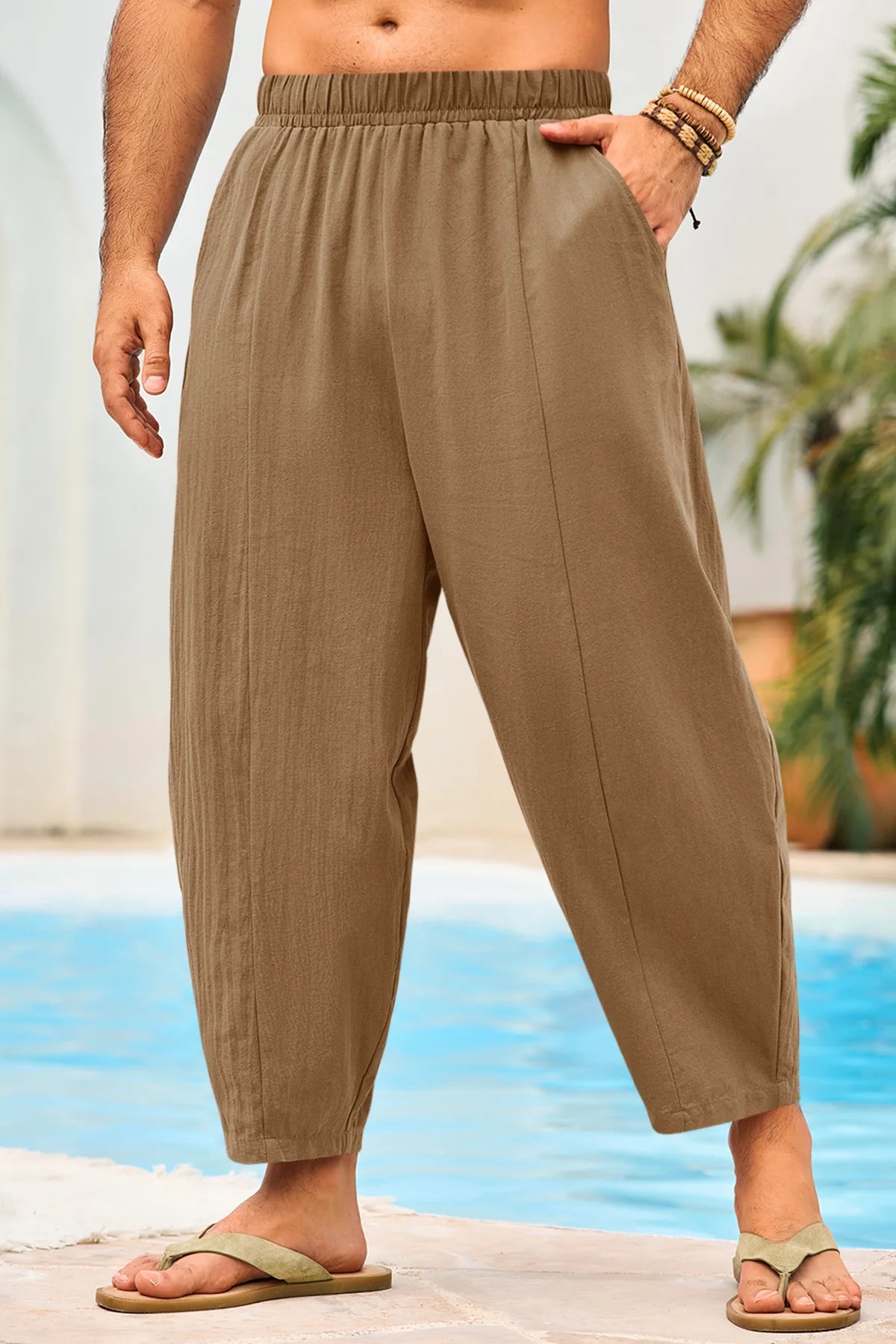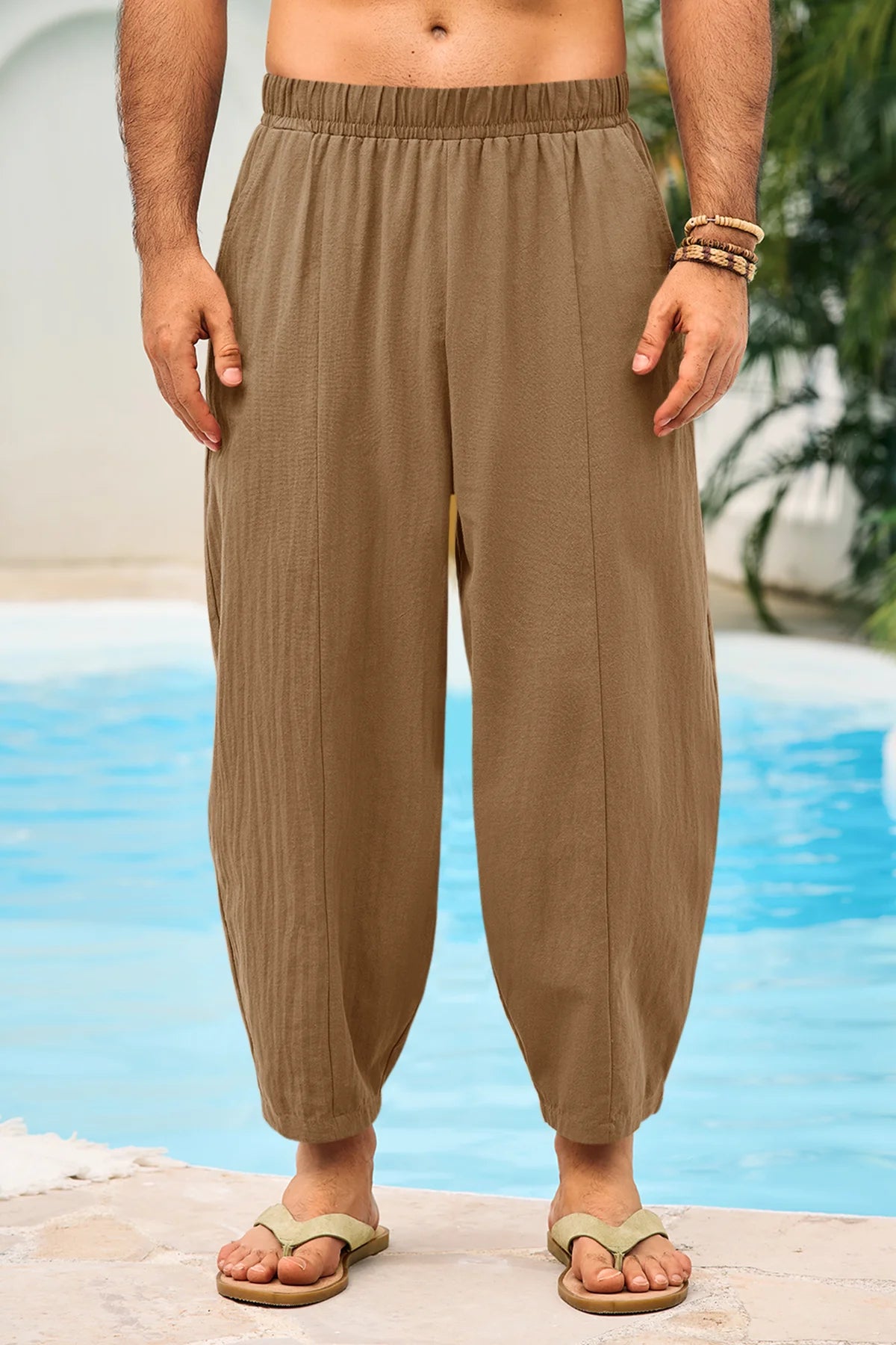 These casual pants feature a elastic waist and button zipper closure for adjustable comfort and a loose fit that enhances mobility. Made from lightweight, breathable 100% cotton fabric, they're super soft against your skin, keeping you fresh all day. Perfect for casual outings or lounging at home, just pair them with a t-shirt or tank. Great for daily wear, yoga, or beach days. Machine washable for easy care!