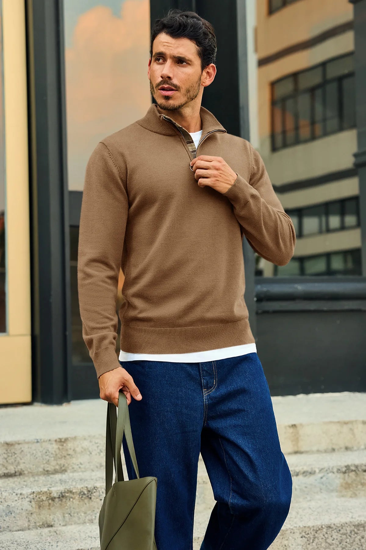 Runcati Mens Brown Quarter-Zip Pullovers Sweaters