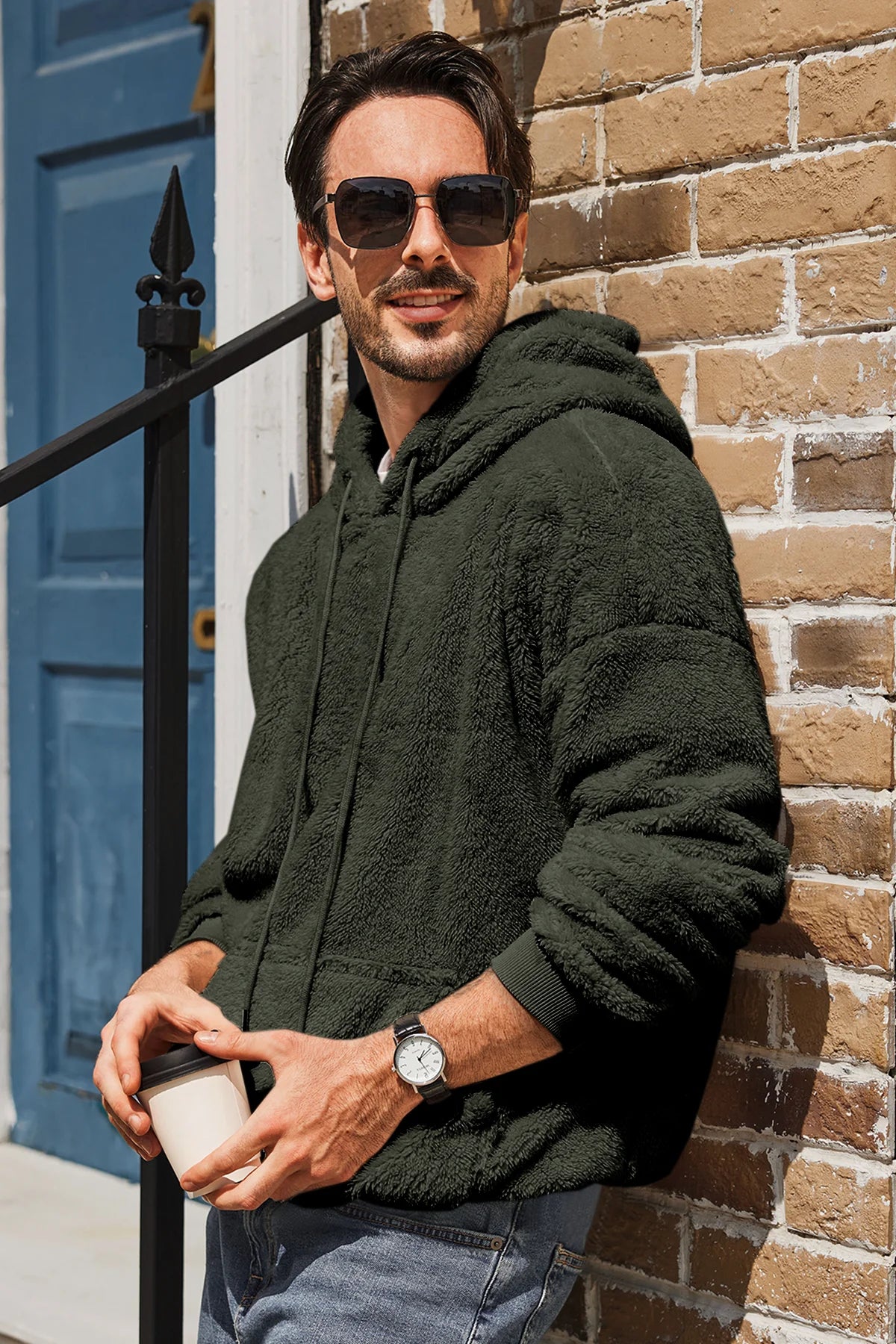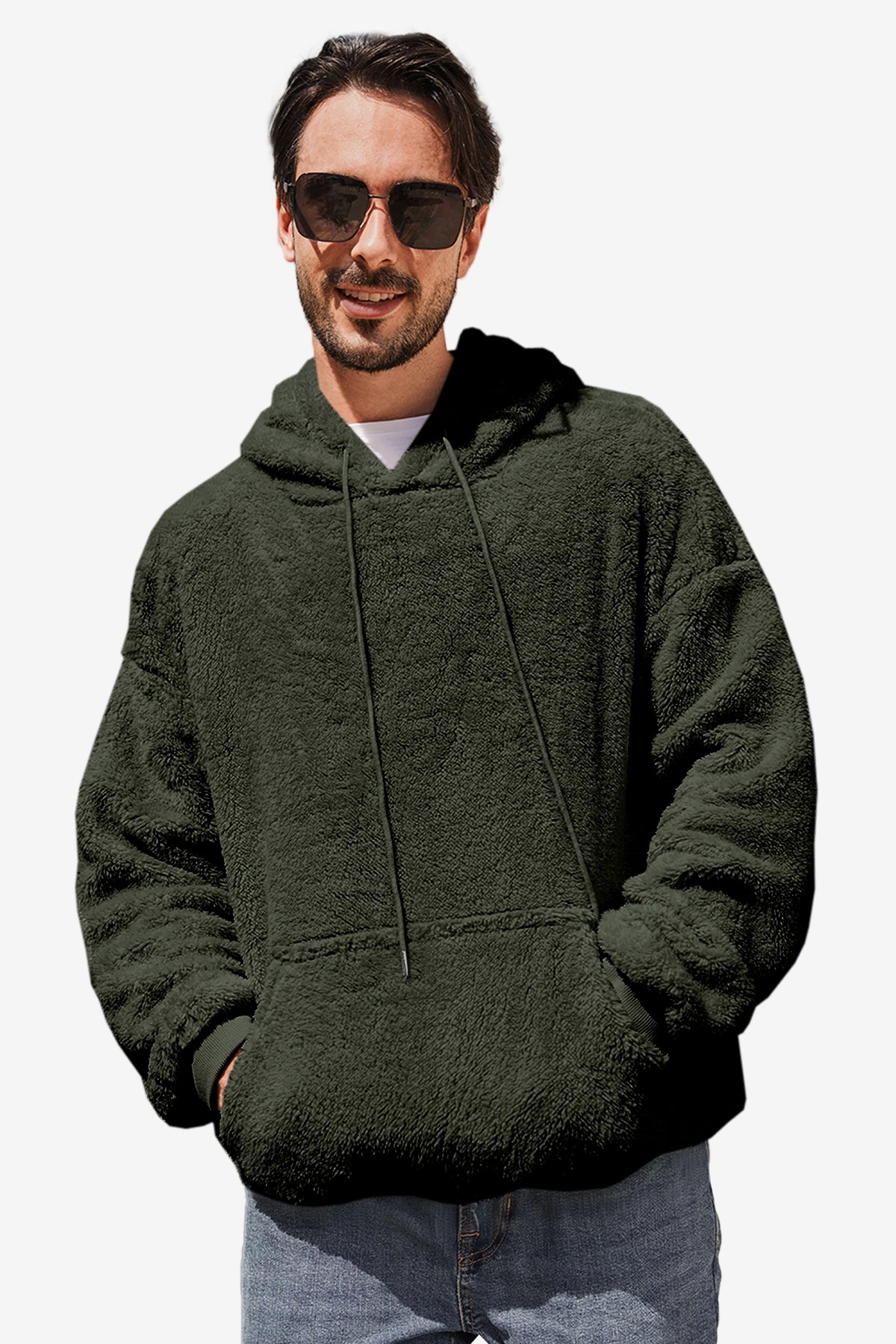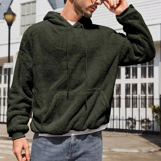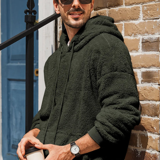 Runcati Mens Dark Green Sherpa Hoodies