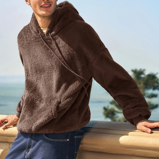 Stay cozy this fall and winter with our fluffy pullover sweatshirt! Featuring a stylish drawstring hood, kangaroo pockets, and a slim fit design, it's perfect for any casual occasion. Pair it with jeans or casual pants for a trendy look. Great for hanging out with friends, office wear, or even date nights. Perfect gift for the holidays!