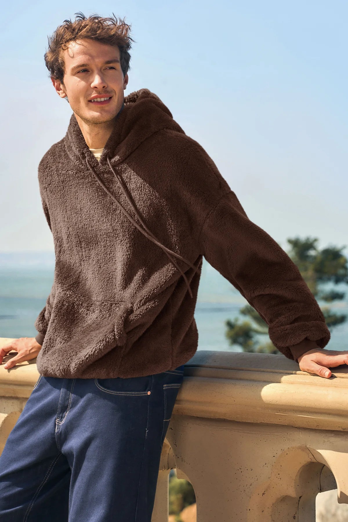 Runcati Mens Brown Sherpa Hoodies