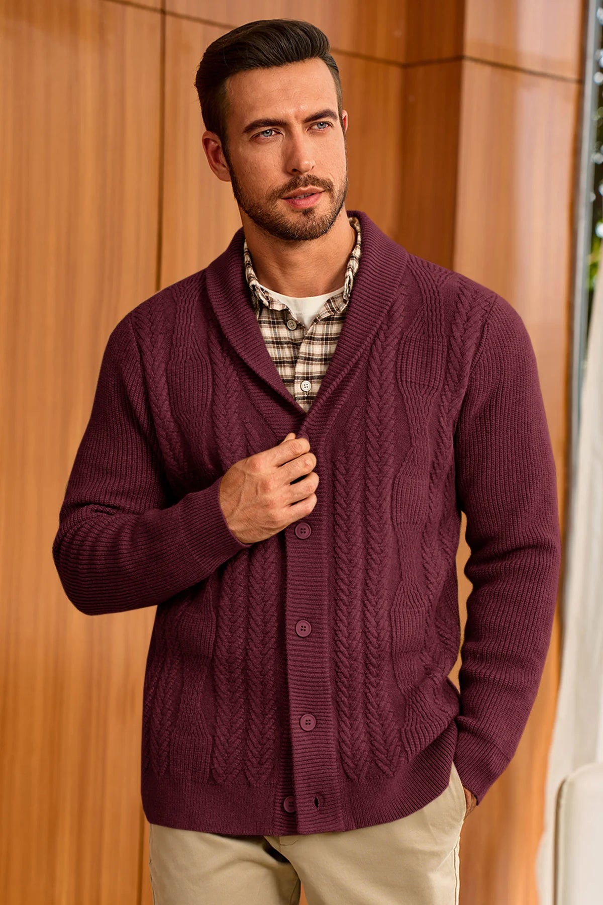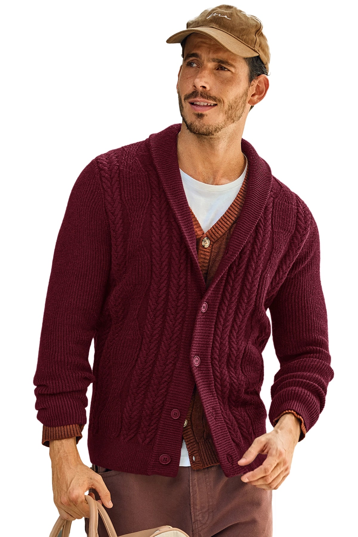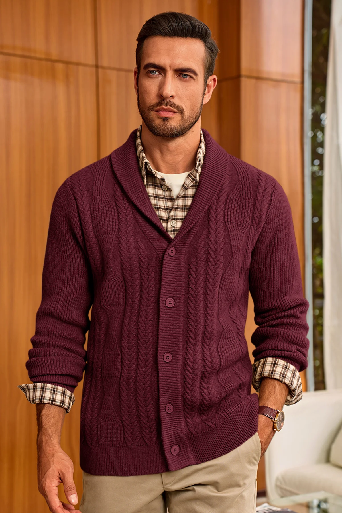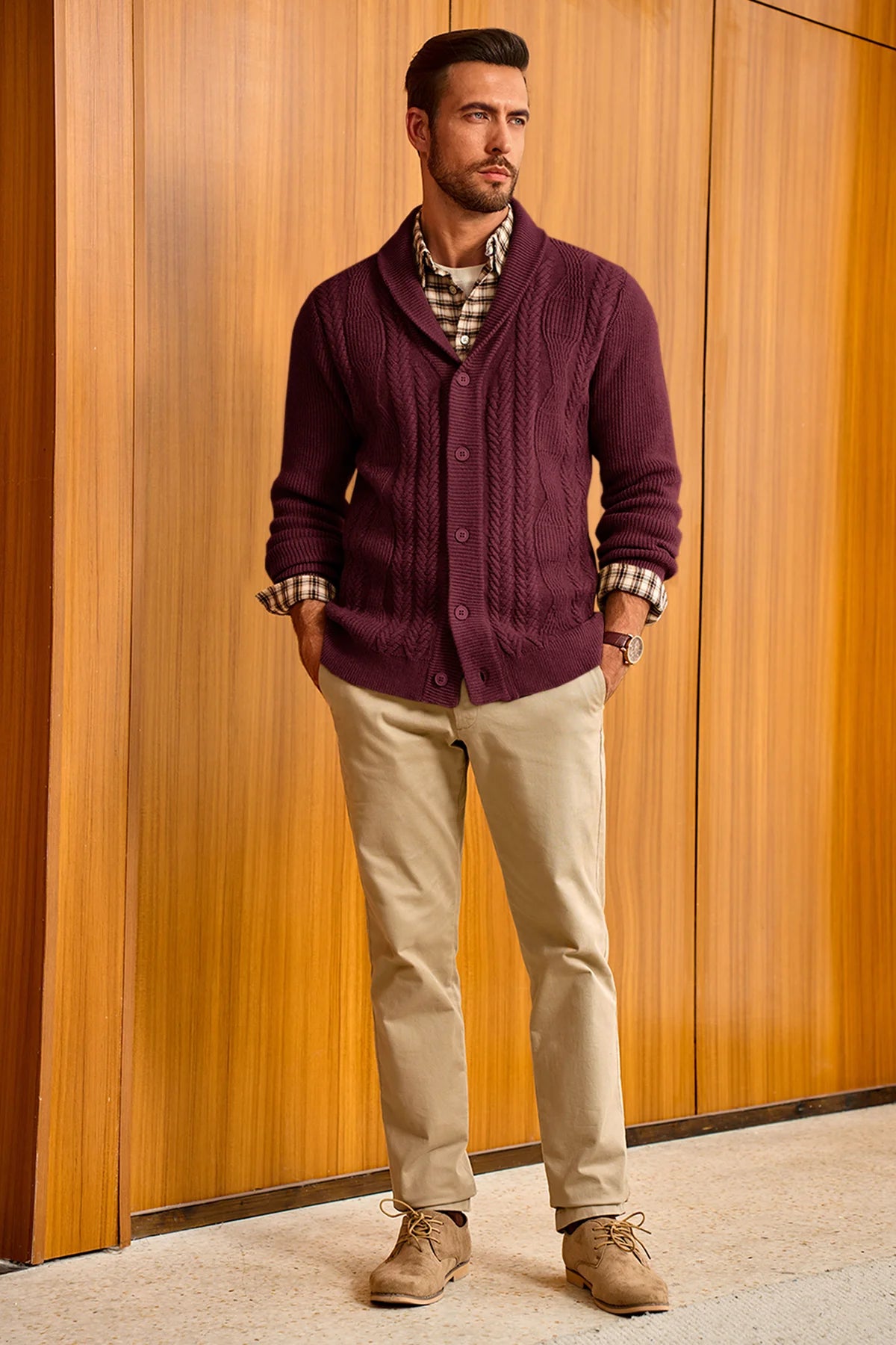 Stay cozy and stylish in this classic cable-knit cardigan! Made from soft, thick fabric, it’s perfect for cool days—whether at home, the office, or a holiday gathering. Layer it over a t-shirt or dress shirt for a casual or polished look. With its shawl collar and regular fit, you’ll feel warm and look great all season. Easy to care for, too! Check the size chart before ordering.