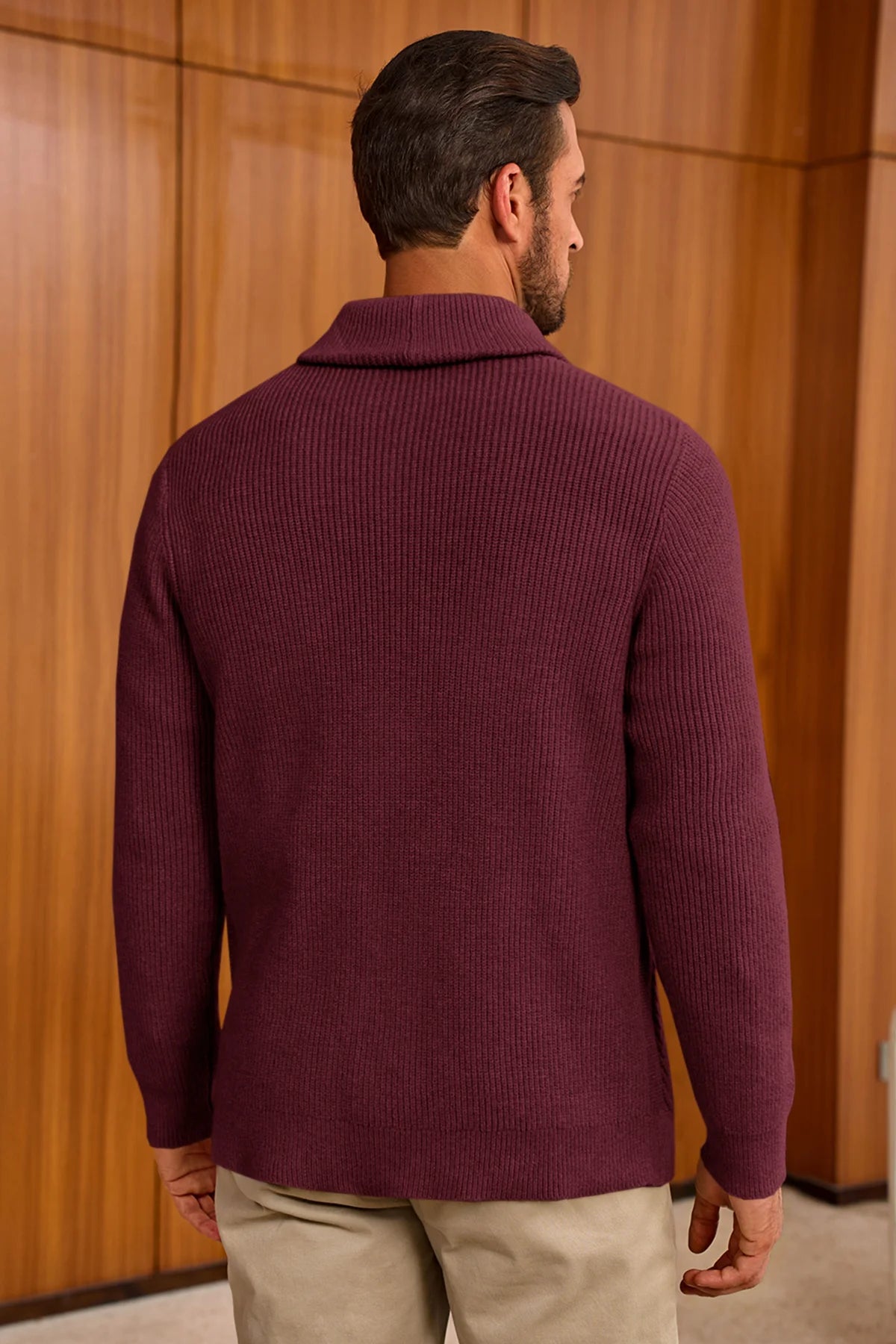 Runcati Mens Burgundy Button Down Shawl Collar Cardigan Sweaters