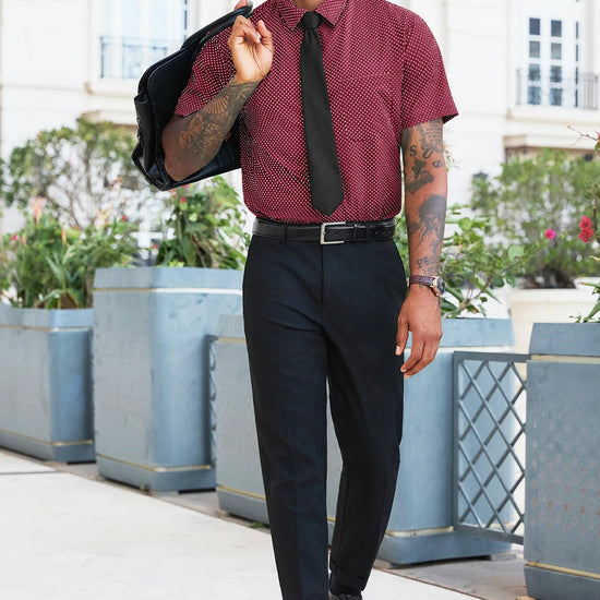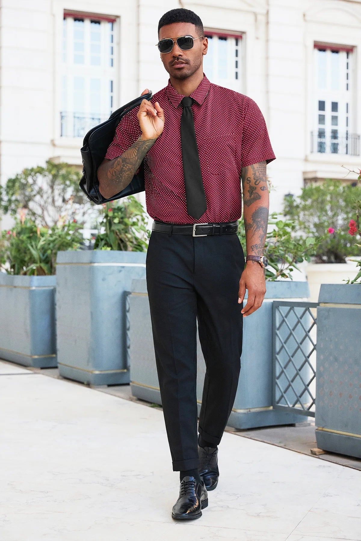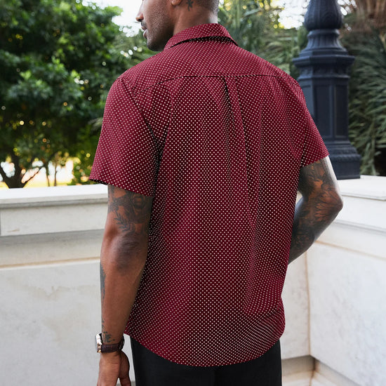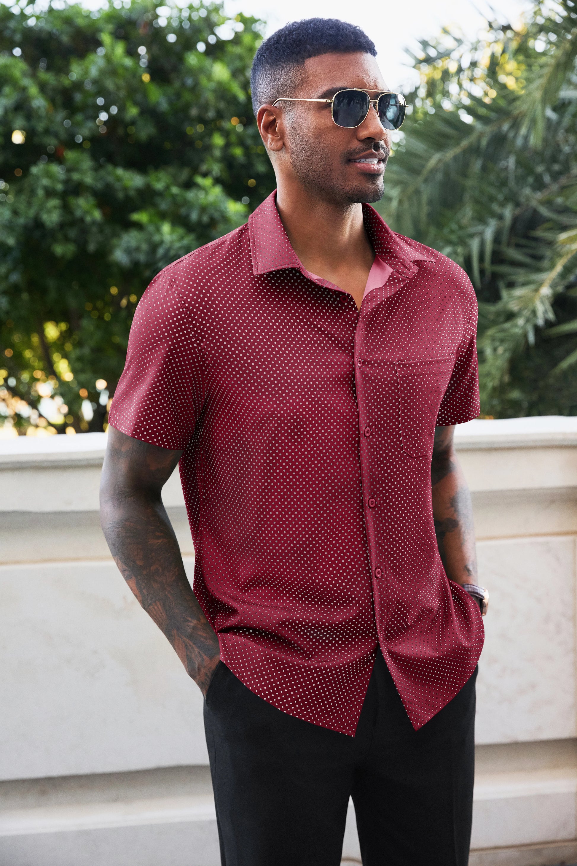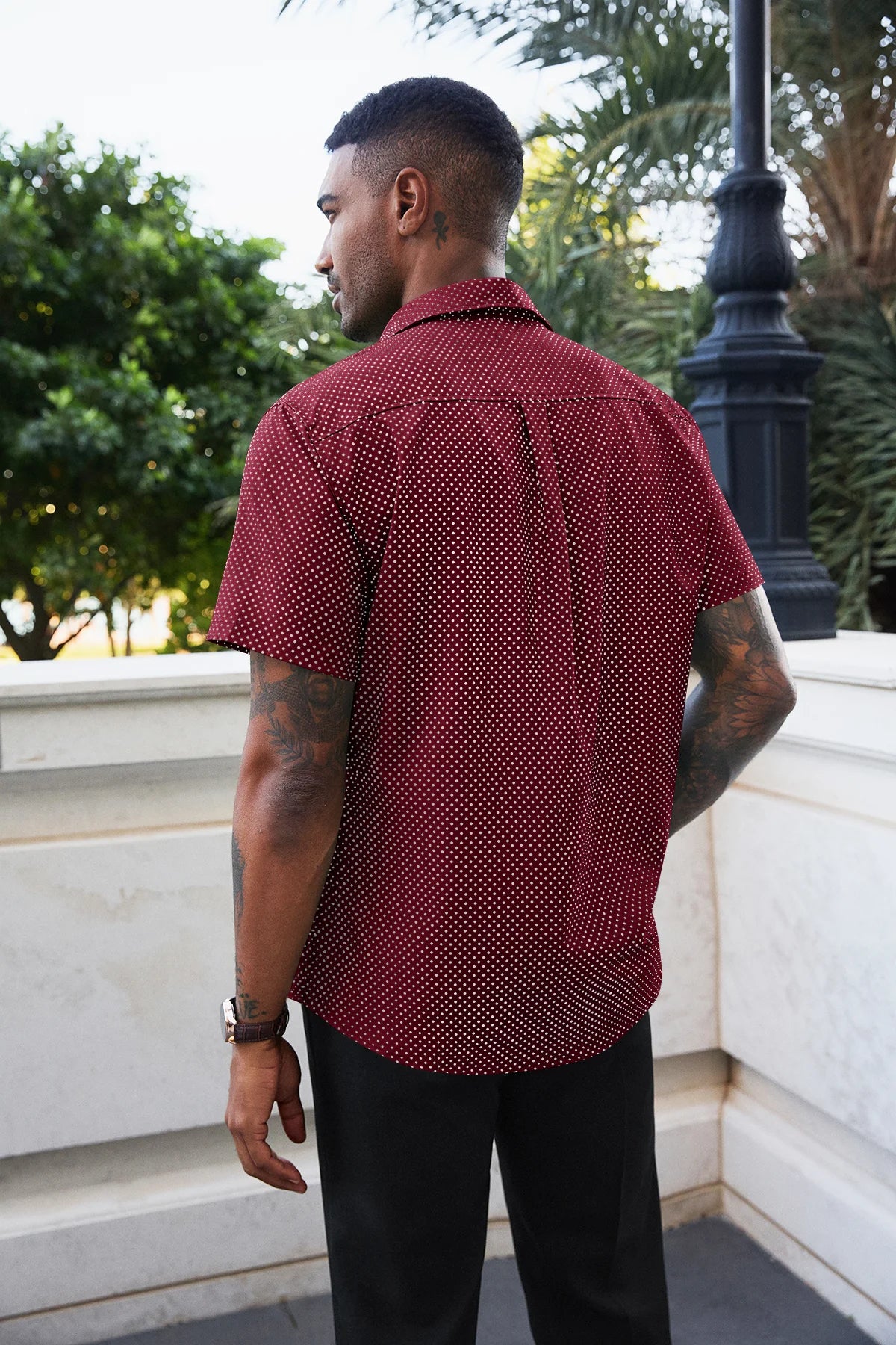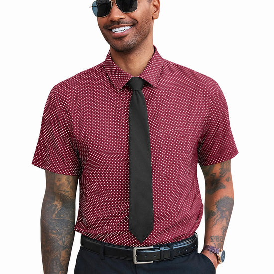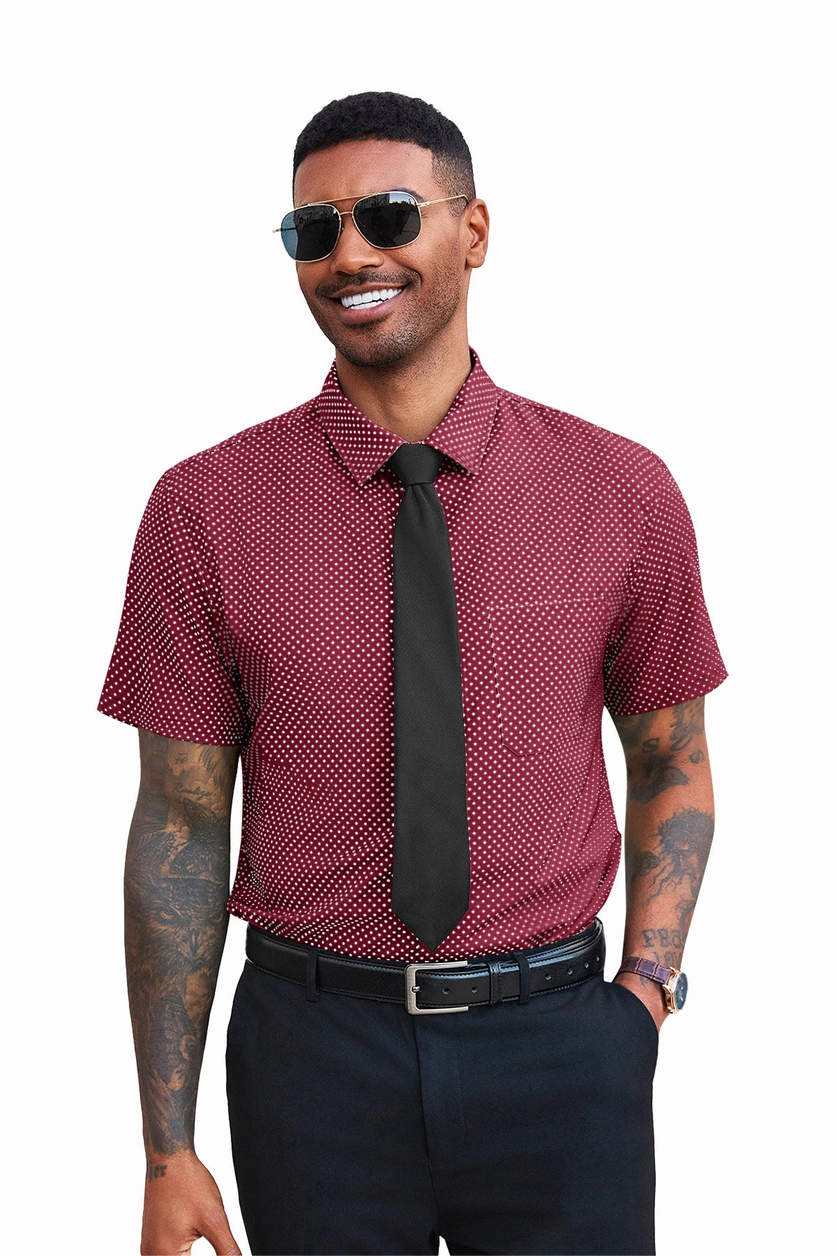 Description: Upgrade your wardrobe with this Runcati men's wrinkle-free dress shirt. Featuring a classic polka dot print and a crisp spread collar, this short-sleeve button-down balances professional polish with vacation-ready comfort. The moisture-wicking, breathable fabric keeps you cool from the office to the after-party, making it a summer essential.
