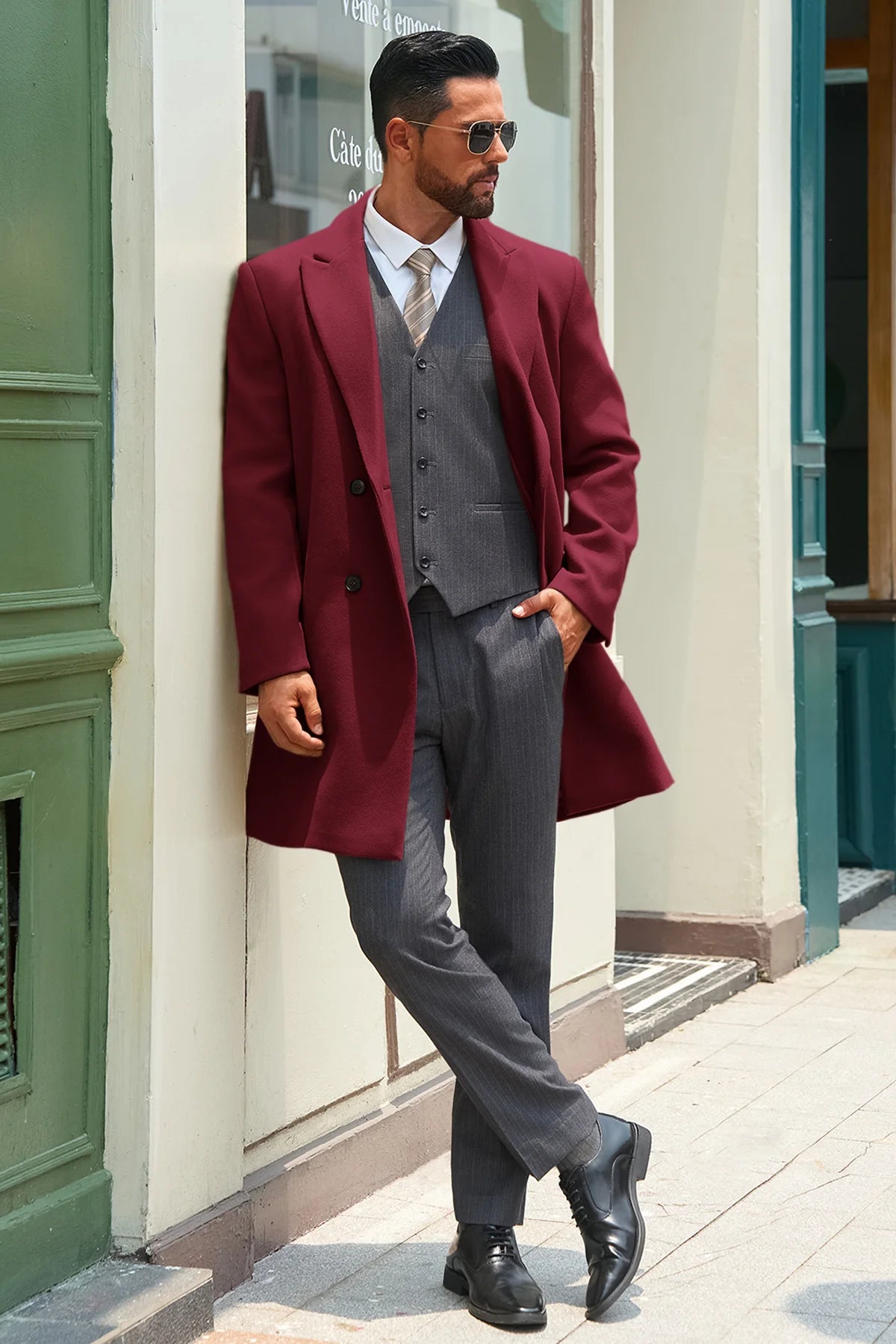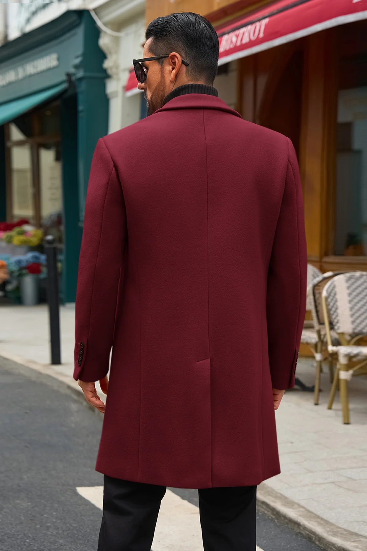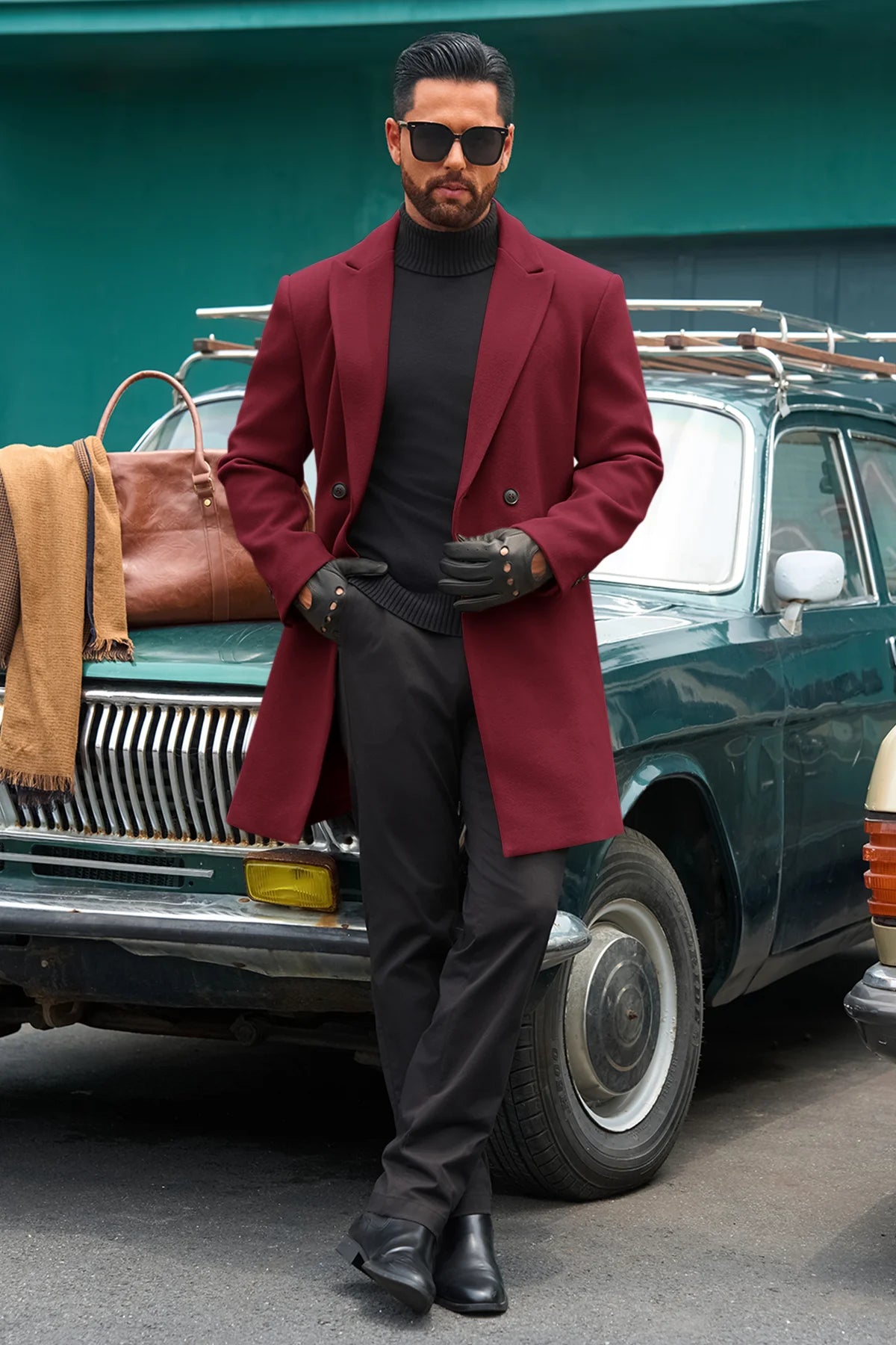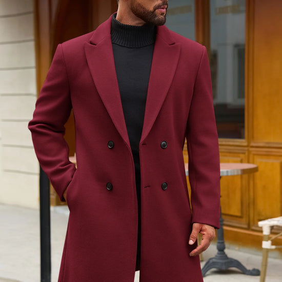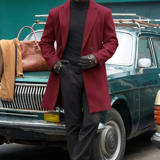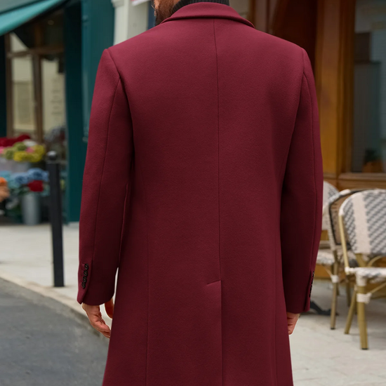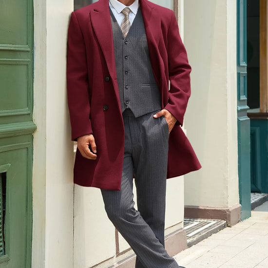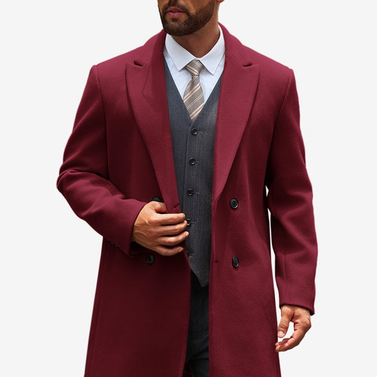 Runcati Mens Burgundy Mid Long Pea Coat