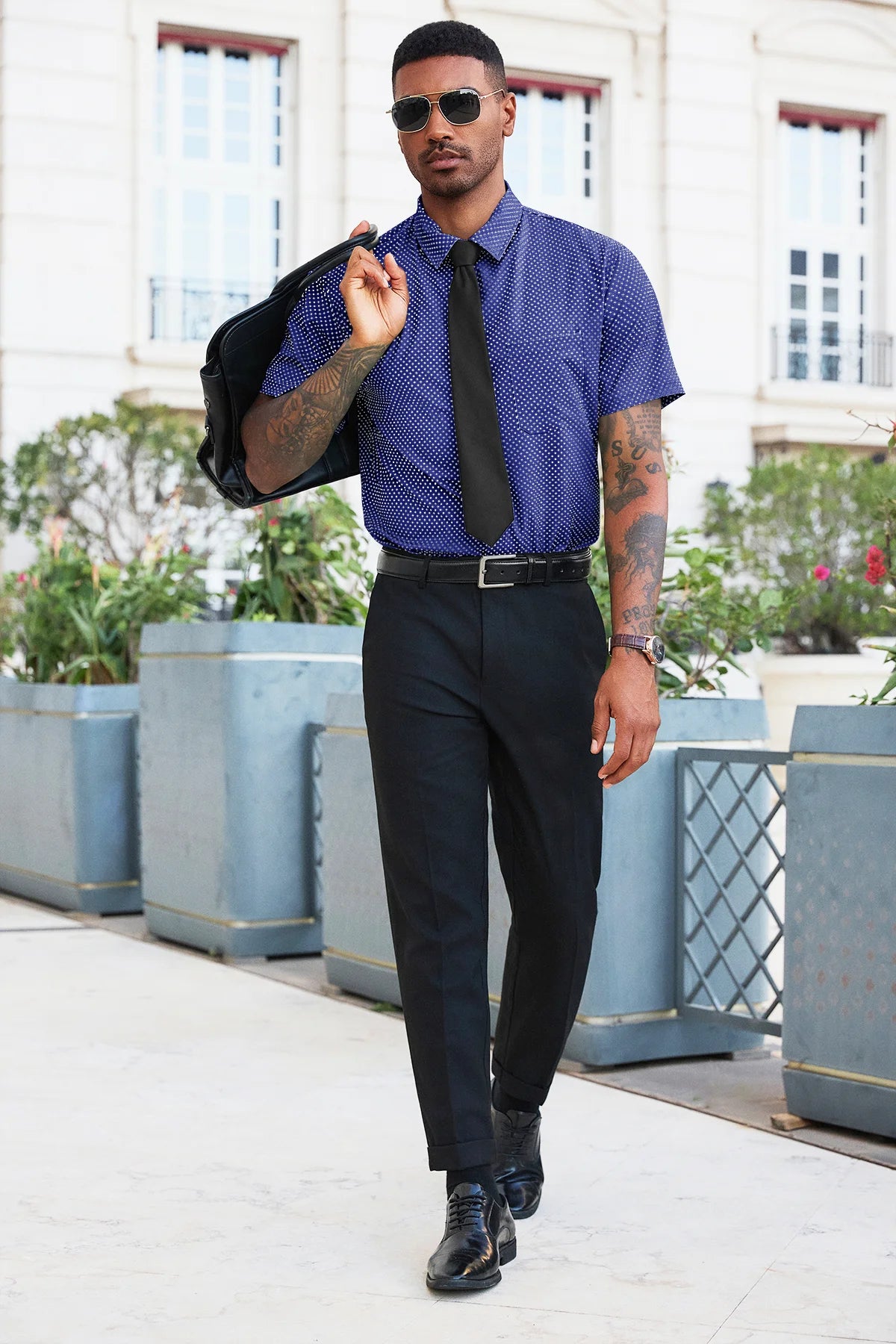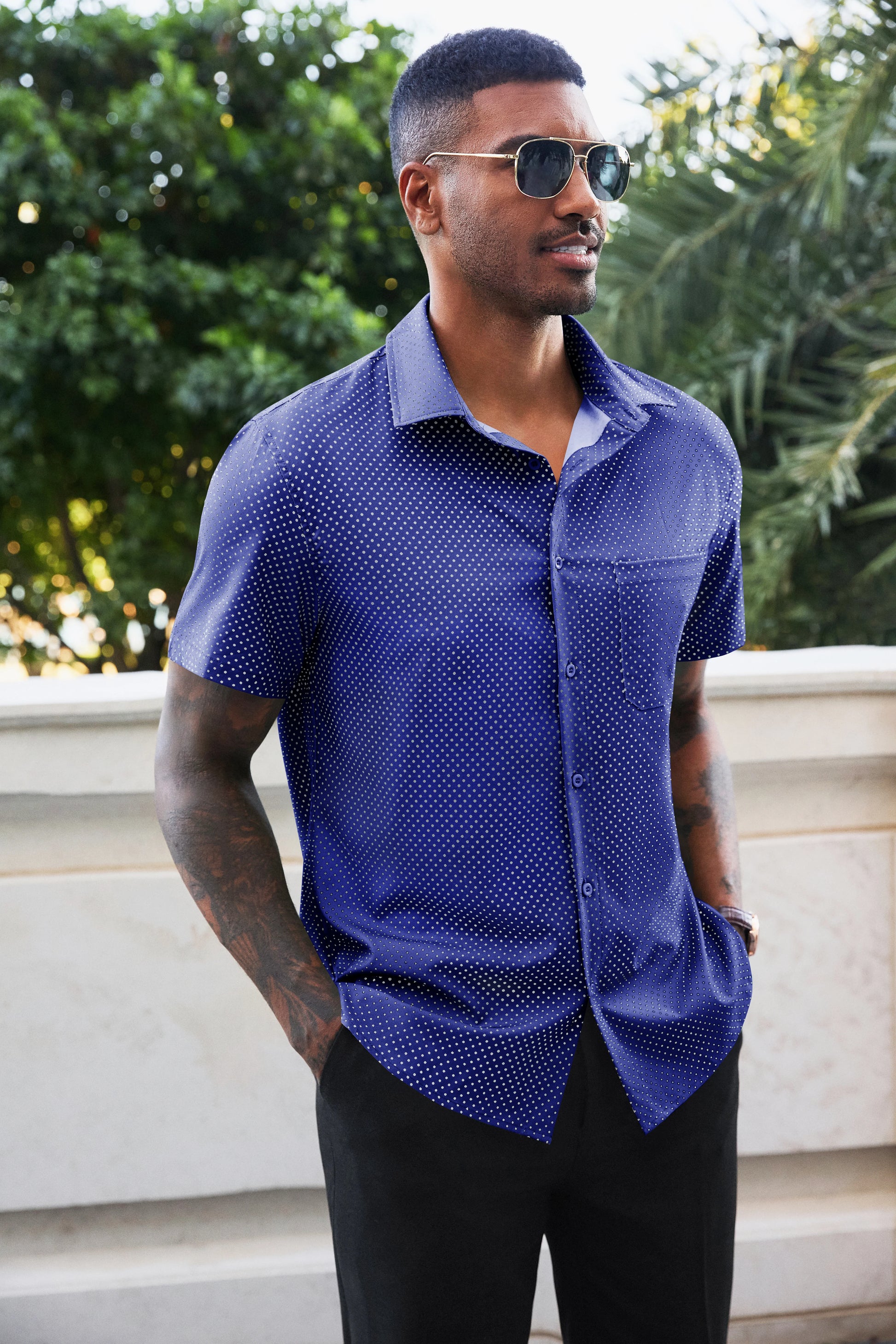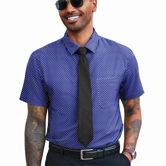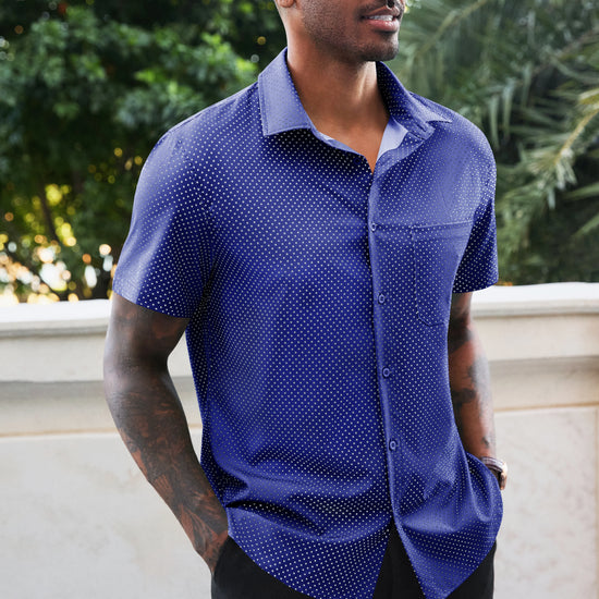 Description: Upgrade your wardrobe with this Runcati men's wrinkle-free dress shirt. Featuring a classic polka dot print and a crisp spread collar, this short-sleeve button-down balances professional polish with vacation-ready comfort. The moisture-wicking, breathable fabric keeps you cool from the office to the after-party, making it a summer essential.