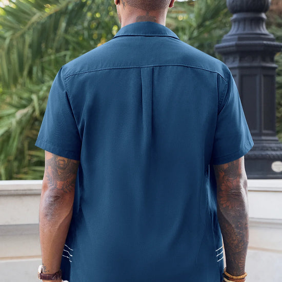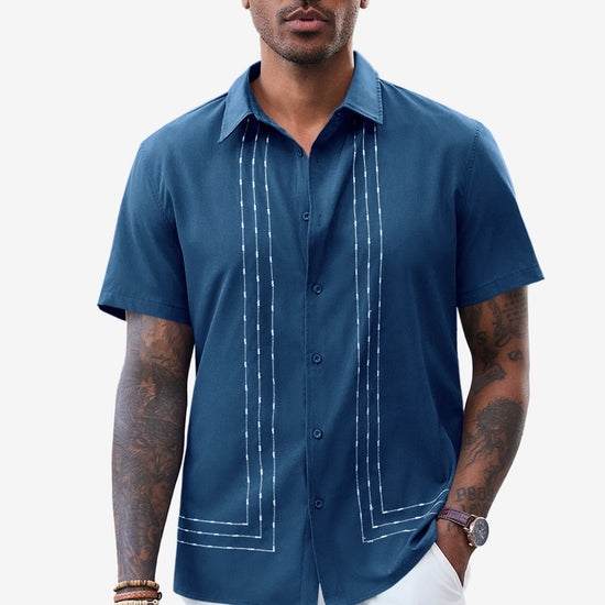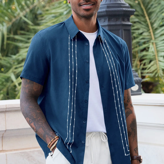 Runcati Mens Dark Blue Cuban Guayabera Shirt