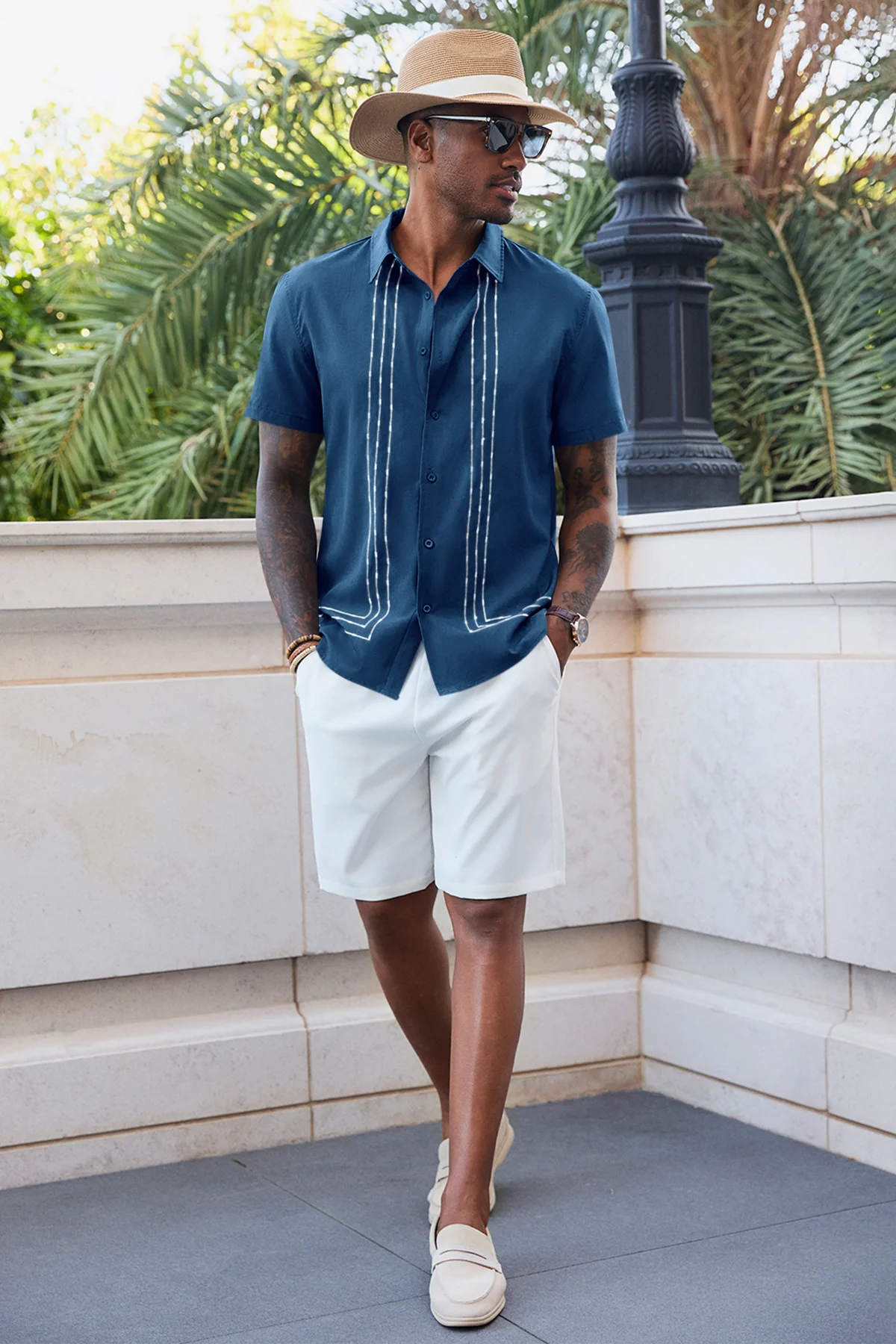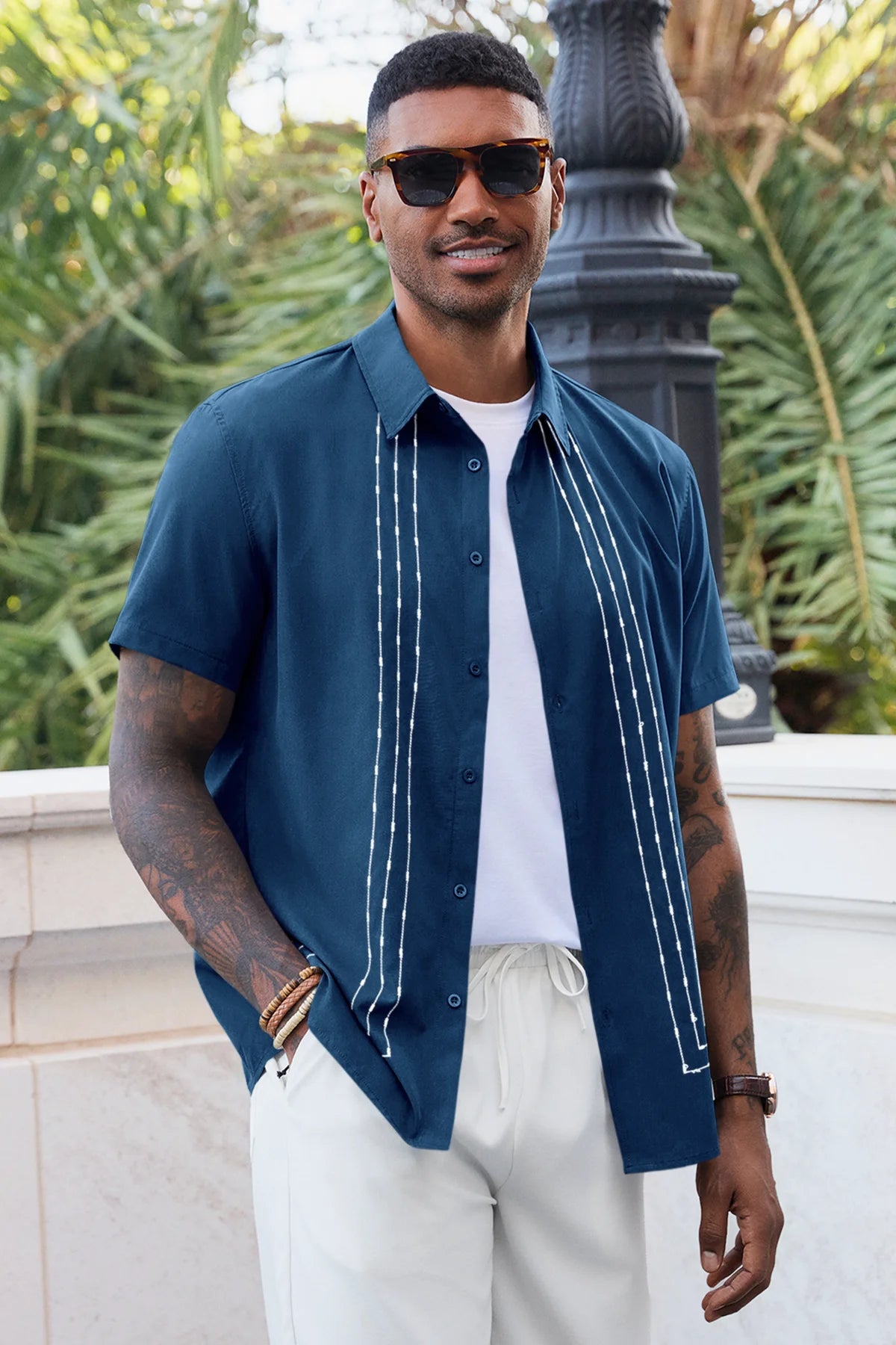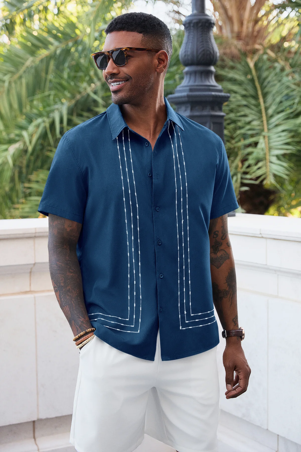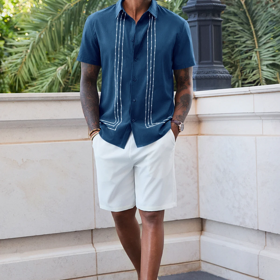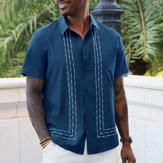 Elevate your summer wardrobe with Runcati Men’s Cuban Guayabera Shirt—crafted for beach vibes and casual elegance. Made from a soft 95% polyester, 5% spandex blend, this short-sleeve button-down features a spread collar, embroidered panels, and breathable fabric to keep you cool. Perfect for vacations, cruises, weddings, or daily wear, it pairs seamlessly with jeans, shorts, or dress pants for effortless resort style.
